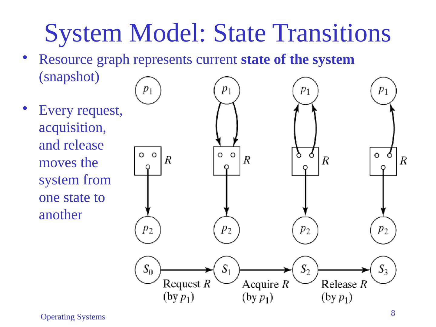 8 .Operating Systems 8 System Model: State Transitions Resource graph represents current state of the system (snapshot) Every request, acquisition, and release moves the system from one state to another