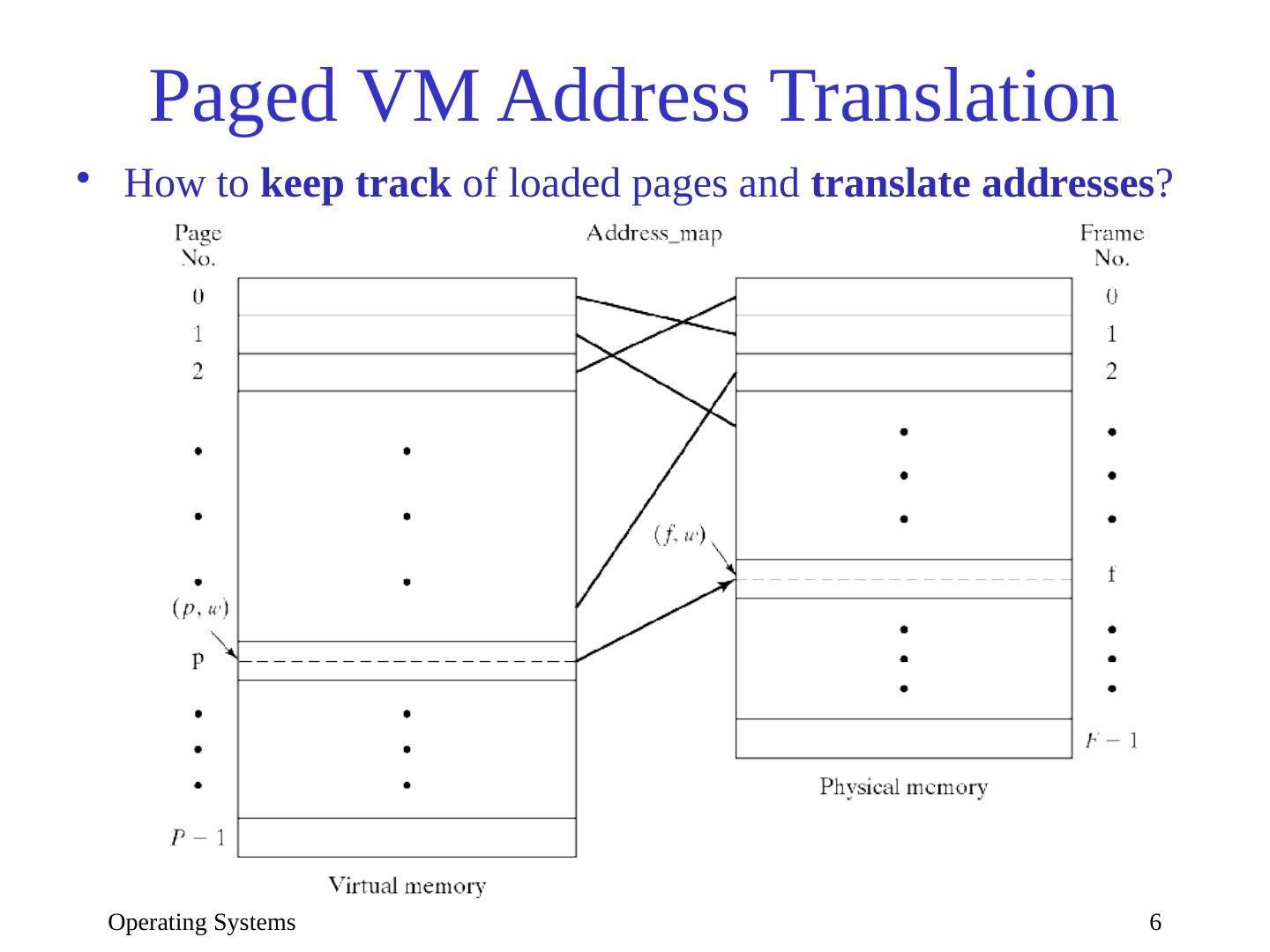 6 .Operating Systems 6 Paged VM Address Translation How to keep track of loaded pages and translate addresses ?