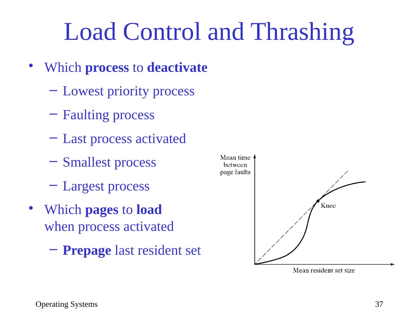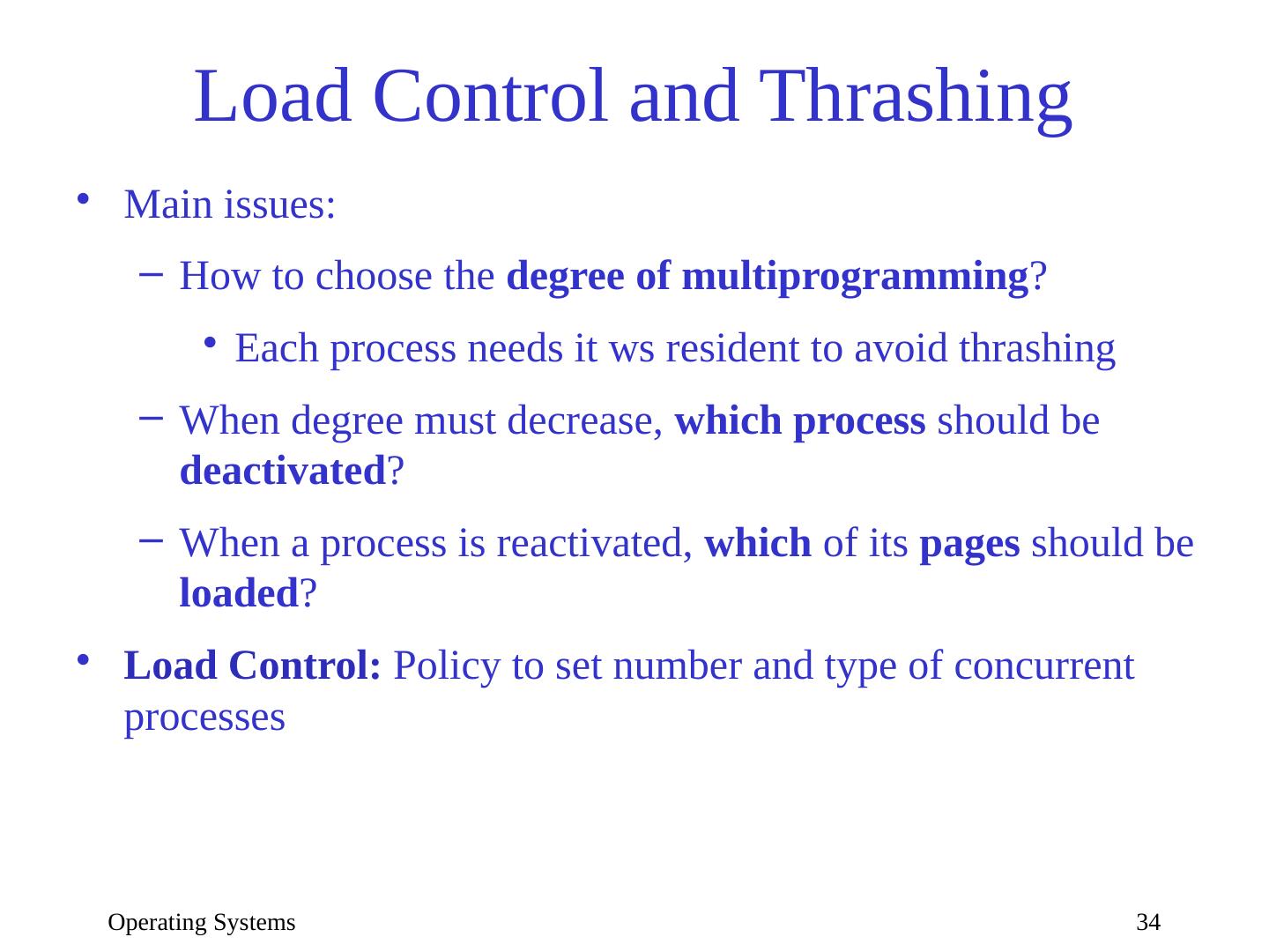 27 .Operating Systems 27 Local Page Replacement Measurements indicate that every program needs a minimum set of pages to be resident in memory If too few , thrashing occurs (program spends most of its time loading/saving pages) If too many , page frames are wasted Goal: maintain an optimal set of pages for each process in memory Size of optimal set changes over time Optimal set must be resident