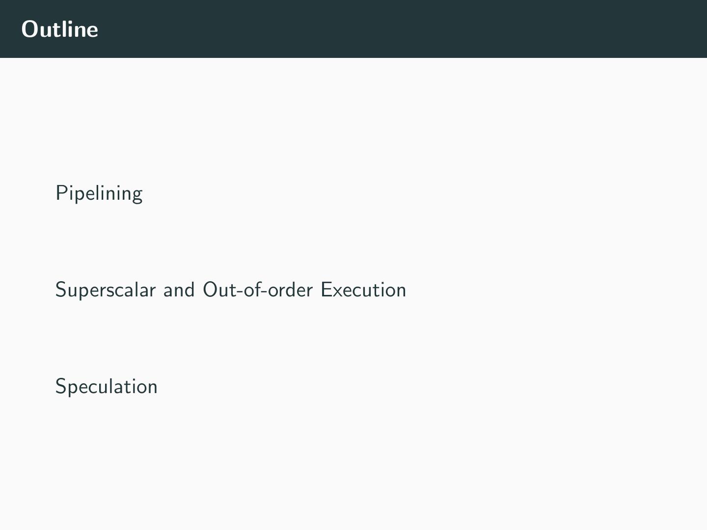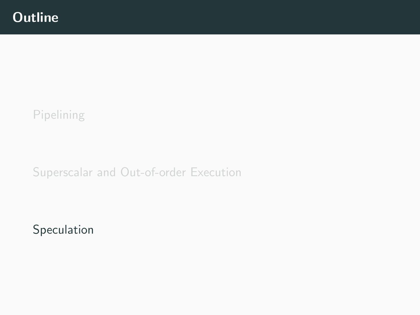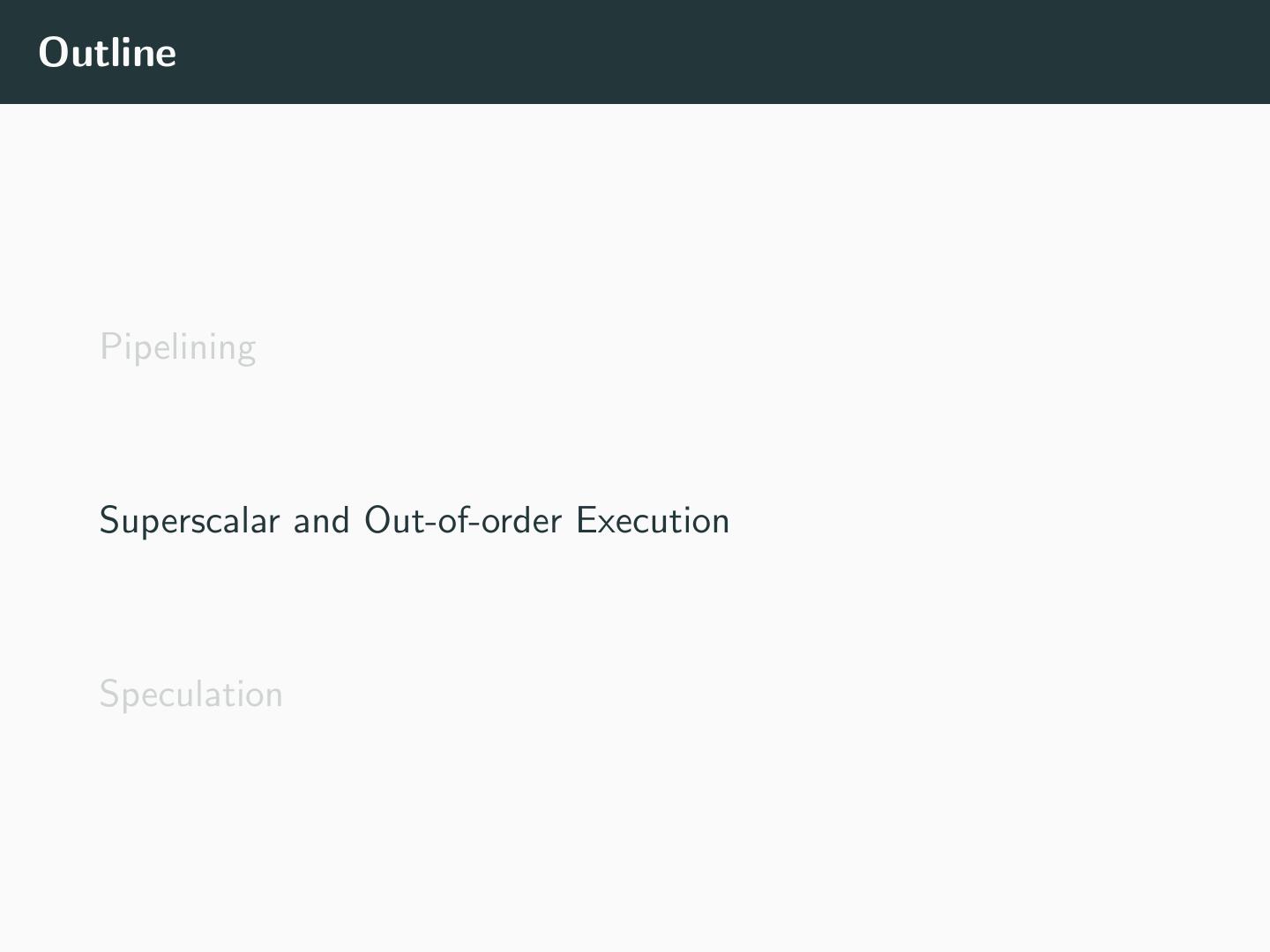 14 .Outline Pipelining Superscalar and Out-of-order Execution Speculation
