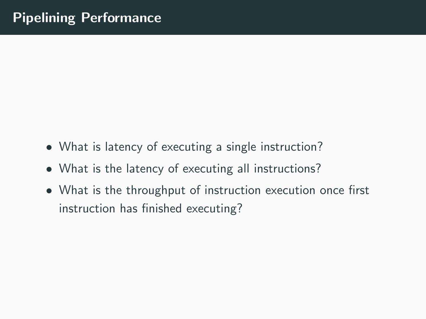 10 .Pipelining Performance • What is latency of executing a single instruction? • What is the latency of executing all instructions? • What is the throughput of instruction execution once first instruction has finished executing?