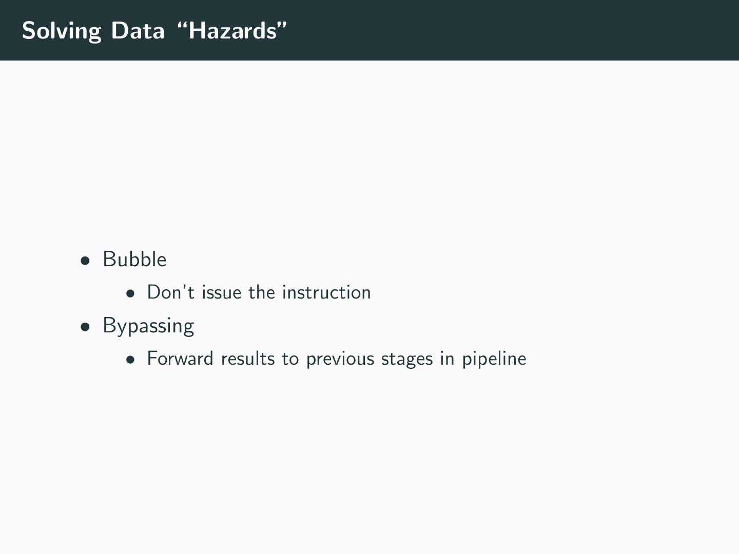 12 .Solving Data “Hazards” • Bubble • Don’t issue the instruction • Bypassing • Forward results to previous stages in pipeline