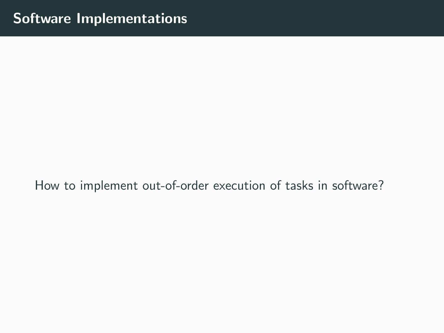 21 .Software Implementations How to implement out-of-order execution of tasks in software?