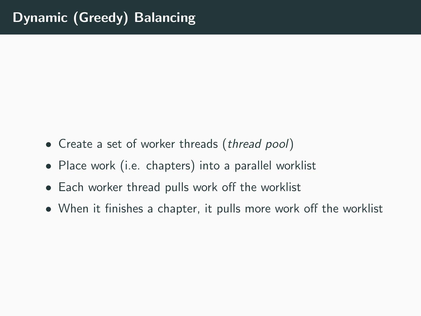 16 .Static Work Assignment Chapters are of different lengths leading to load imbalance