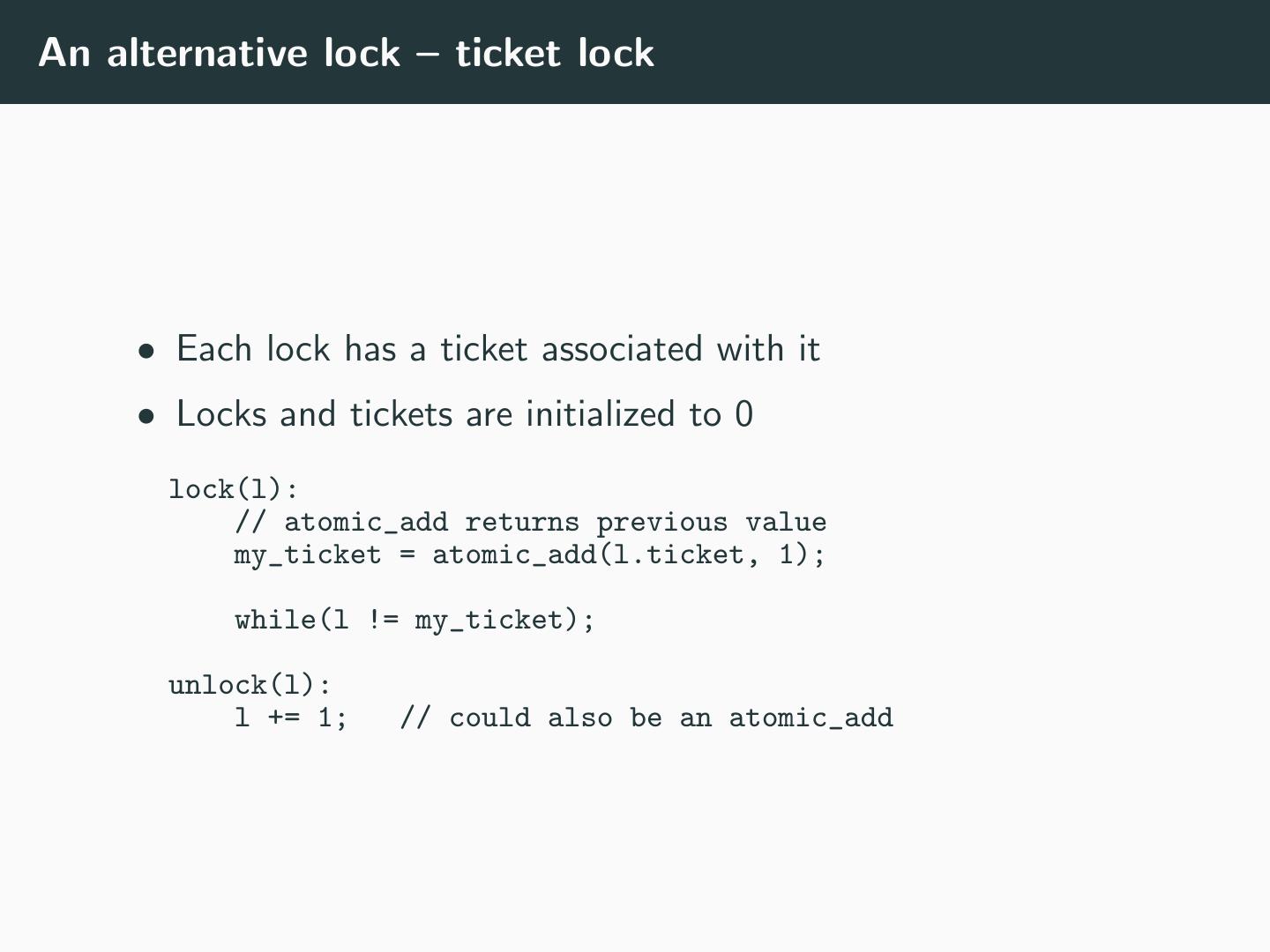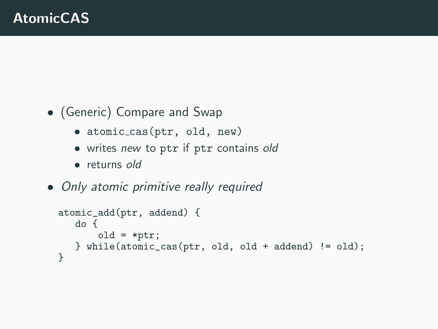 28 .AtomicCAS • (Generic) Compare and Swap • atomic cas(ptr, old, new) • writes new to ptr if ptr contains old • returns old • Only atomic primitive really required atomic_add(ptr, addend) { do { old = *ptr; } while(atomic_cas(ptr, old, old + addend) != old); }
