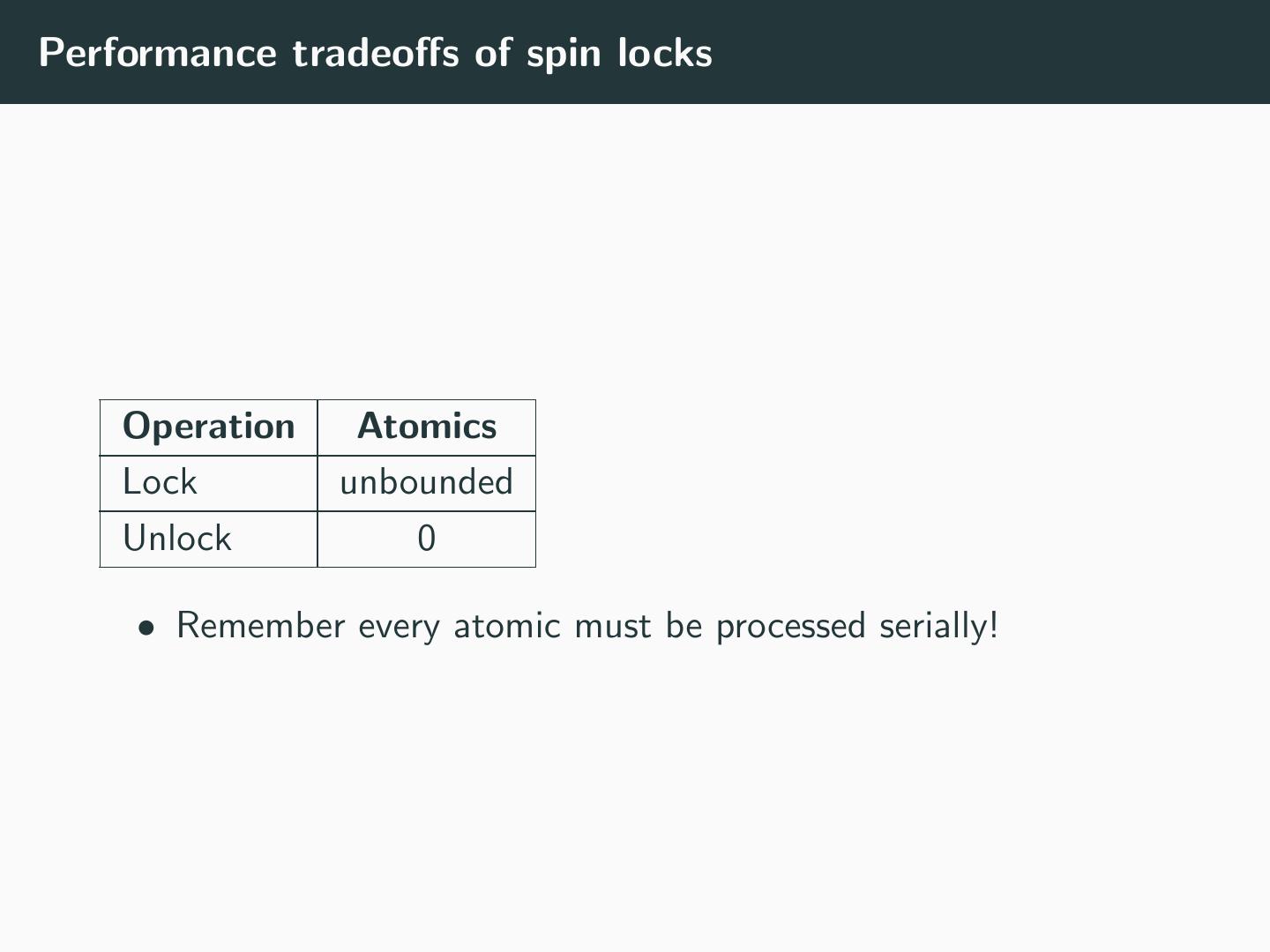 16 .Evaluation: Performance How do we evaluate performance of, say, a particular implementation strategy for locks? • Use execution time for locking and unlocking?