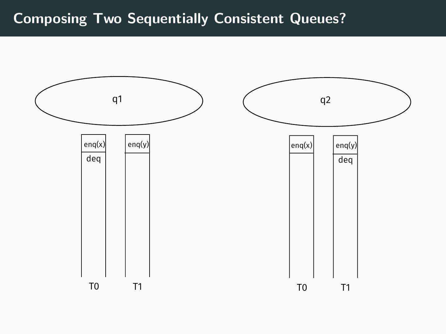 16 .Composing Two Sequentially Consistent Queues? q1 q2 enq(x) enq(y) enq(x) enq(y) deq deq T0 T1 T0 T1