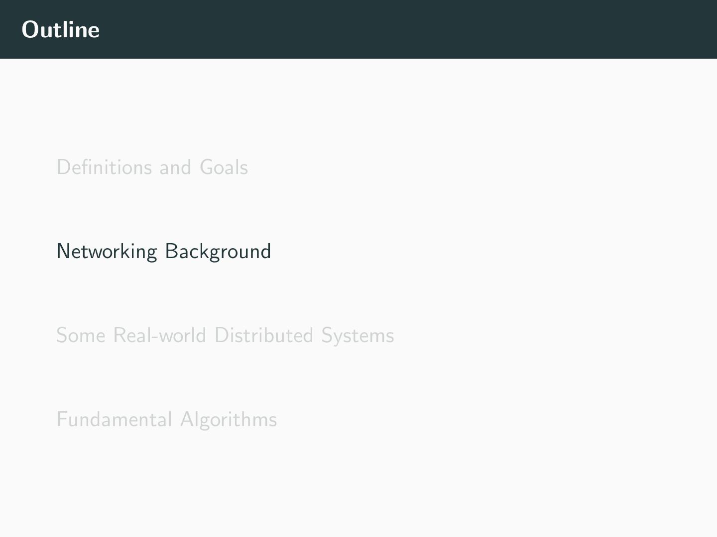3 .Outline Definitions and Goals Networking Background Some Real-world Distributed Systems Fundamental Algorithms