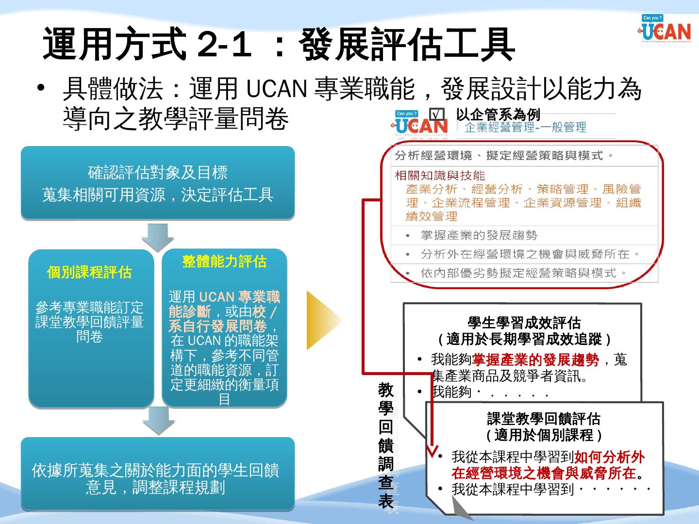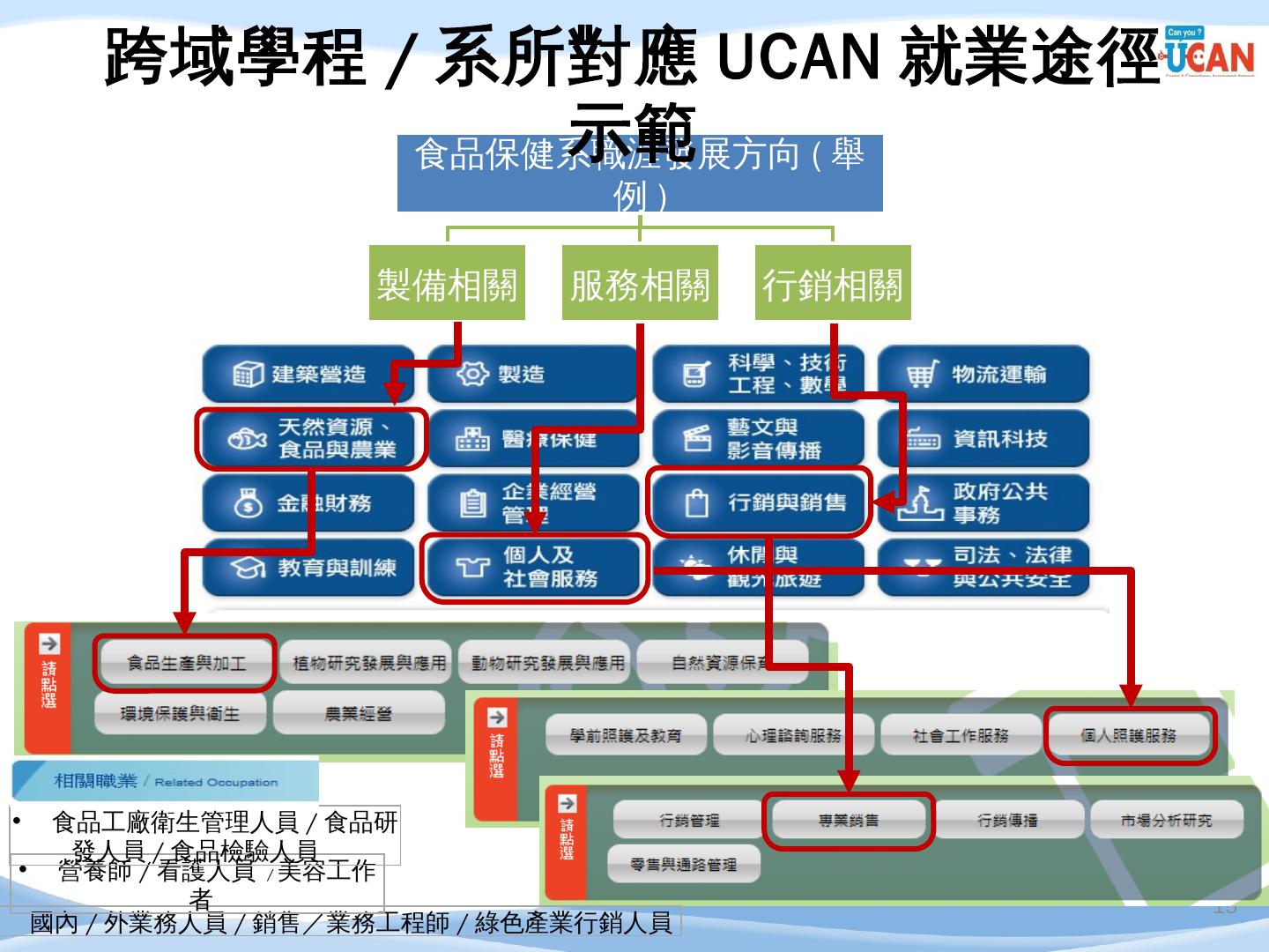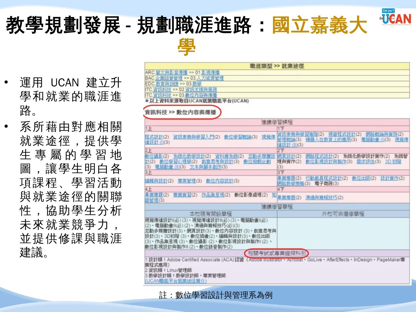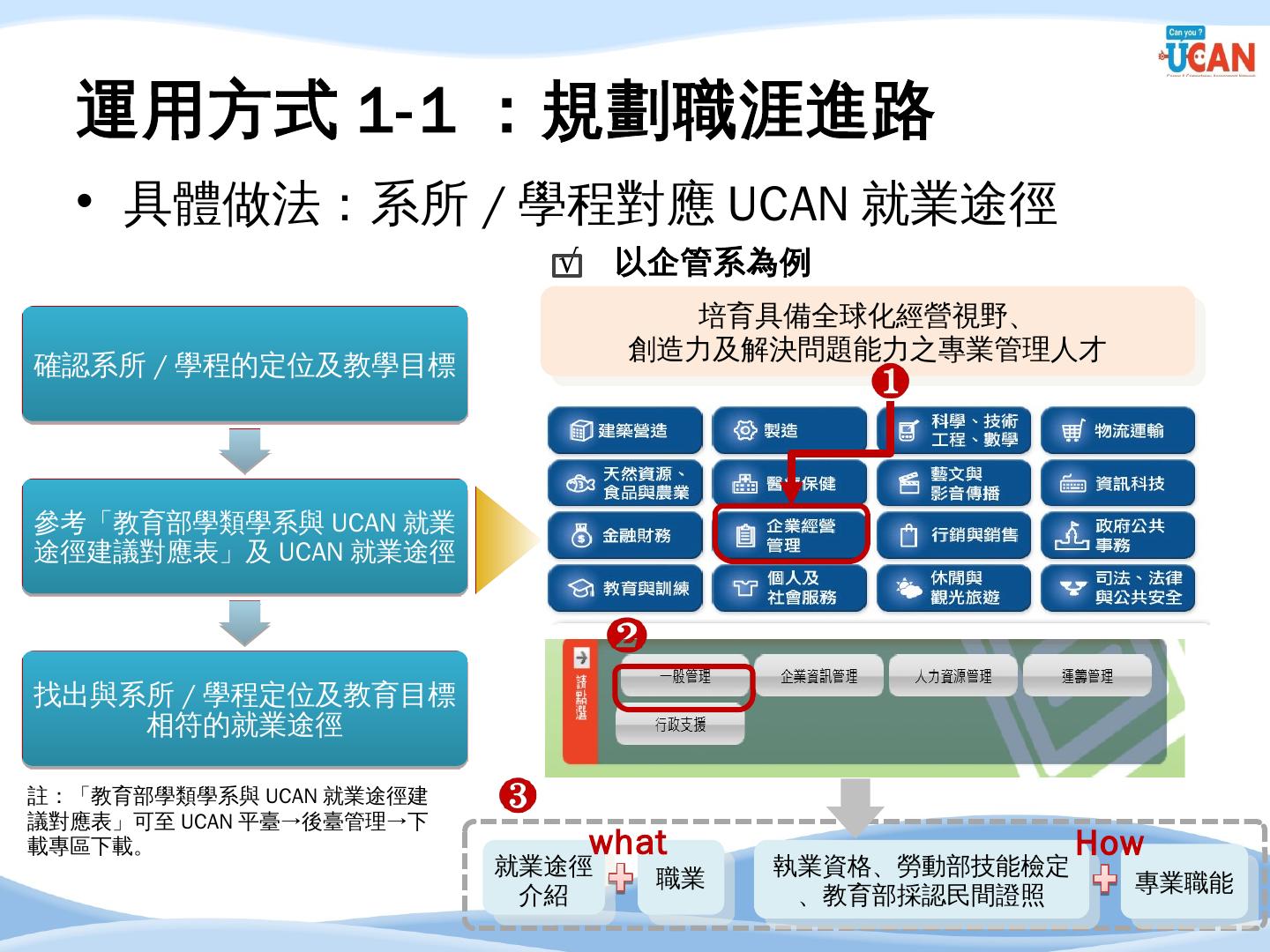 編譯. 廣告文案/企劃人員/活動企劃人員/行銷企劃人員. 14. 企管系職涯發展方向 ...... 串接畢業生流向調查及UCAN平台診斷數據,進行交叉分析.