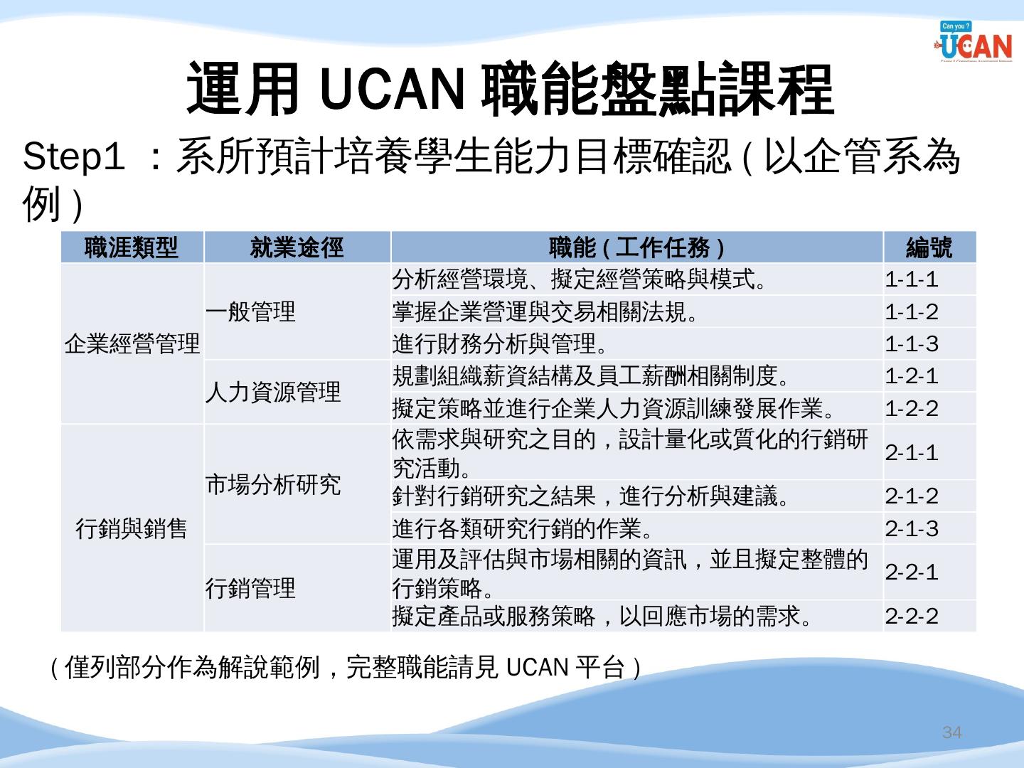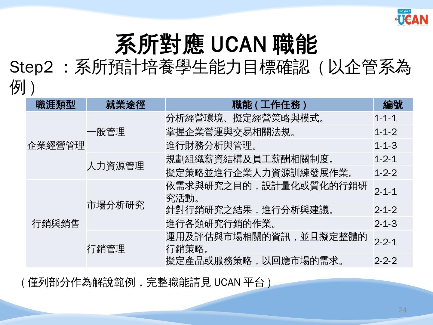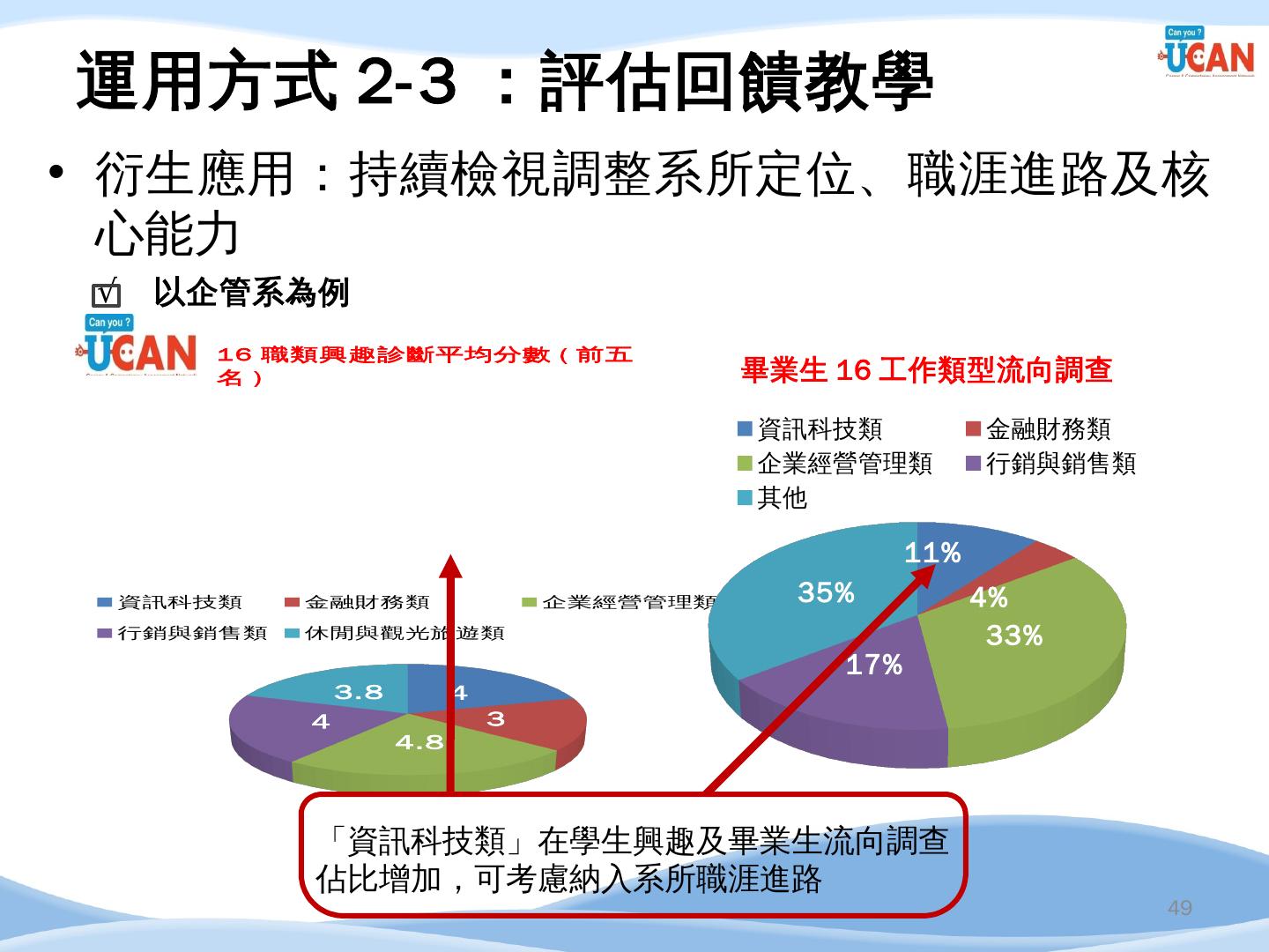 編譯. 廣告文案/企劃人員/活動企劃人員/行銷企劃人員. 14. 企管系職涯發展方向 ...... 串接畢業生流向調查及UCAN平台診斷數據,進行交叉分析.