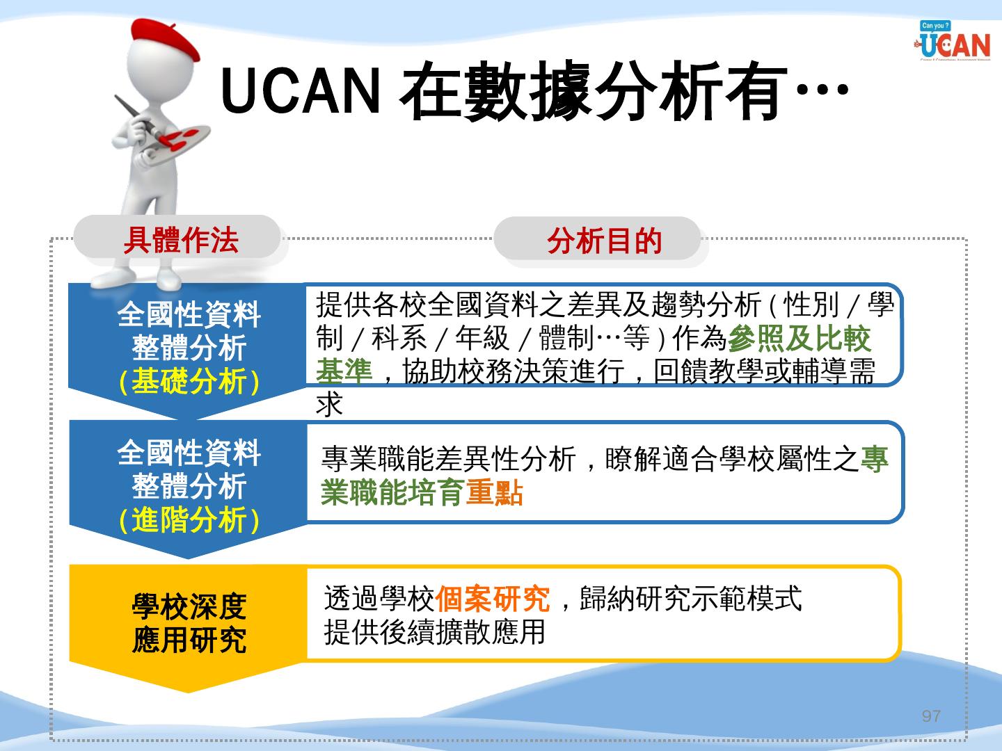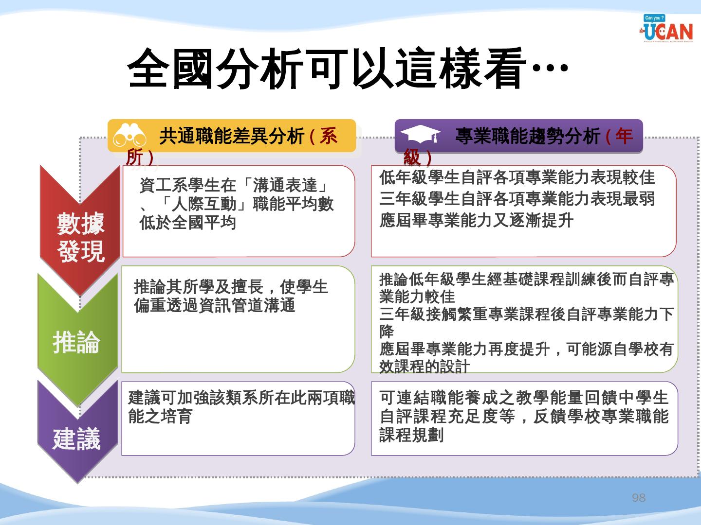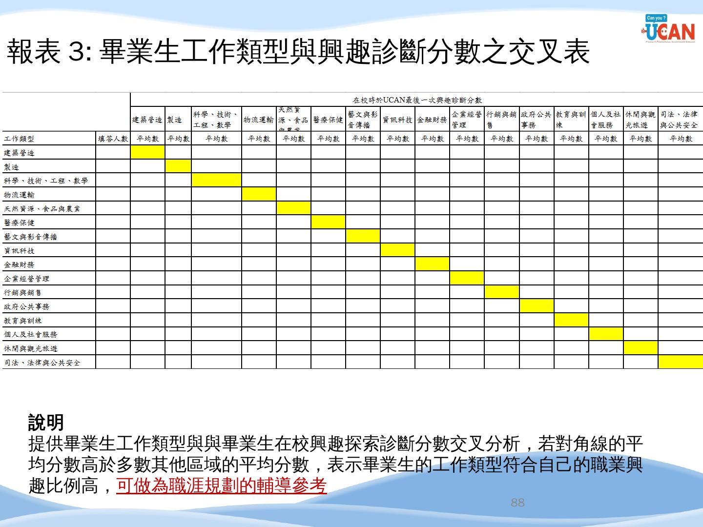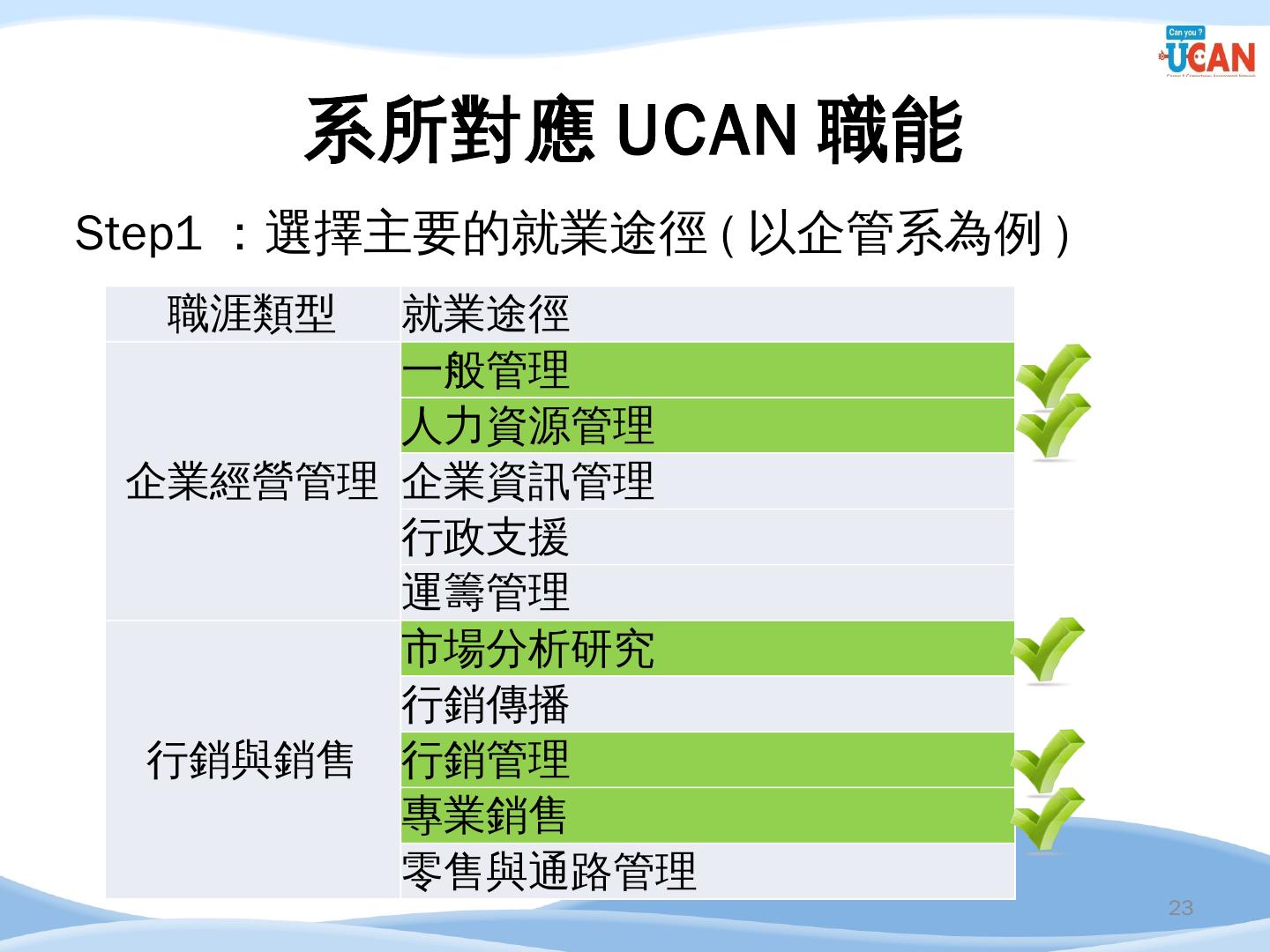 編譯. 廣告文案/企劃人員/活動企劃人員/行銷企劃人員. 14. 企管系職涯發展方向 ...... 串接畢業生流向調查及UCAN平台診斷數據,進行交叉分析.