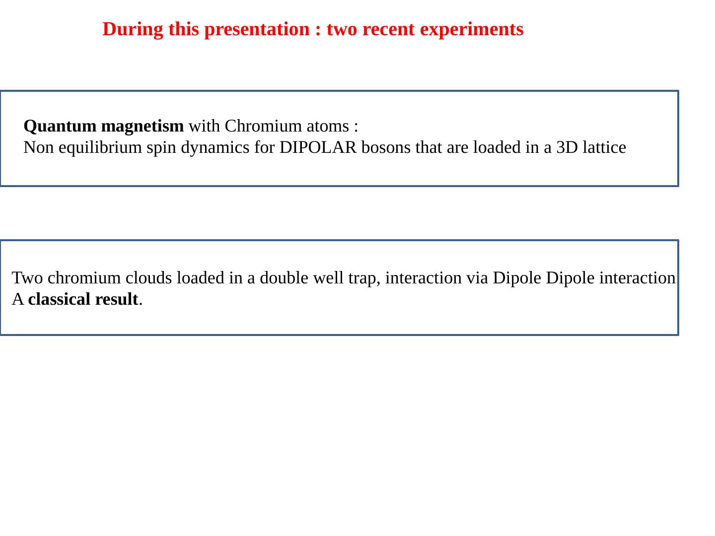 Some experiment with of a chromium dipolar condensate. Quantum magnetism with Chromium atoms : Non equilibrium spin dynamics for DIPOLAR bosons that ...