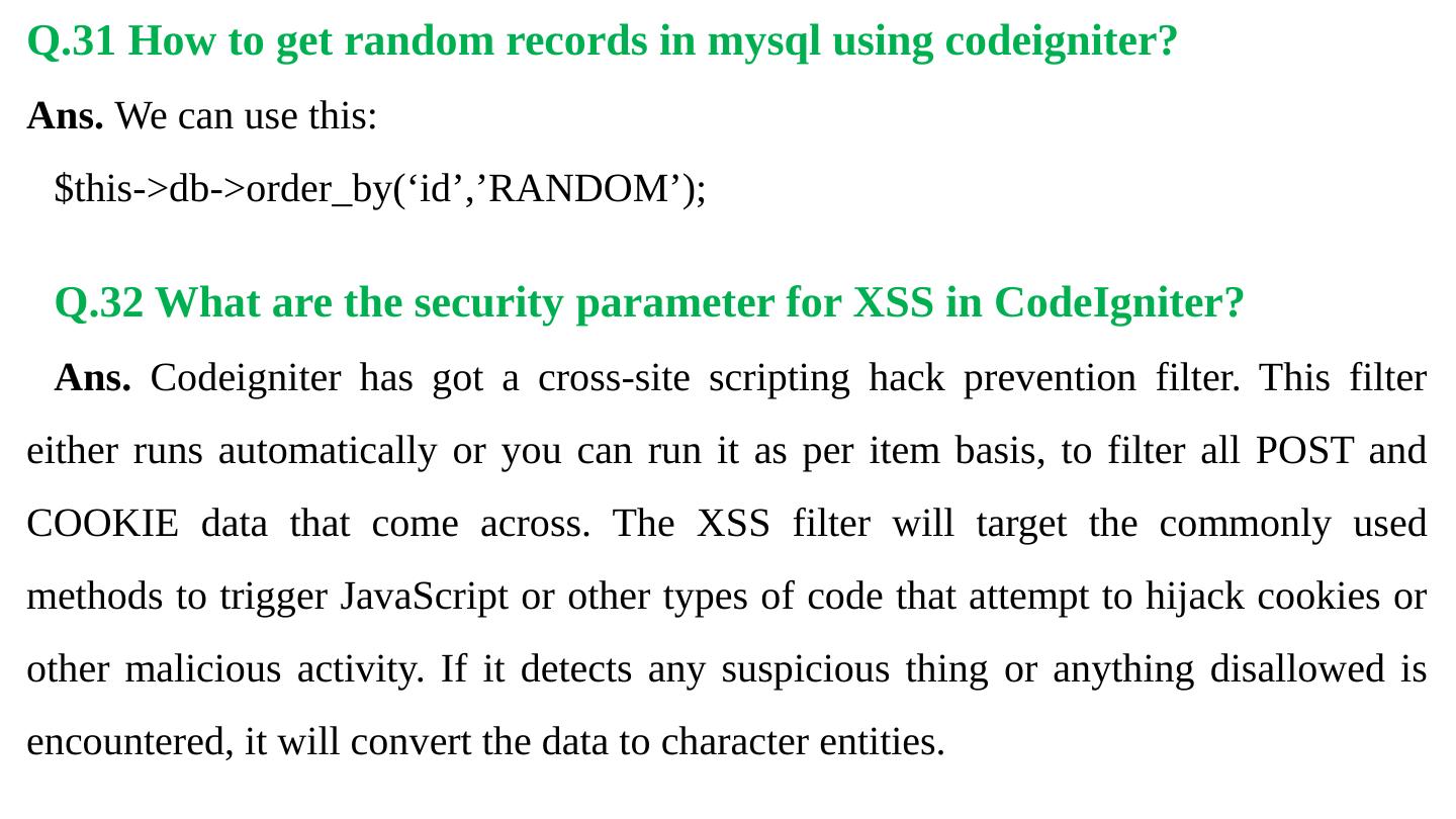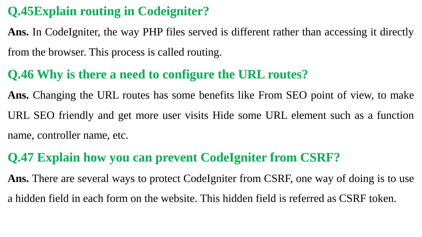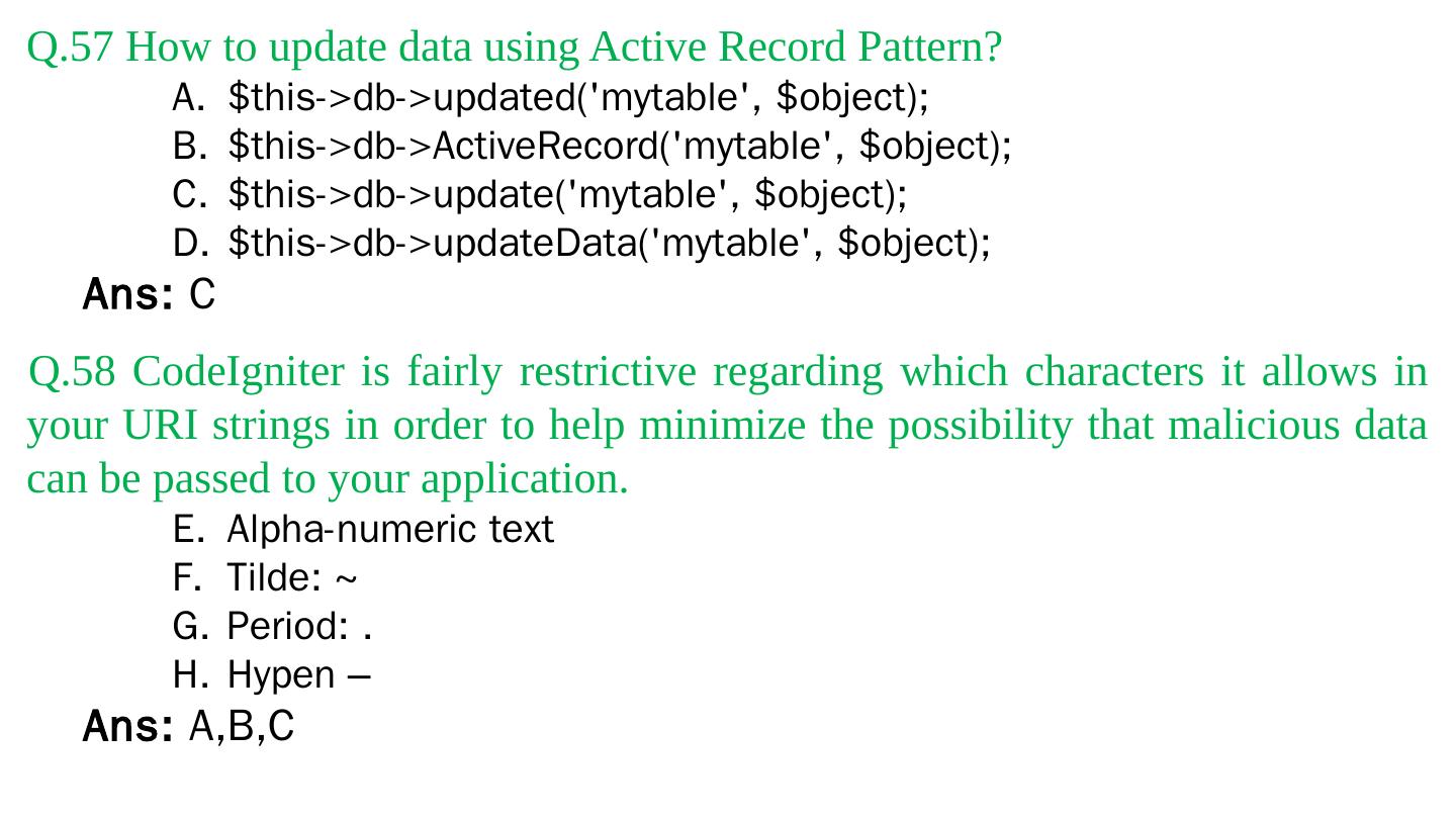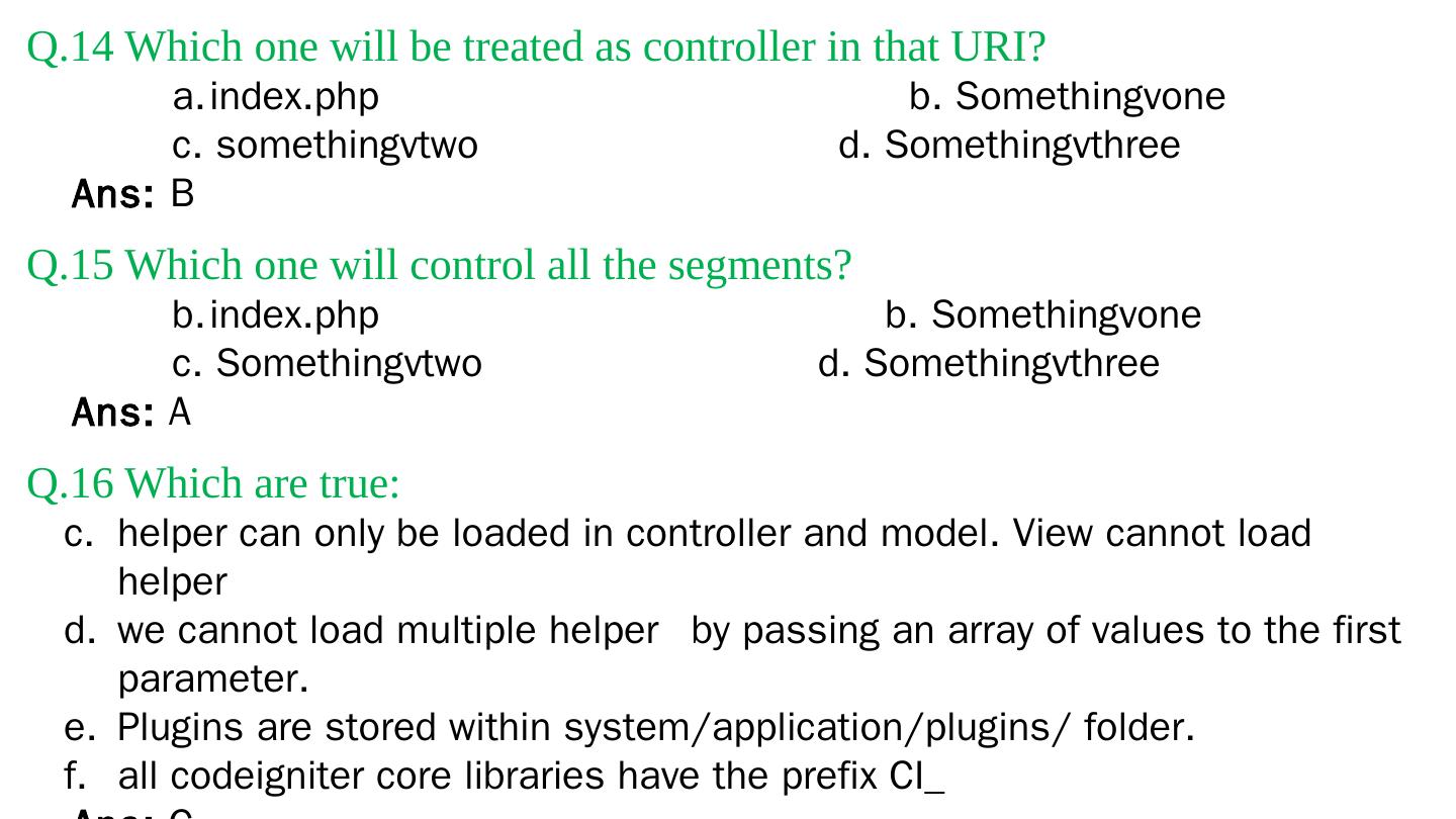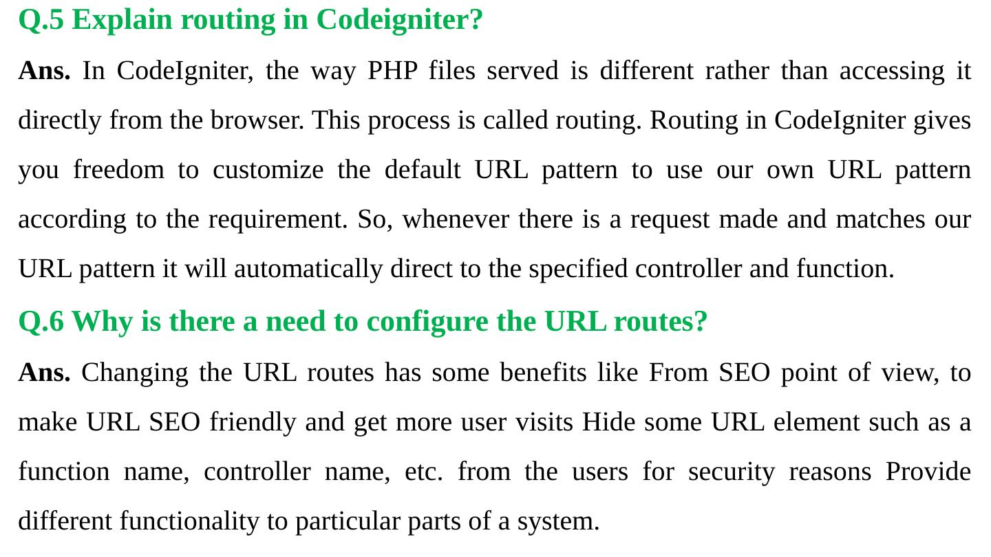 Codeigniter. Interview Questions. & Answers. Objective type. Questions Answers. Q.1 Base URL can be changed from which configuration file: a. database b.