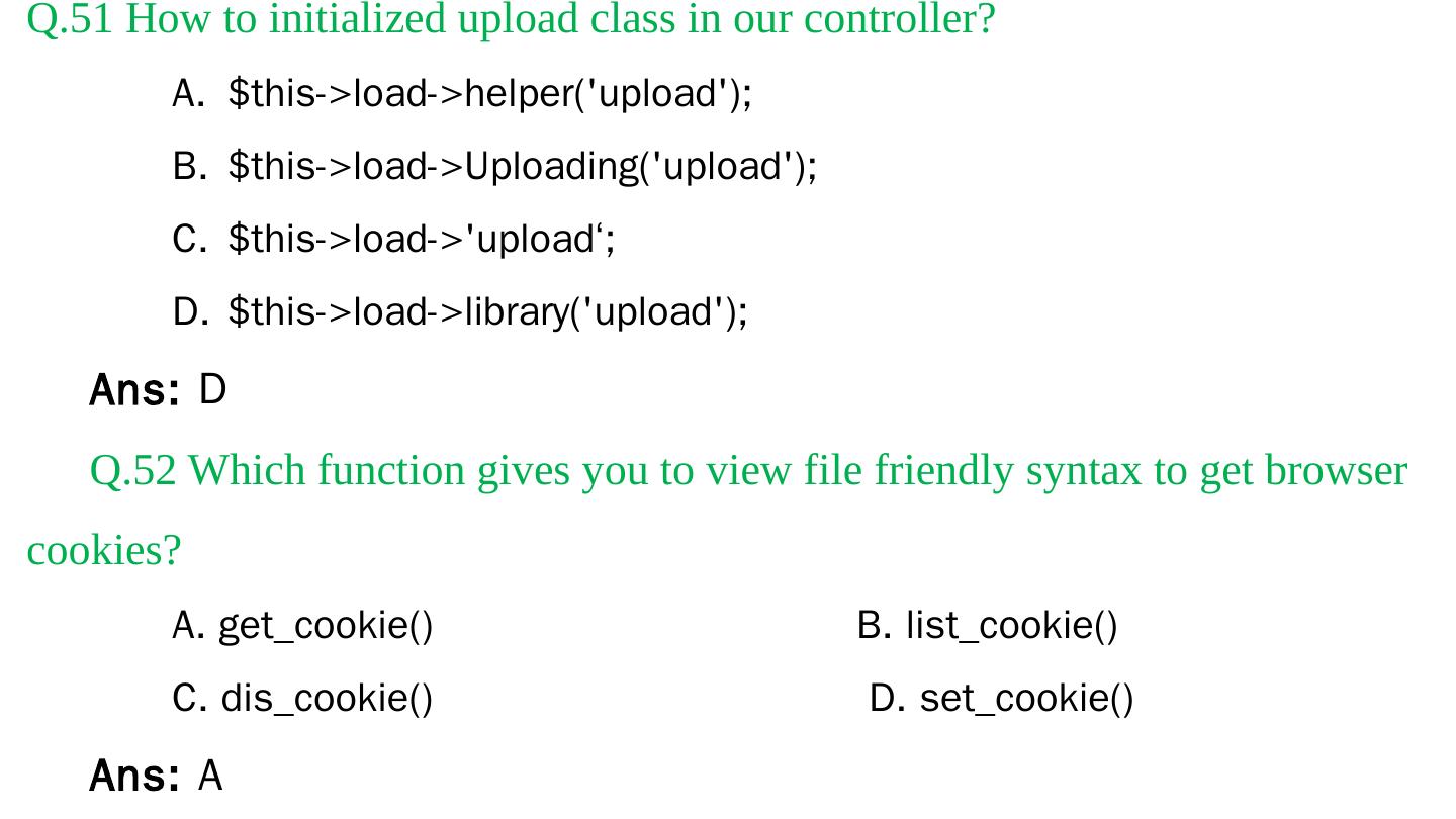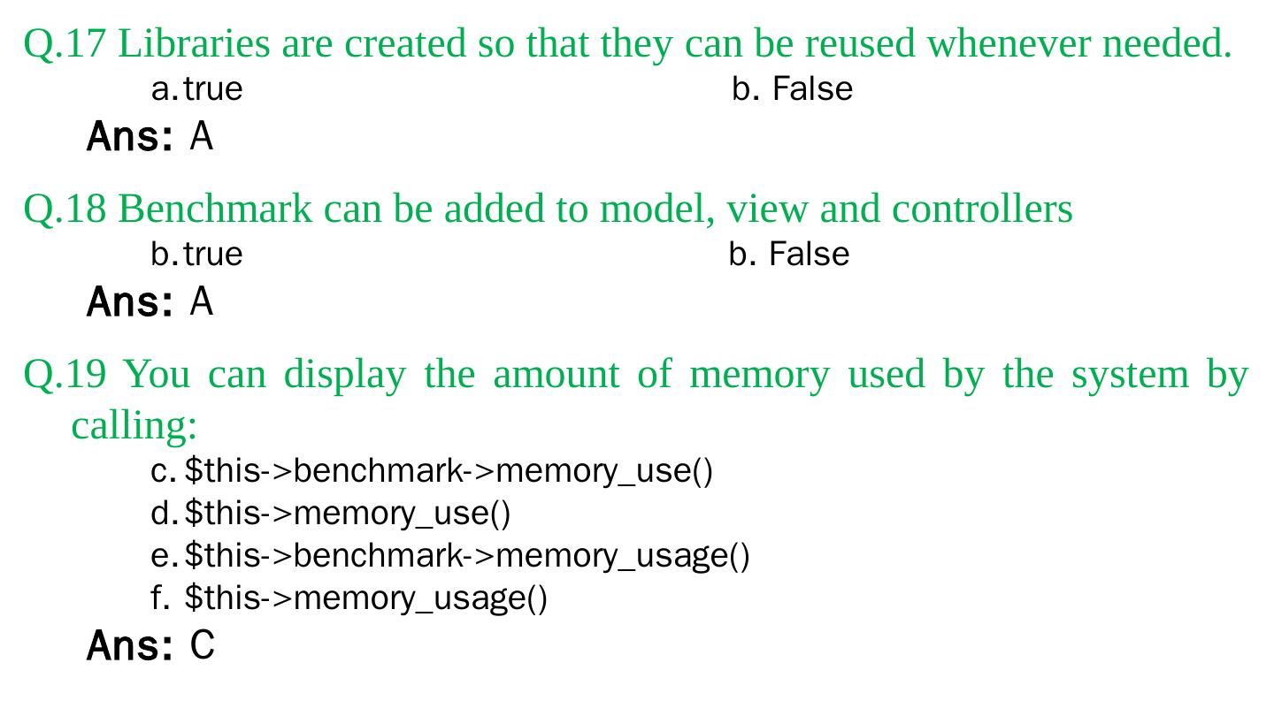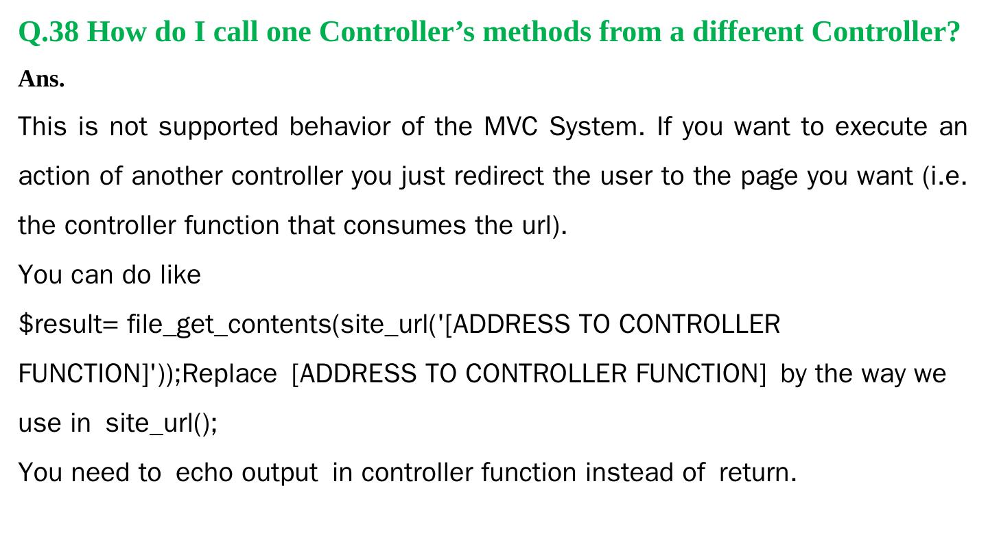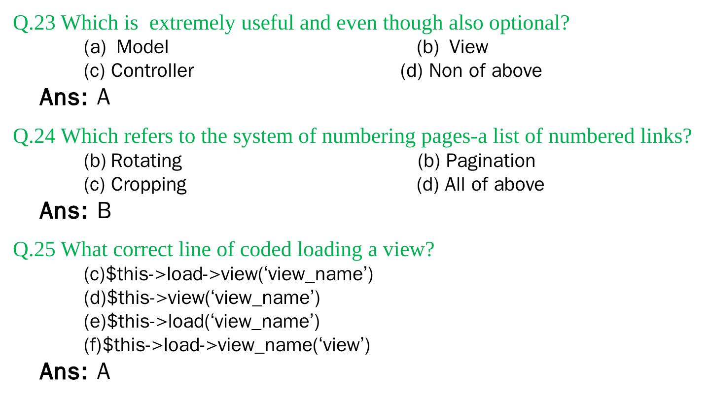 Codeigniter. Interview Questions. & Answers. Objective type. Questions Answers. Q.1 Base URL can be changed from which configuration file: a. database b.