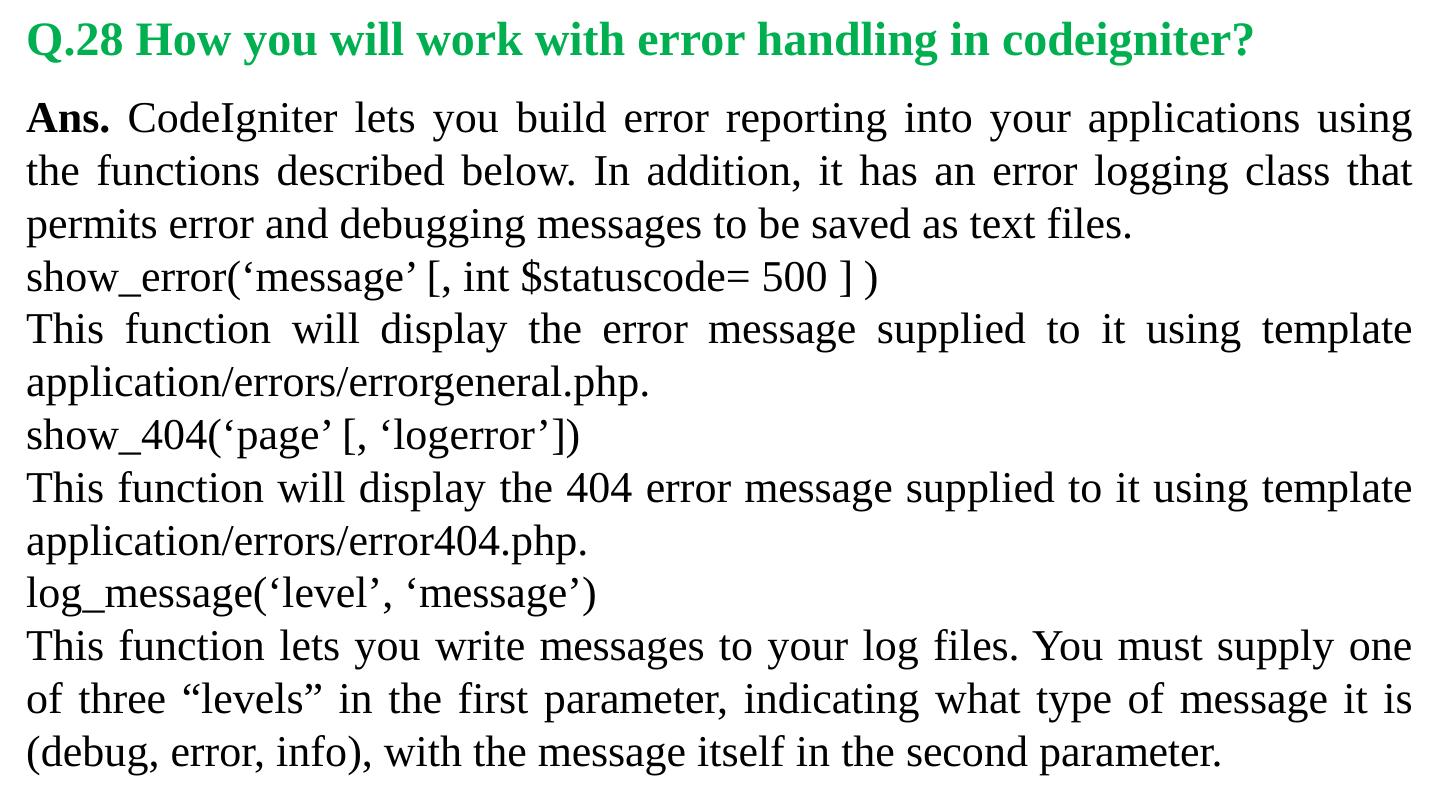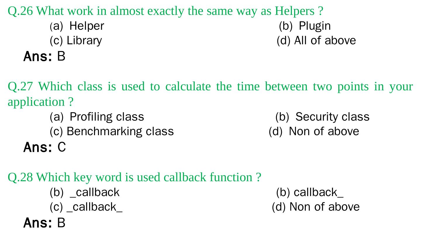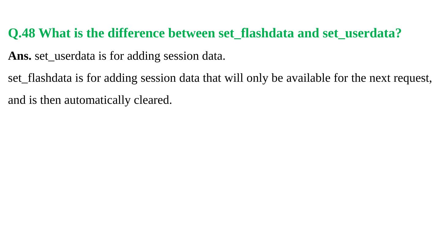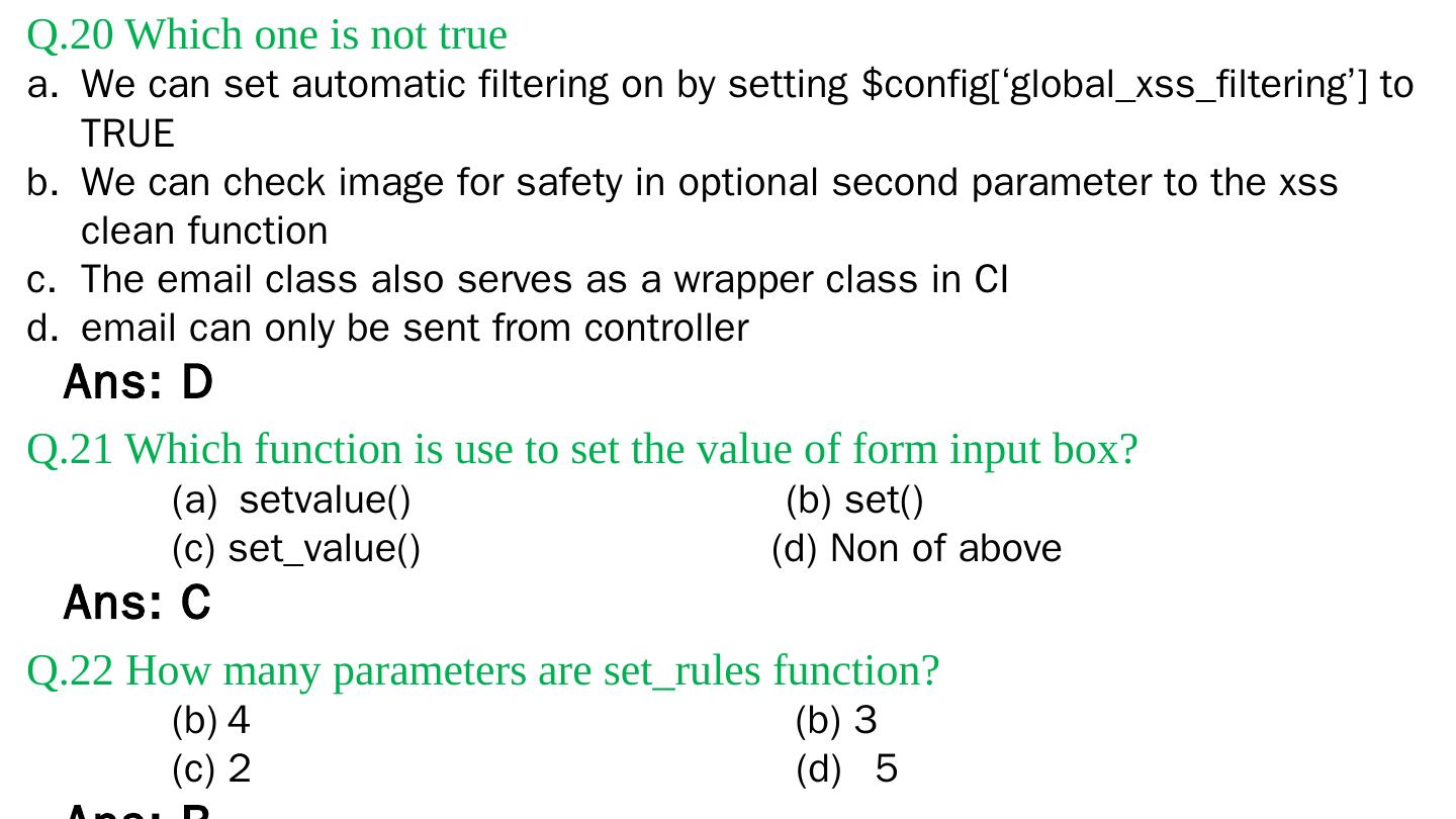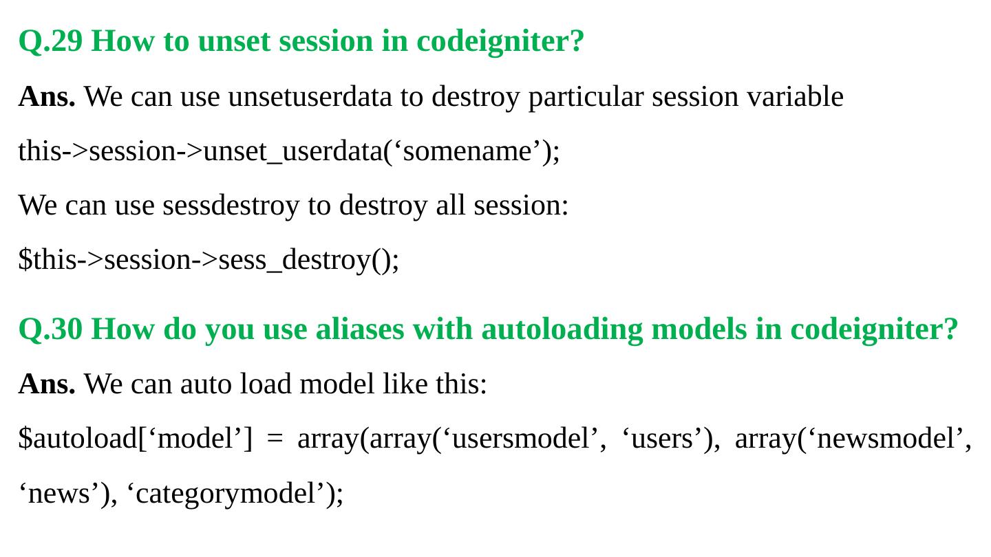 Codeigniter. Interview Questions. & Answers. Objective type. Questions Answers. Q.1 Base URL can be changed from which configuration file: a. database b.