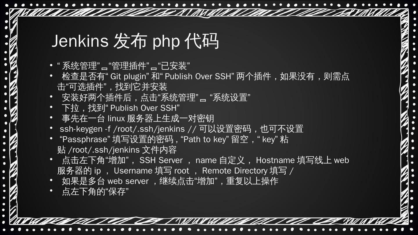 持续集成(Continuous integration,简称CI). 持续交付(Continuous delivery) ... 系统管理” “管理插件” “已安装”; 检查是否有“Git plugin”和“Publish Over SSH”两个 ...
