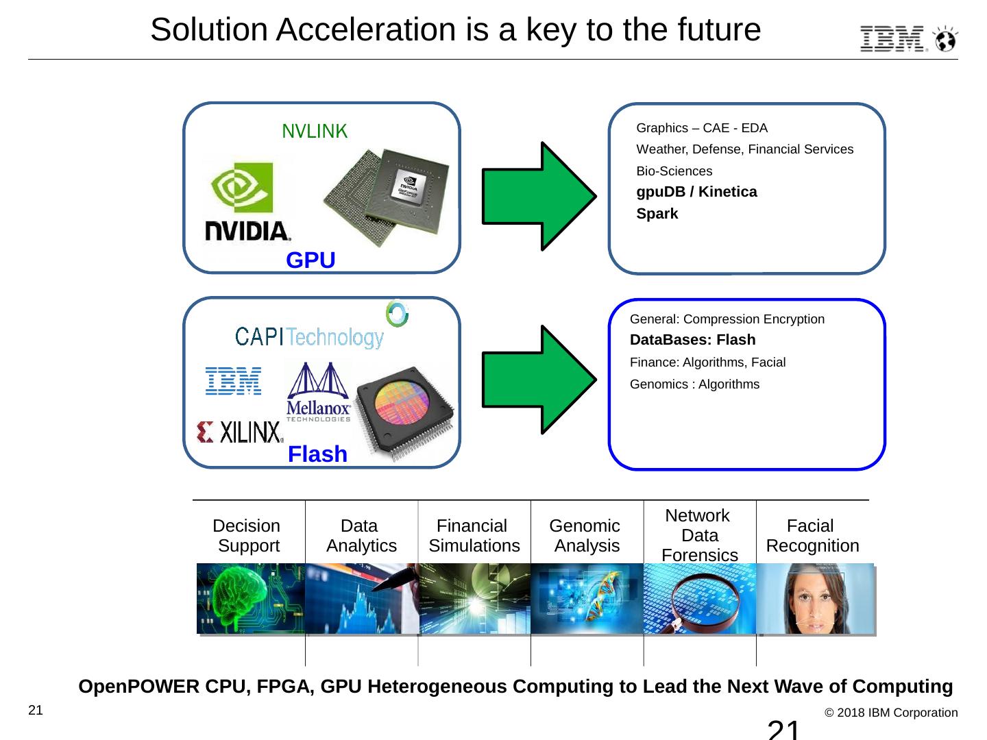 21 .21 Solution Acceleration is a key to the future NVLINK GPU Flash Graphics – CAE - EDA Weather, Defense, Financial Services Bio-Sciences gpuDB / Kinetica Spark General: Compression Encryption DataBases : Flash Finance: Algorithms, Facial Genomics : Algorithms Decision Support Data Analytics Financial Simulations Genomic Analysis Network Data Forensics Facial Recognition OpenPOWER CPU, FPGA, GPU Heterogeneous Computing to Lead the Next Wave of Computing