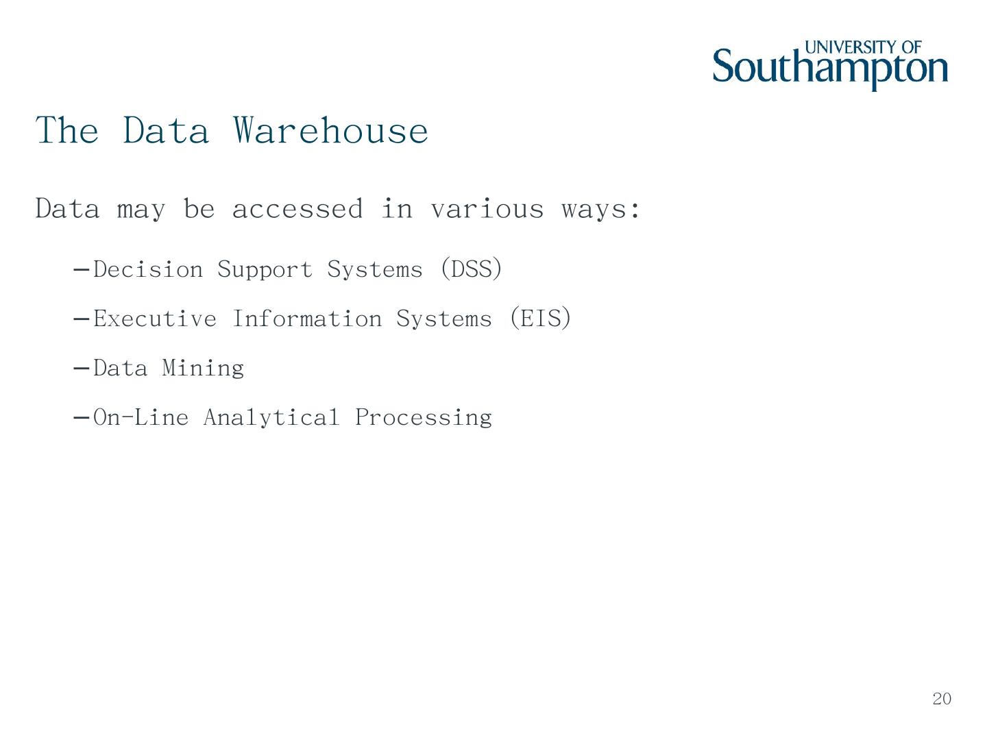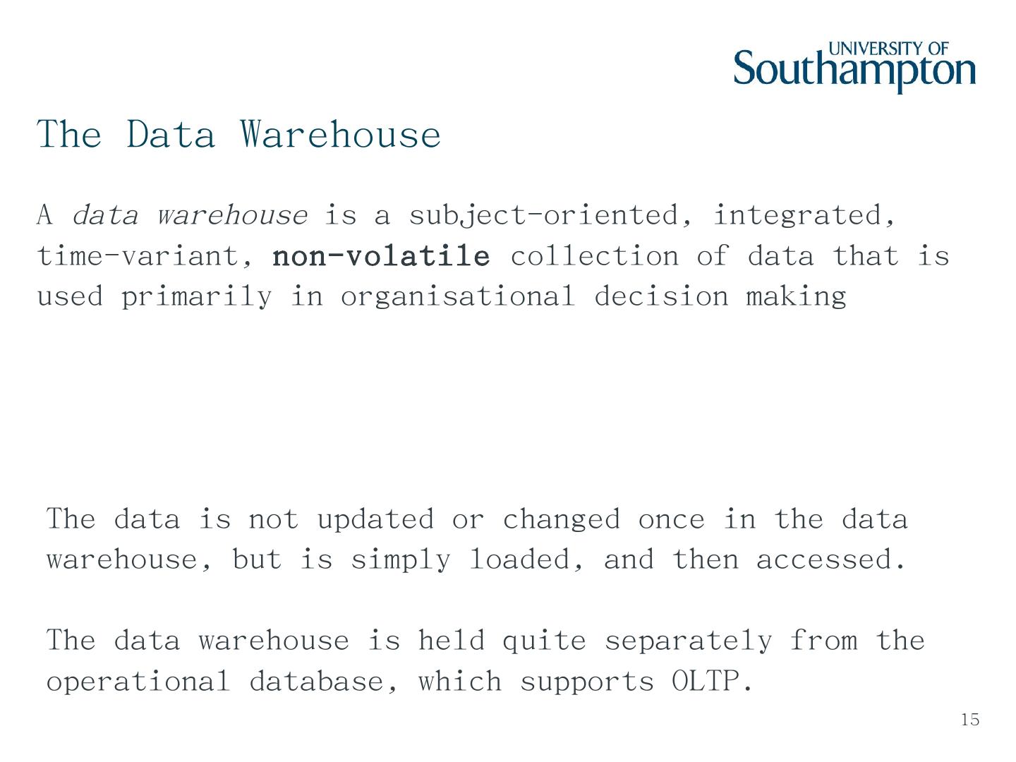 includes the use of data warehouses; multidimensional databases; data analysis. Online Analytical Processing. 4. OLAP is the name given to the dynamic ...