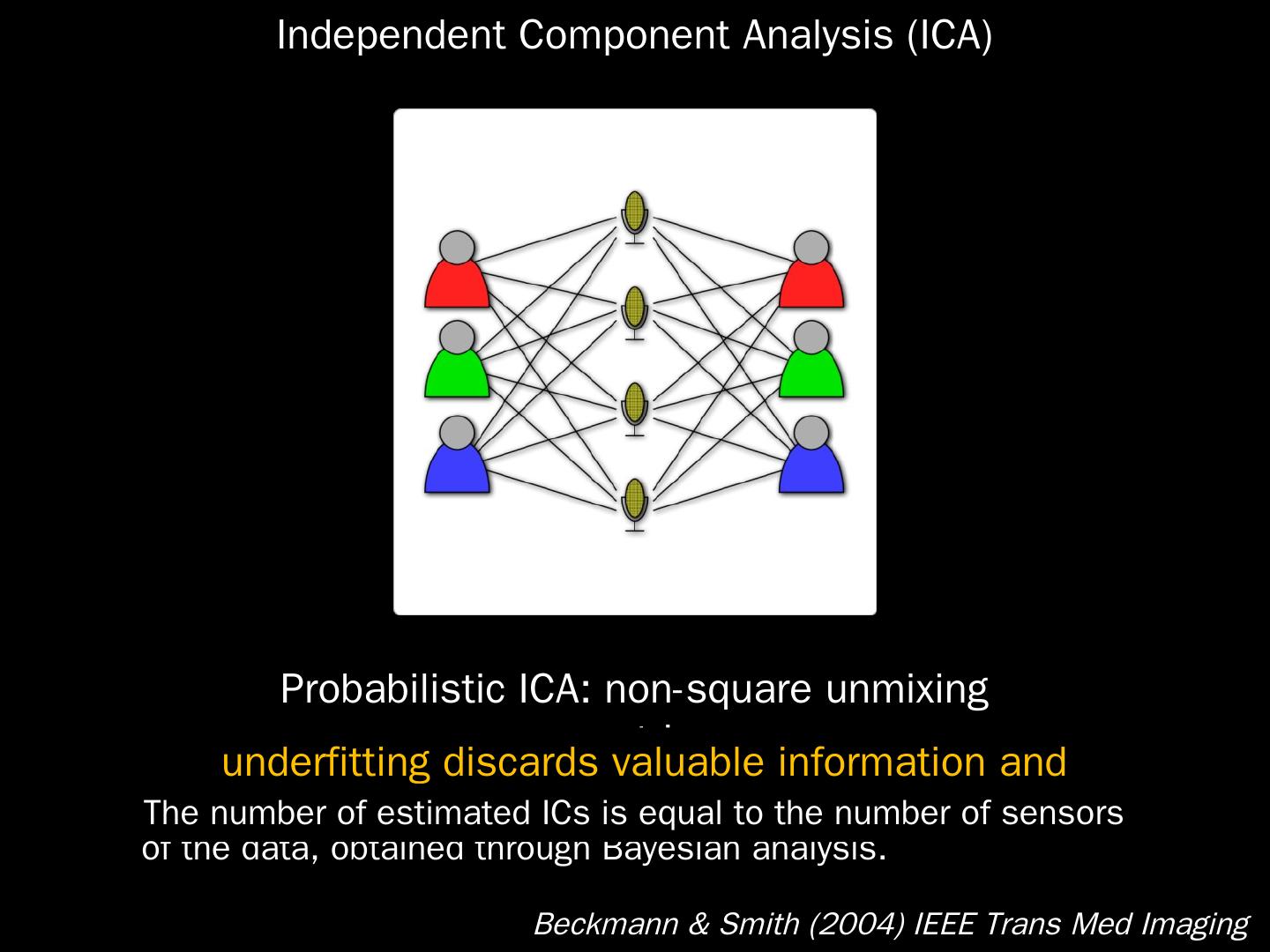 Probabilistic Independent Component Analysis (PICA). Independent Component Analysis (ICA). square unmixing matrix. overfitting leads to the appearance of ...