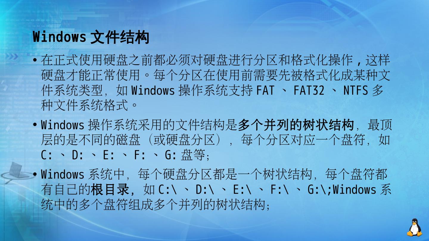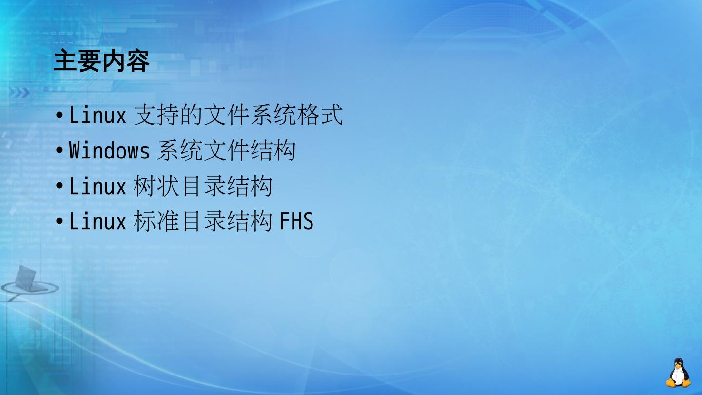 Linux支持的文件系统格式; Windows系统文件结构; Linux树状目录结构; Linux标准目录结构FHS. Linux 支持的文件系统格式. Linux操作系统中标准的磁盘分区文件 ...