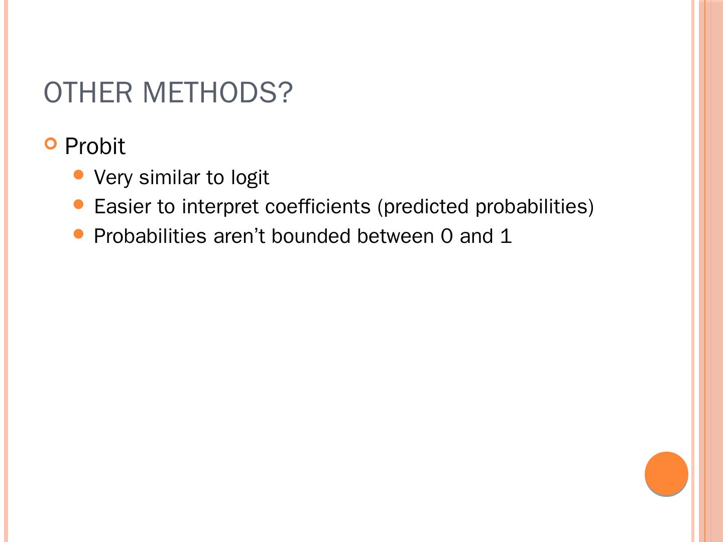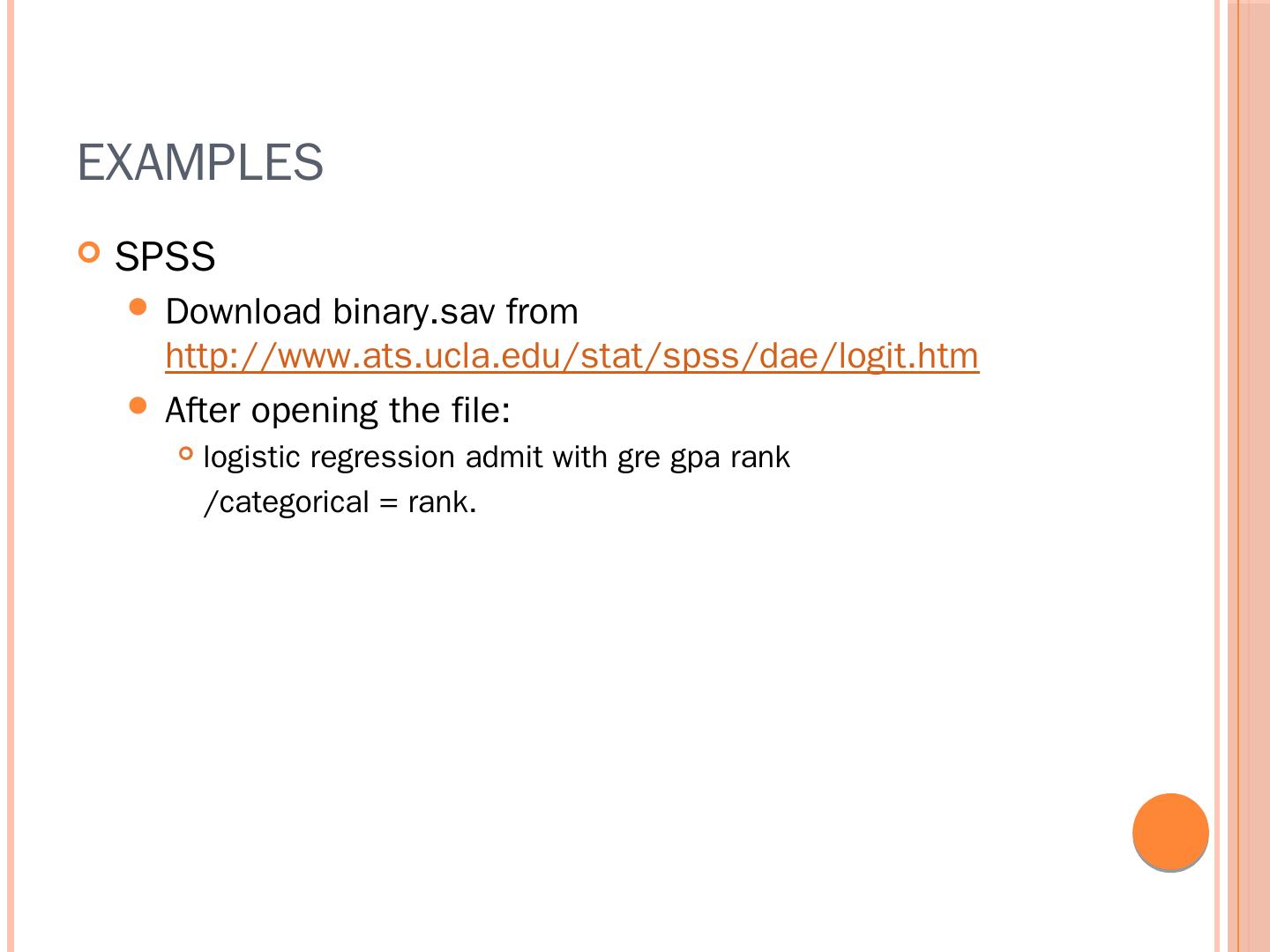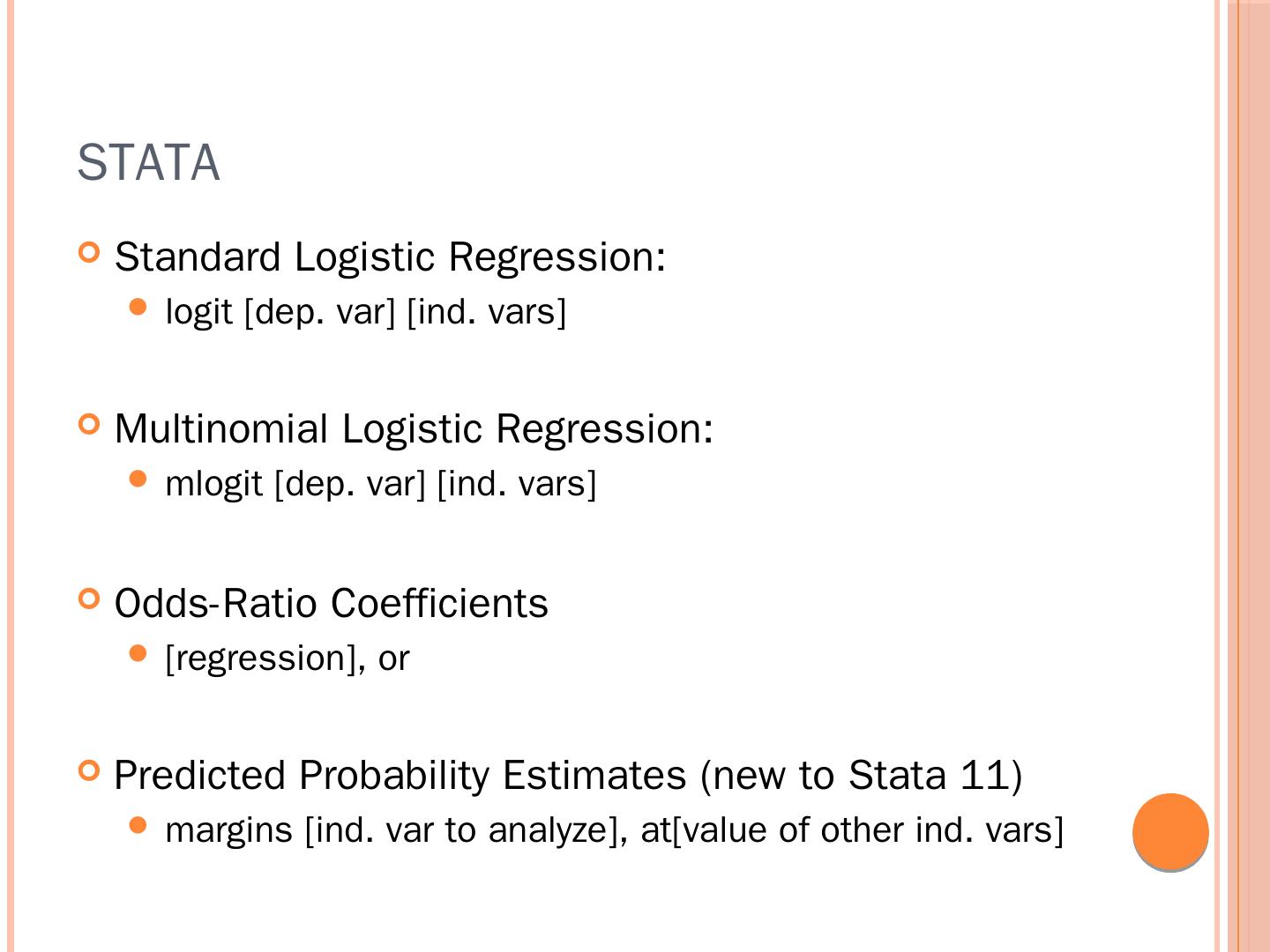Logistic regression is a method for analyzing relative probabilities between discrete outcomes (binary or categorical dependent variables). Binary outcome: ...