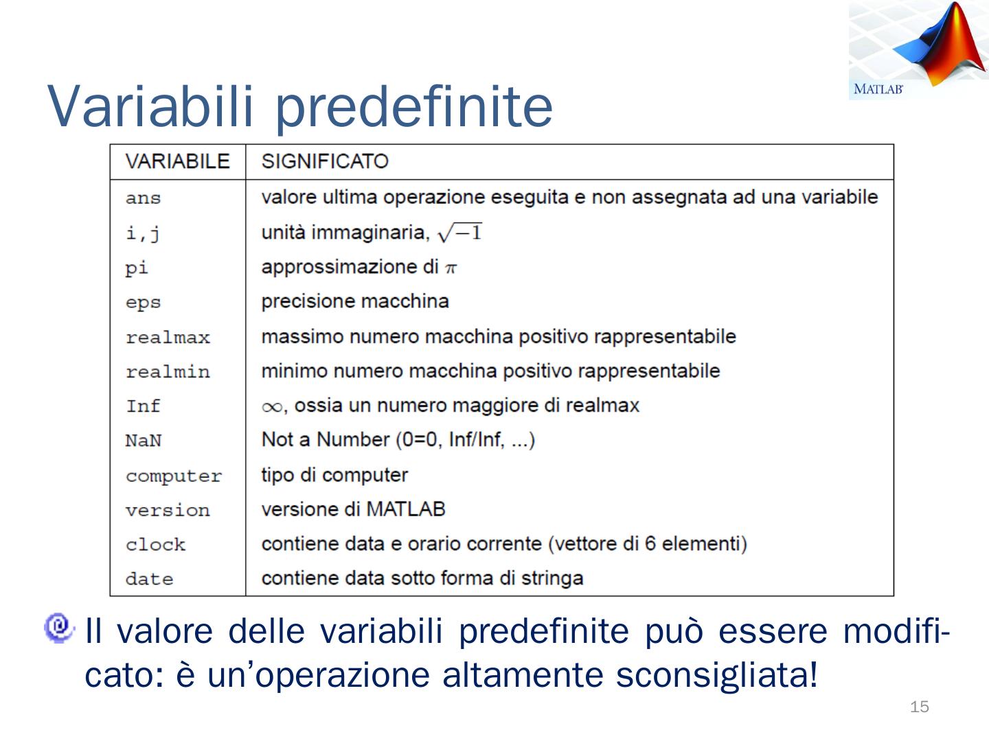 Da linea di comando, Matlab® accetta definizioni di variabili, espressioni e chiamate a tutte le funzioni disponibili nell'ambiente; Tutte le funzioni di Matlab® non ...
