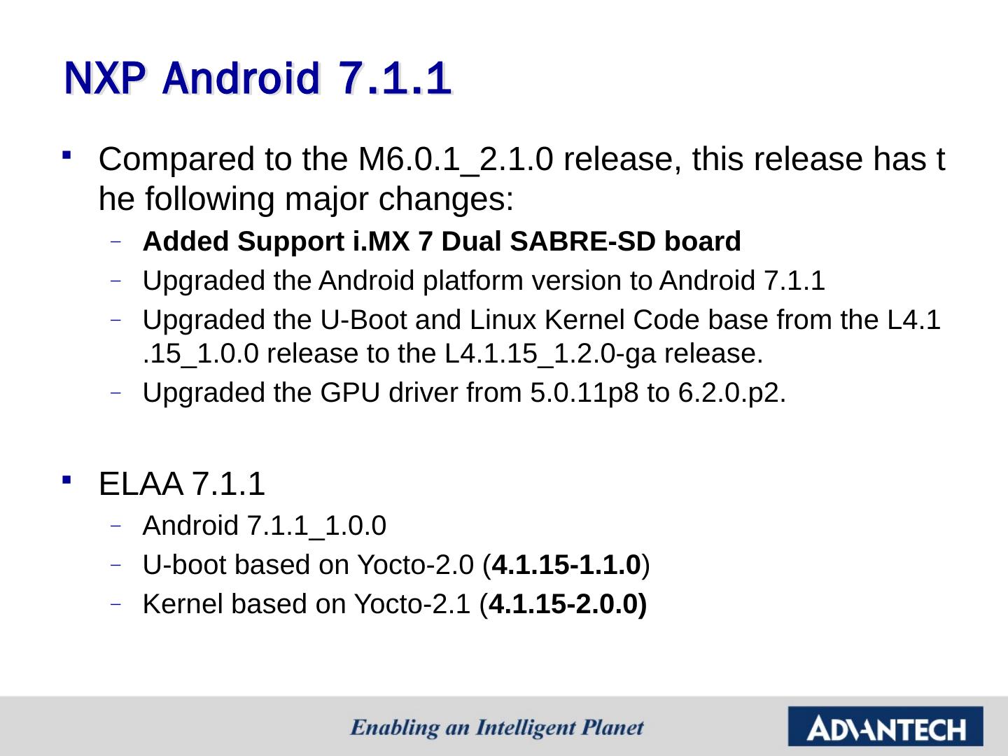 Android 7.1.1_1.0.0; U-boot based on Yocto-2.0 (4.1.15-1.1.0); Kernel based on ... /kernel/include/upai/linux/dm-ioctl.h; /kernel/include/linux/device-mapper.h ...