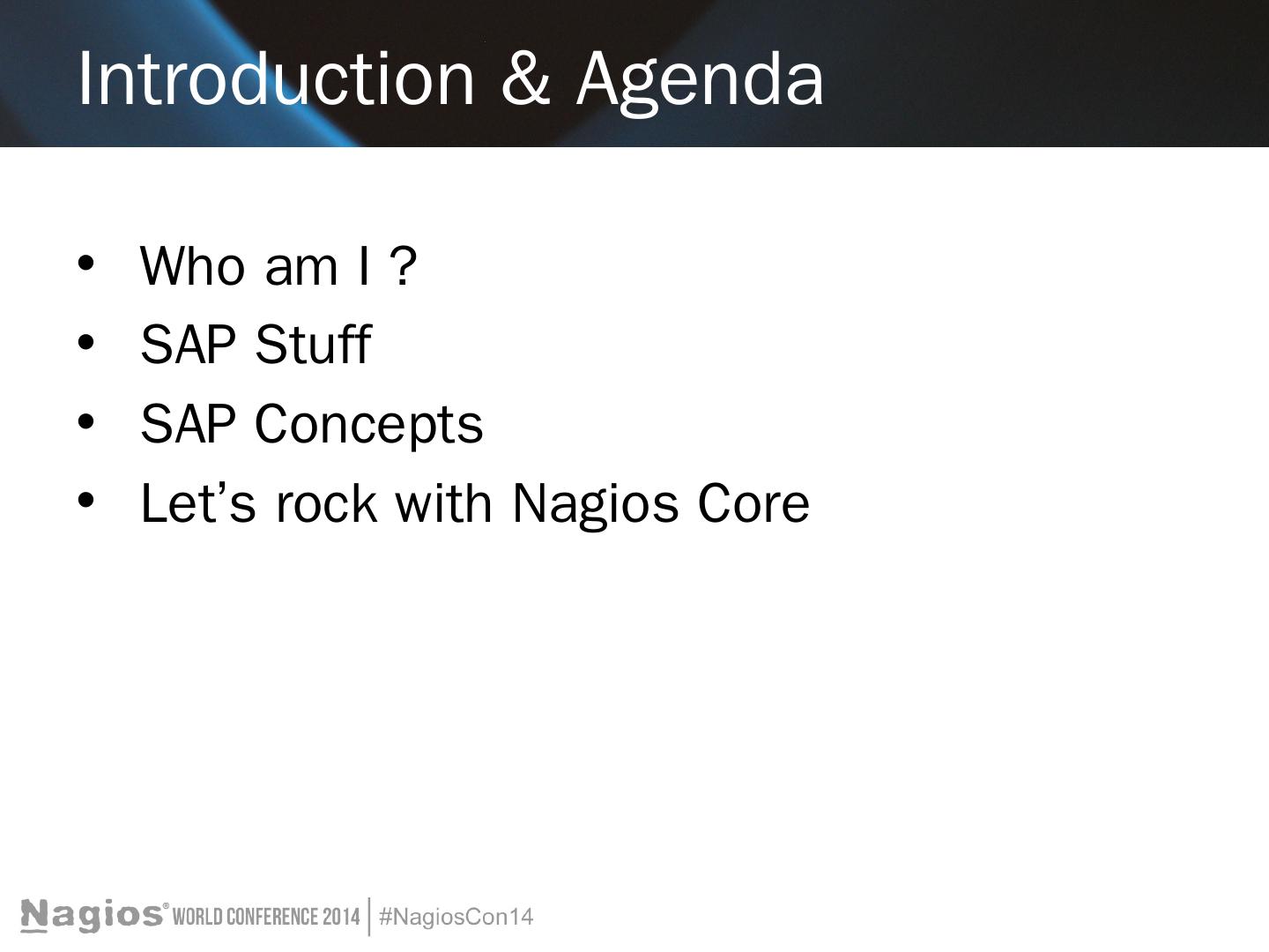 Monitoring SAP System with Nagios Core. Luis Contreras. lcontreras@nagios.com. Introduction & Agenda. Who am I ? SAP Stuff; SAP Concepts; Let's rock with ...