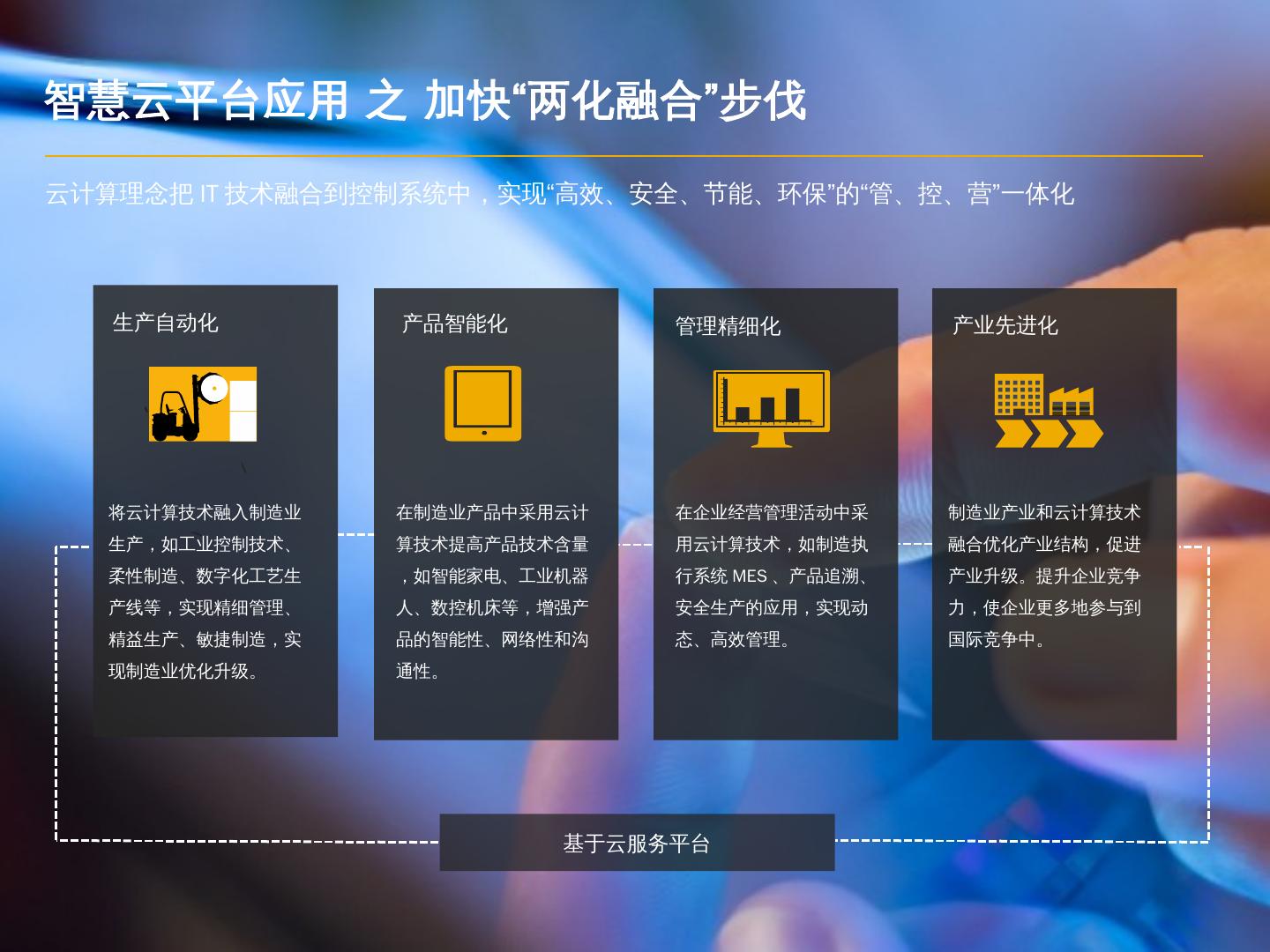 制造业产业和云计算技术融合优化产业结构,促进产业升级。 ... x86服务器 .... 企业运营的关键在于成本控制,但是原有管理体系不能满足管理层的这一需要; 各部门的统计数据不统一,使企业的运营风险很大; 由于管理层不了解产品的 ...