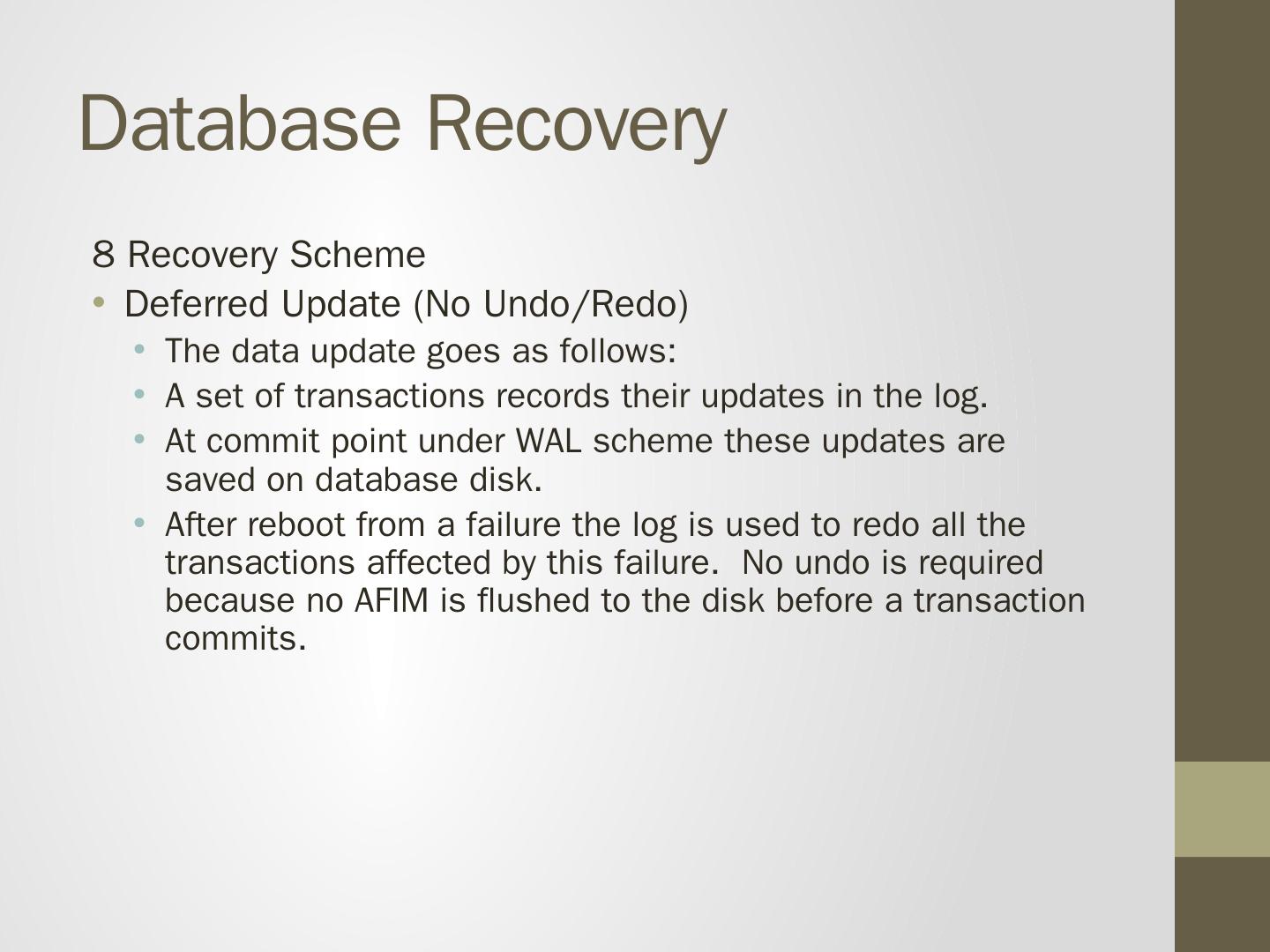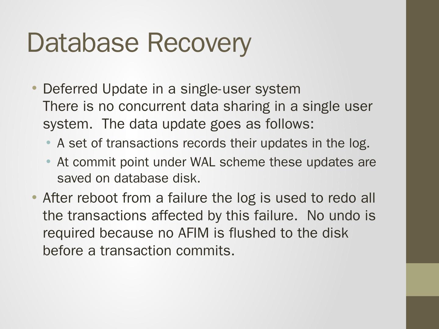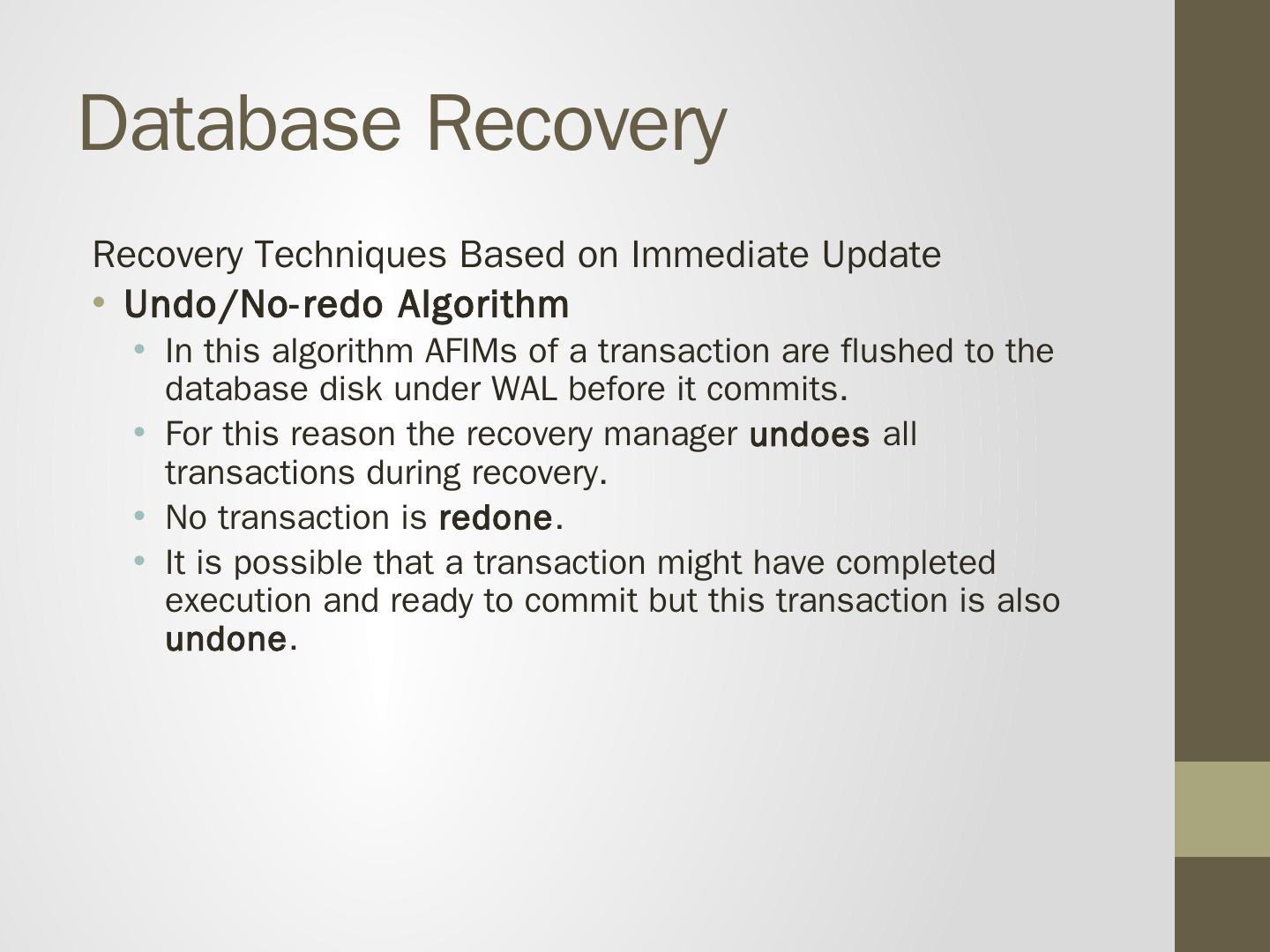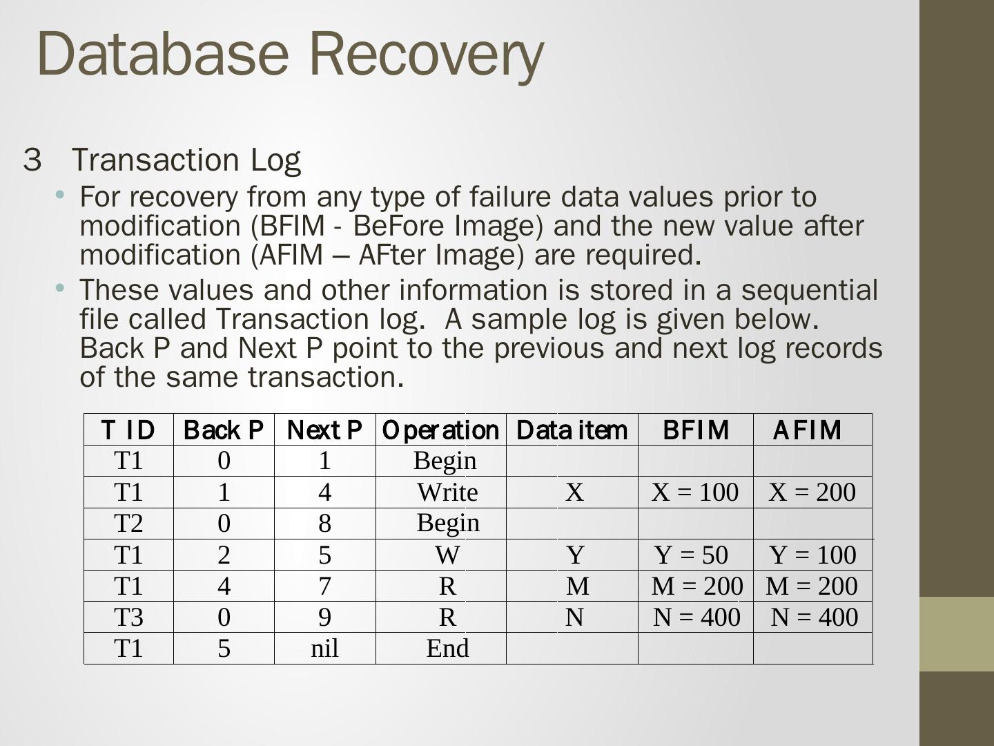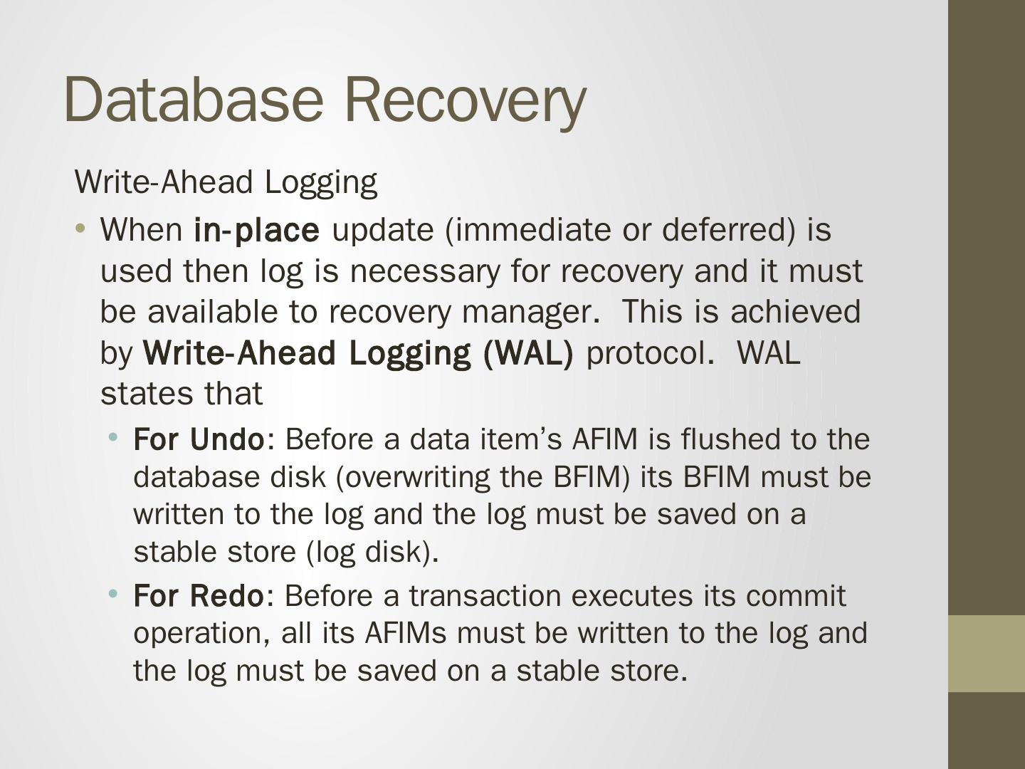 For recovery from any type of failure data values prior to modification (BFIM - BeFore .... In this algorithm AFIMs of a transaction are flushed to the database disk ...