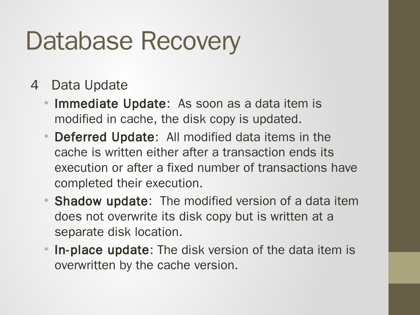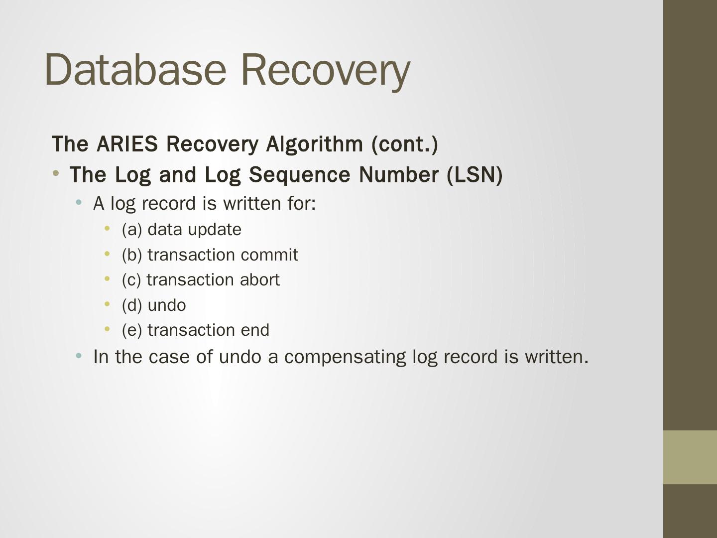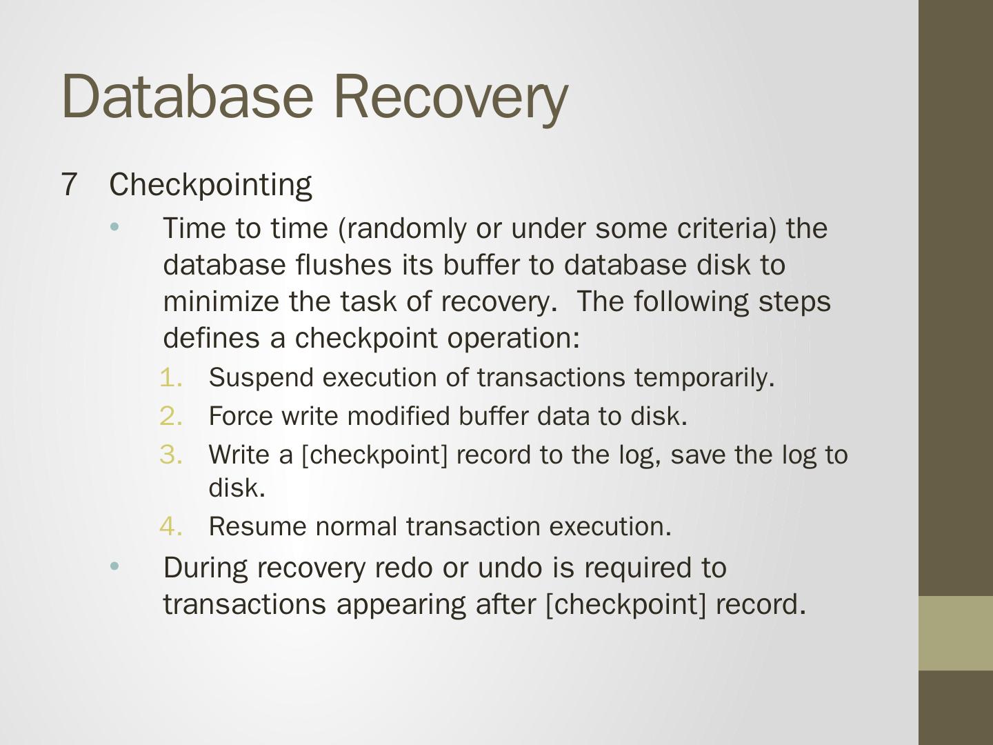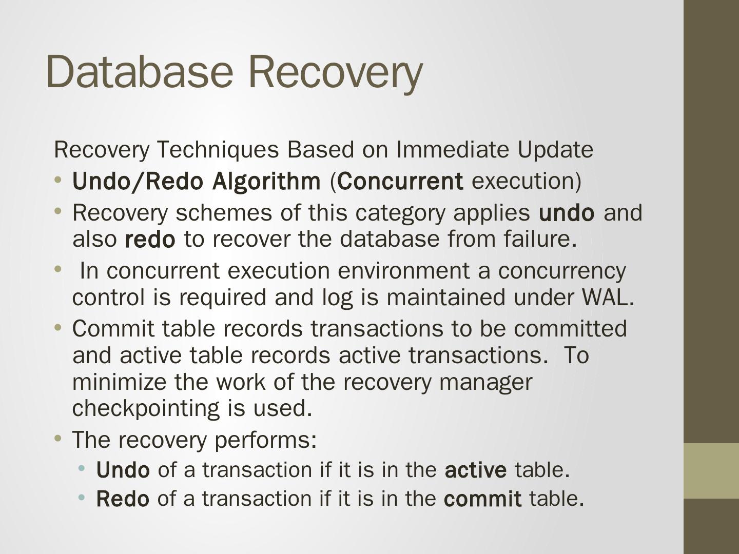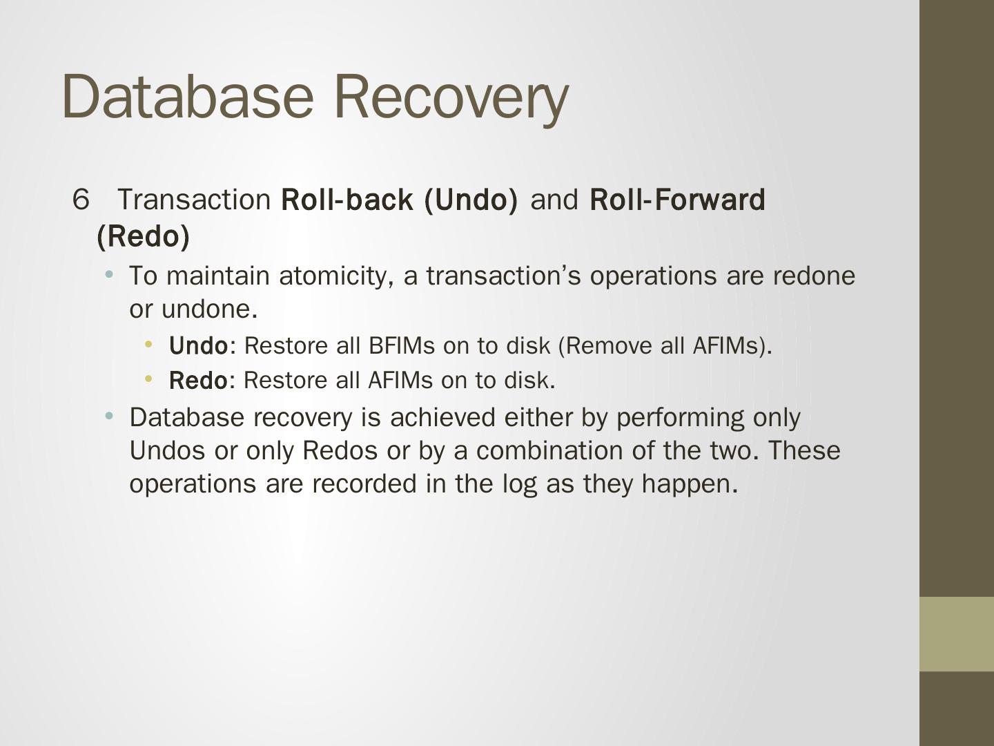 For recovery from any type of failure data values prior to modification (BFIM - BeFore .... In this algorithm AFIMs of a transaction are flushed to the database disk ...