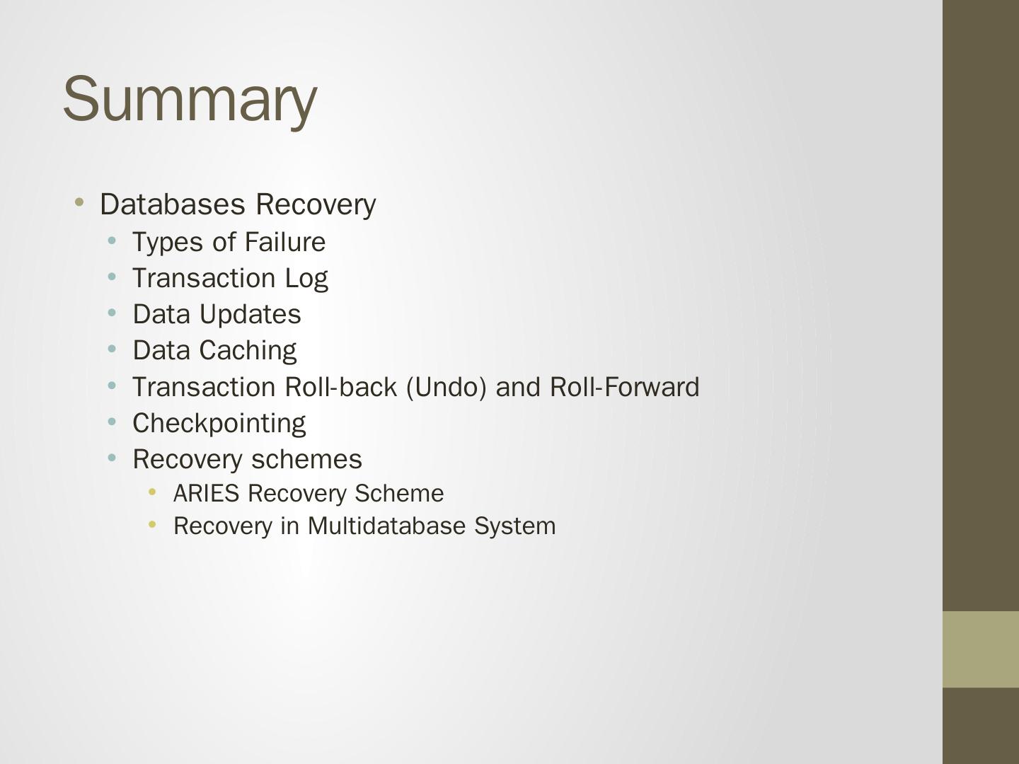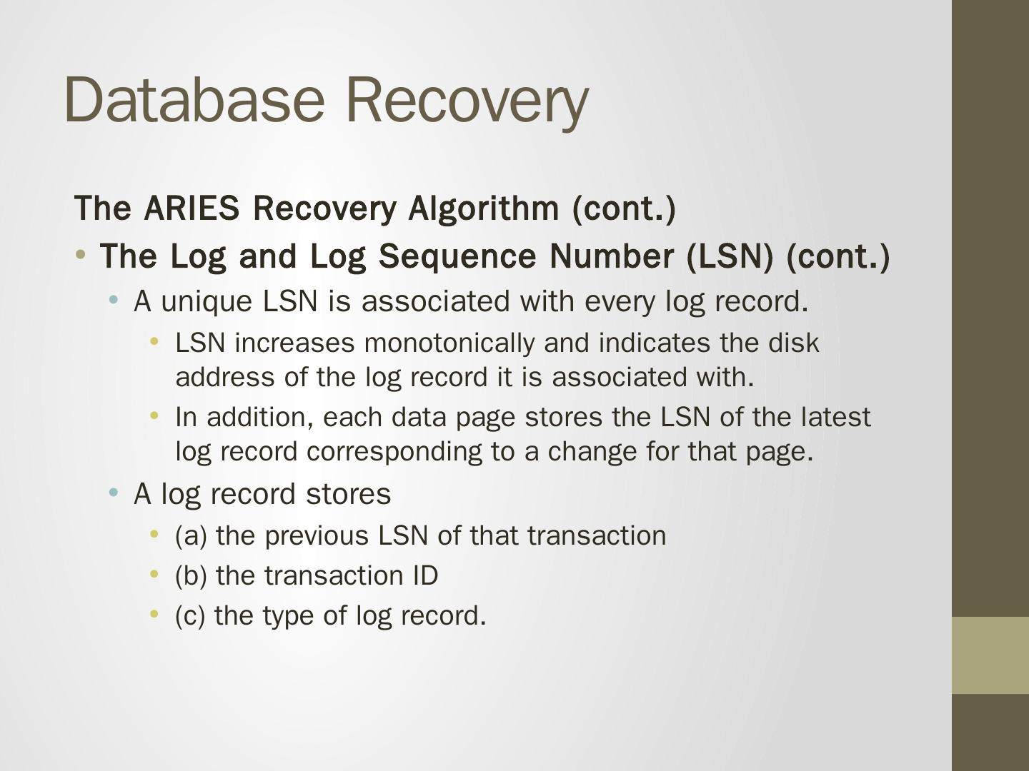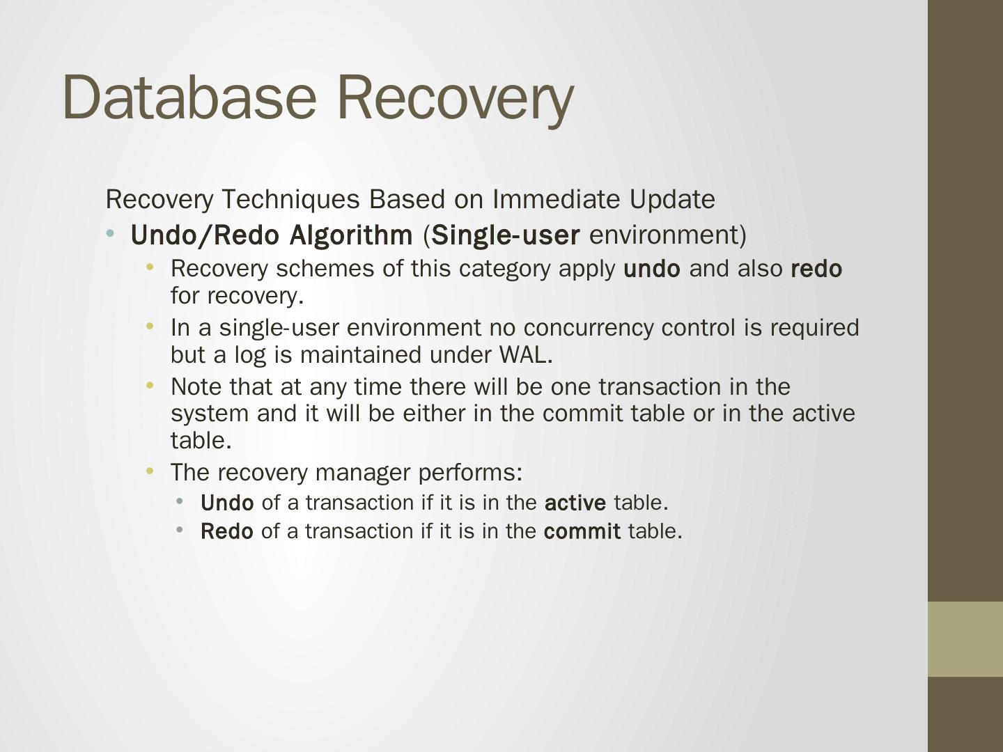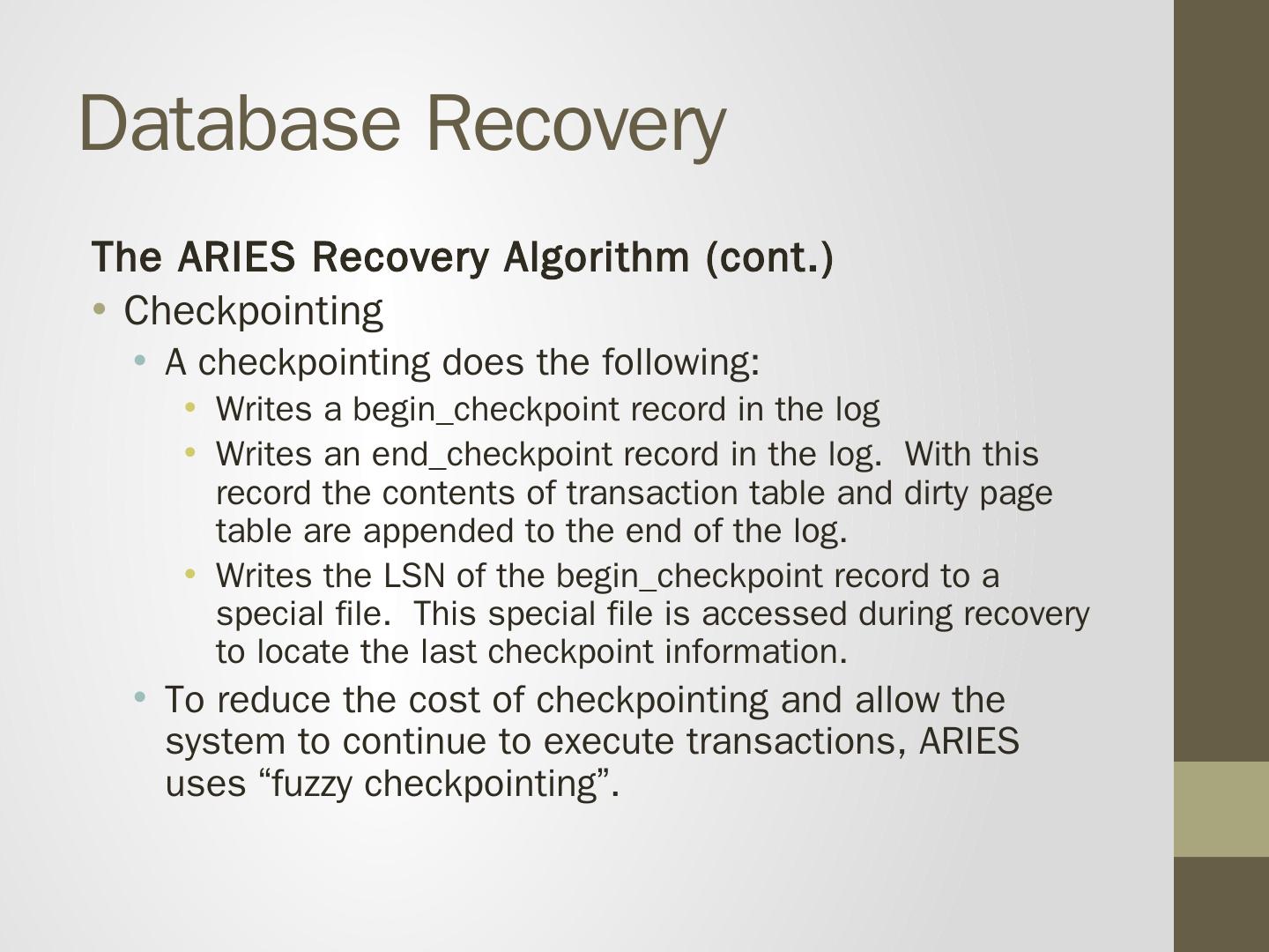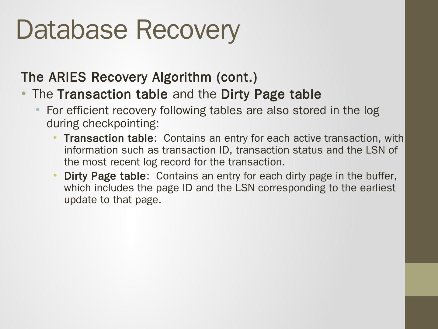 For recovery from any type of failure data values prior to modification (BFIM - BeFore .... In this algorithm AFIMs of a transaction are flushed to the database disk ...
