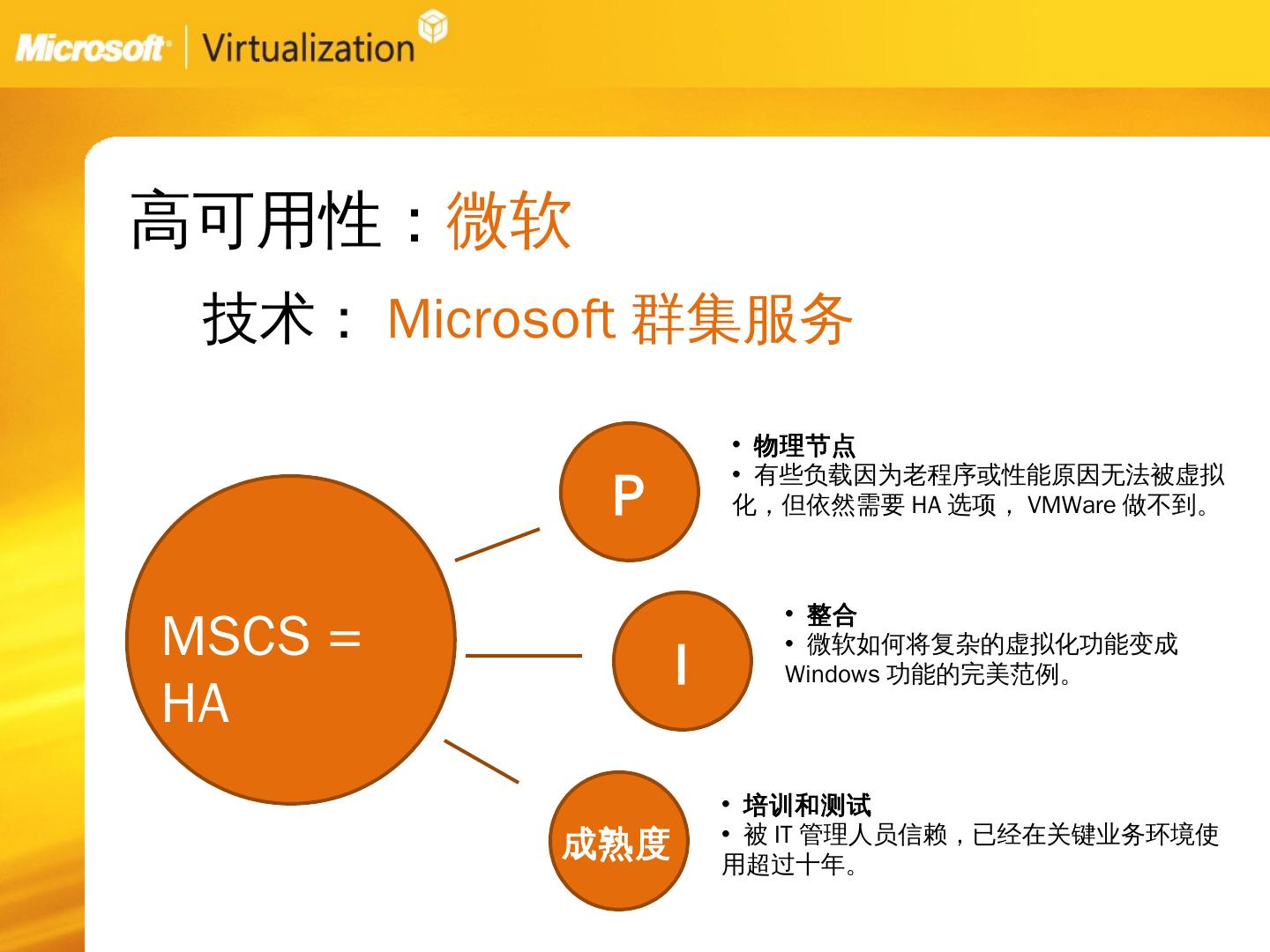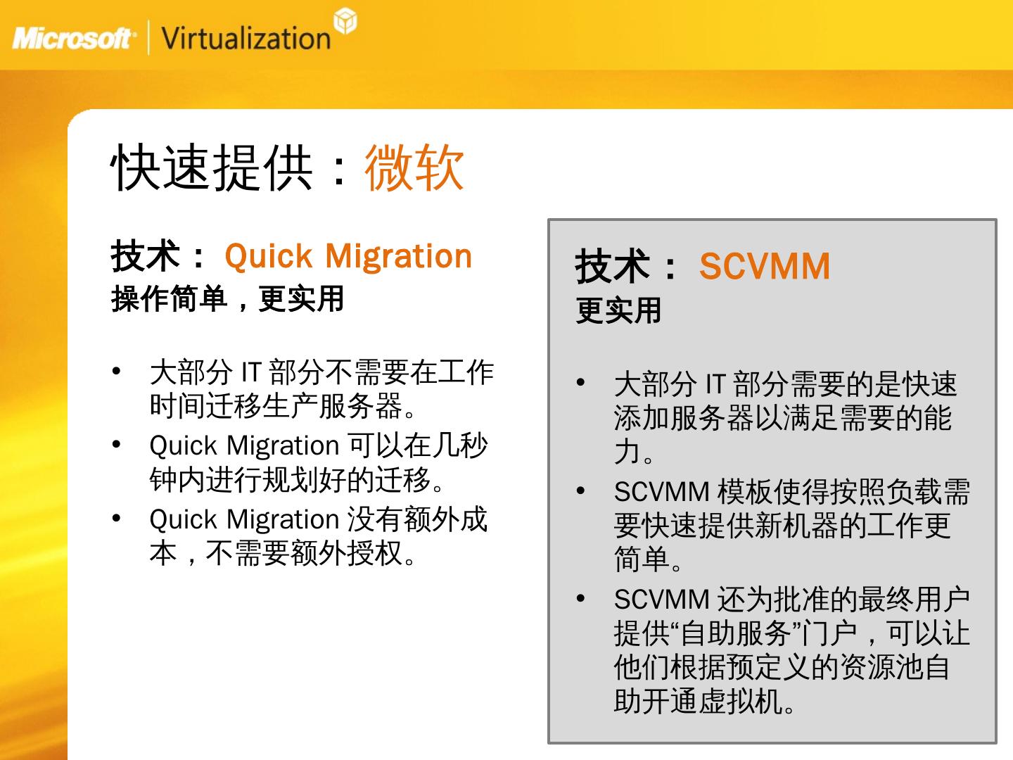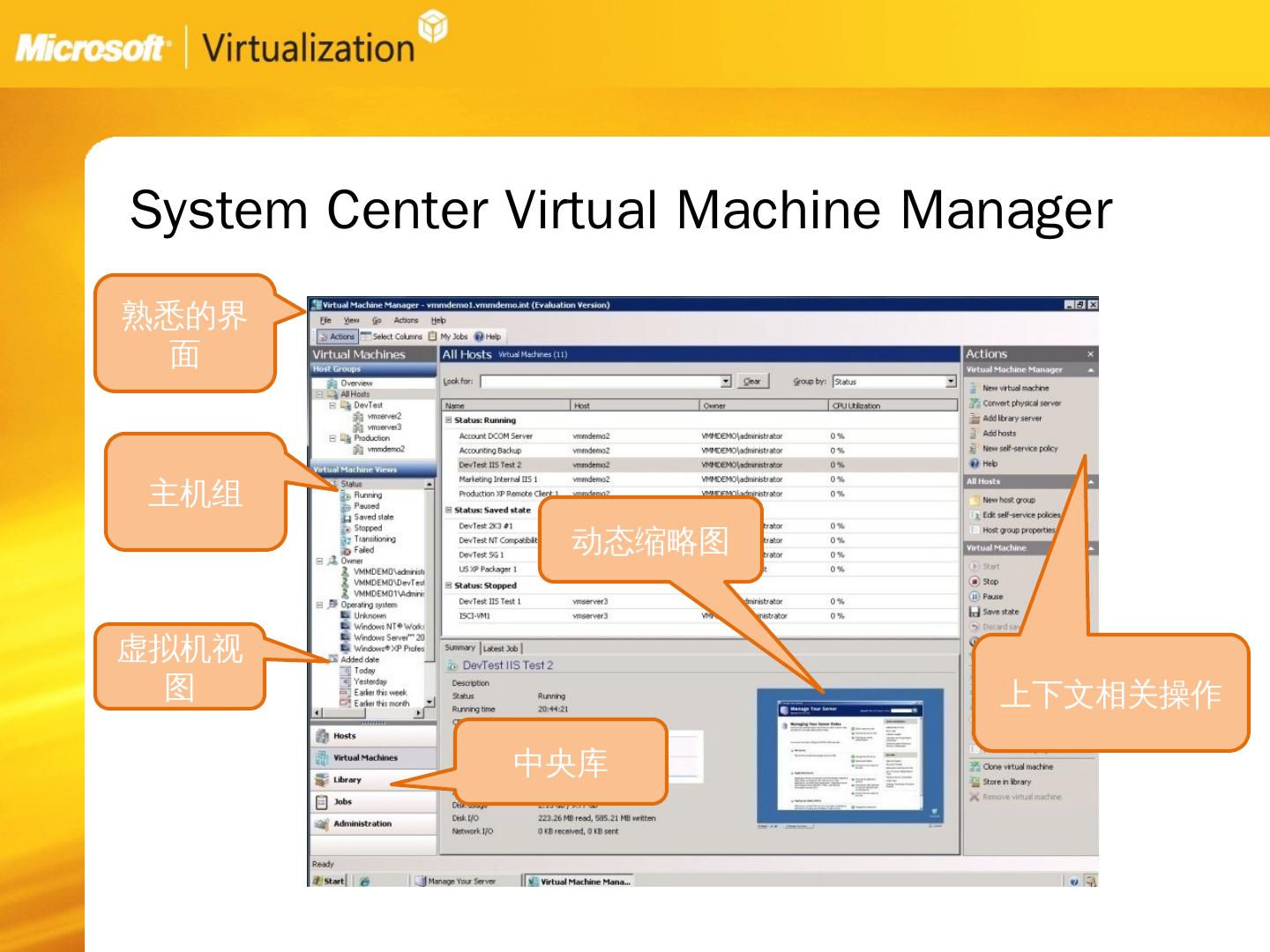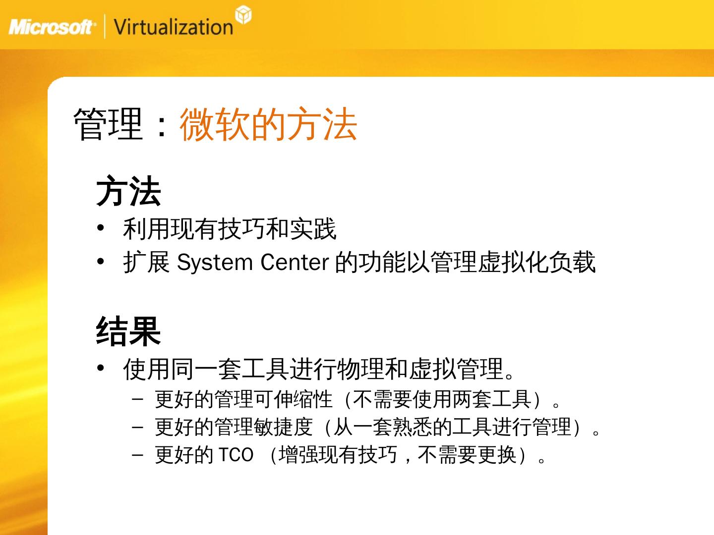 服务器虚拟化:Vmware的方法. 关注短期结果. 问题:. 需要新的基础架构、管理方法以及技巧。 缺少在物理服务器上管理负载的工具。 昂贵,市面上最贵的虚拟化解决 ...