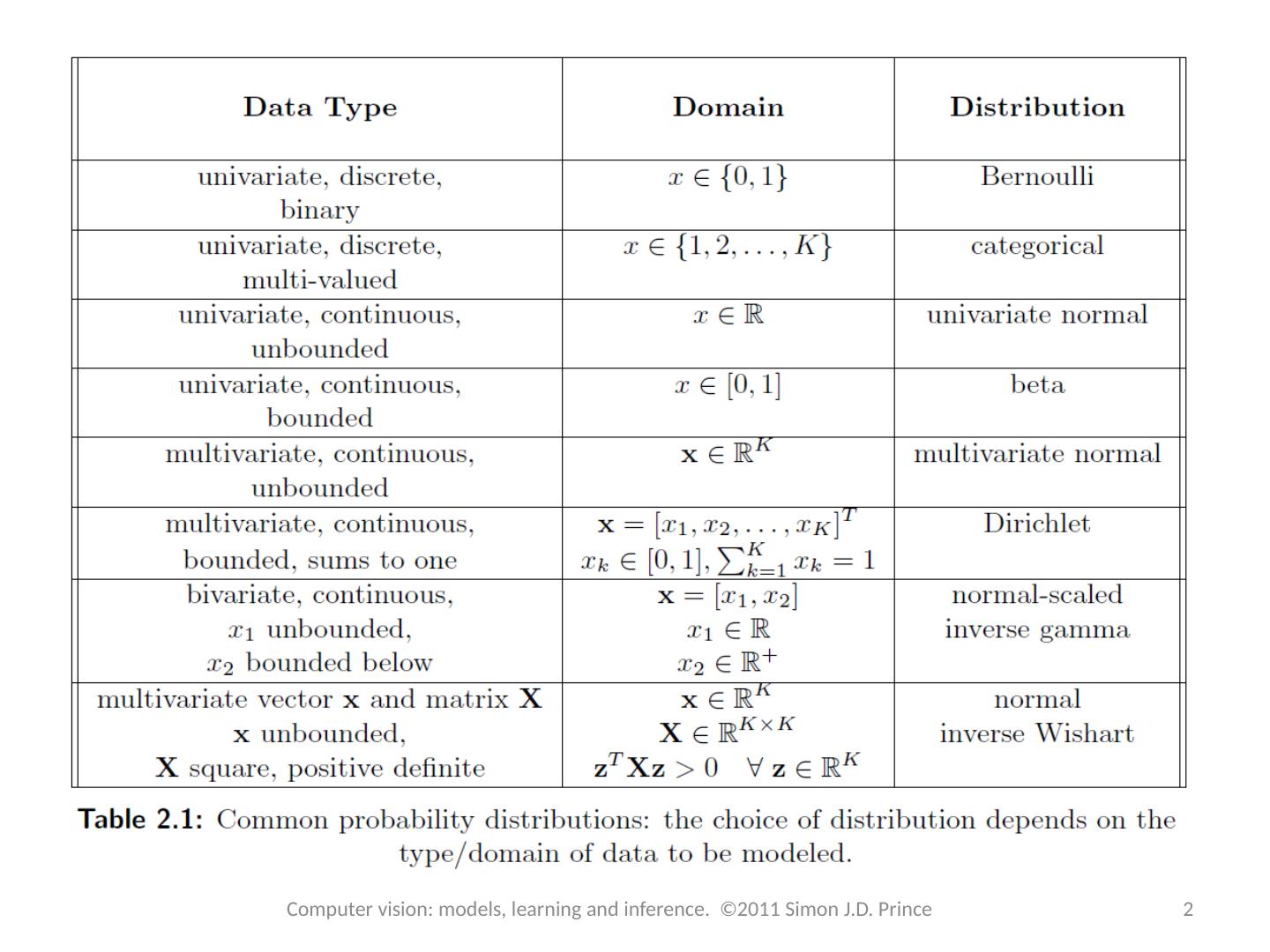 2 .2 Computer vision: models, learning and inference. ©2011 Simon J.D. Prince