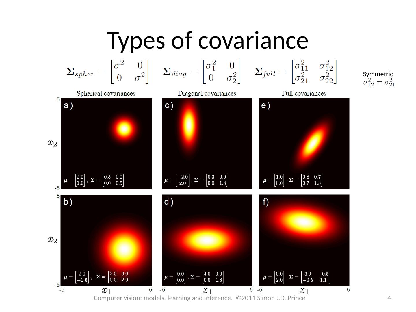 4 .Types of covariance Computer vision: models, learning and inference. ©2011 Simon J.D. Prince 4 Symmetric