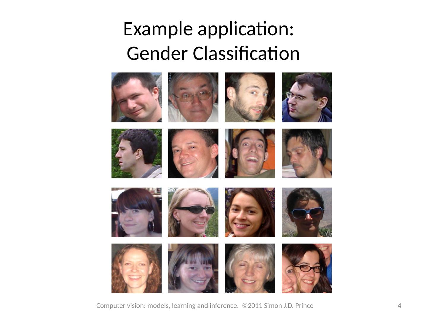4 .Example application: Gender Classification 4 Computer vision: models, learning and inference. ©2011 Simon J.D. Prince