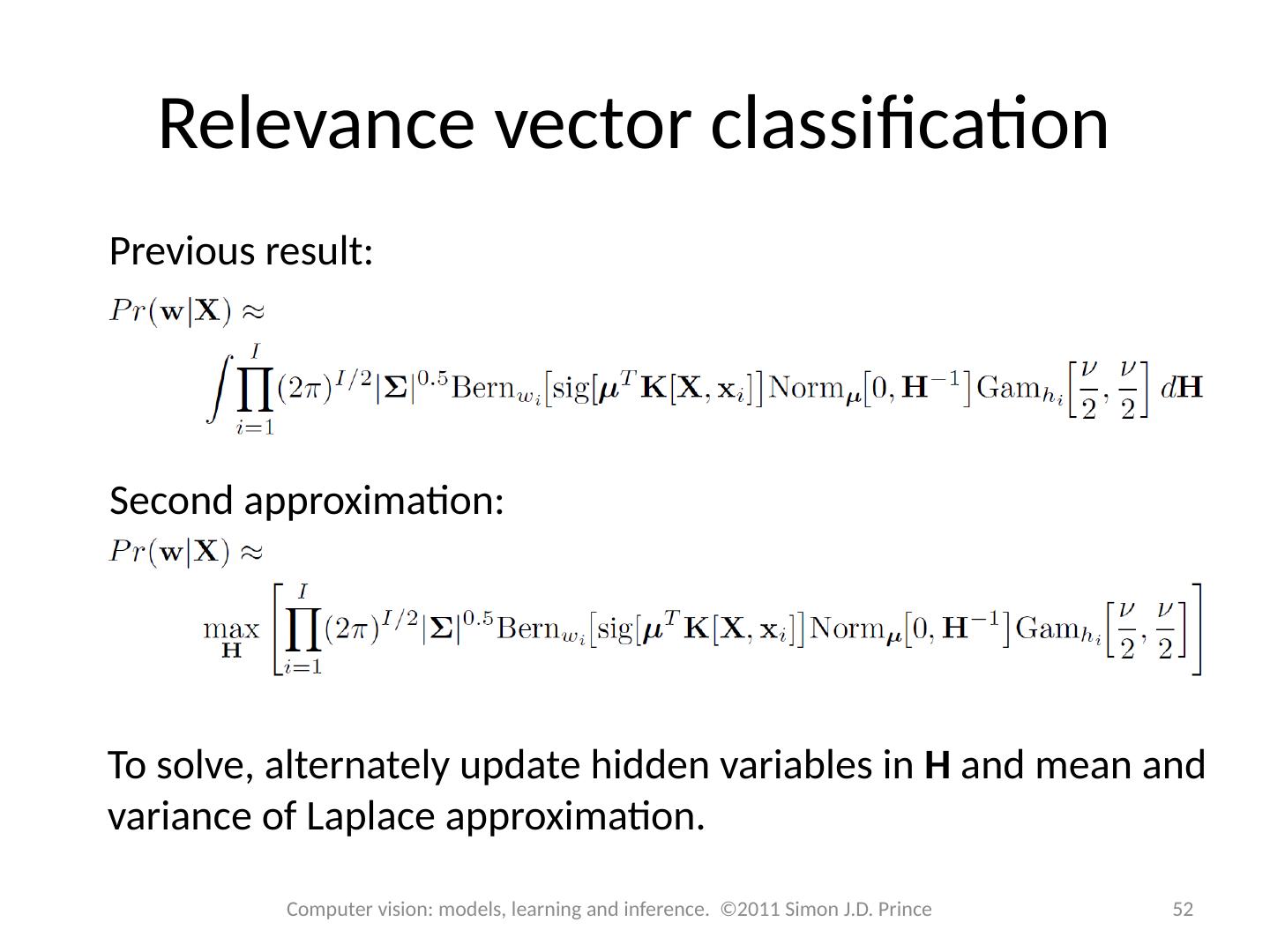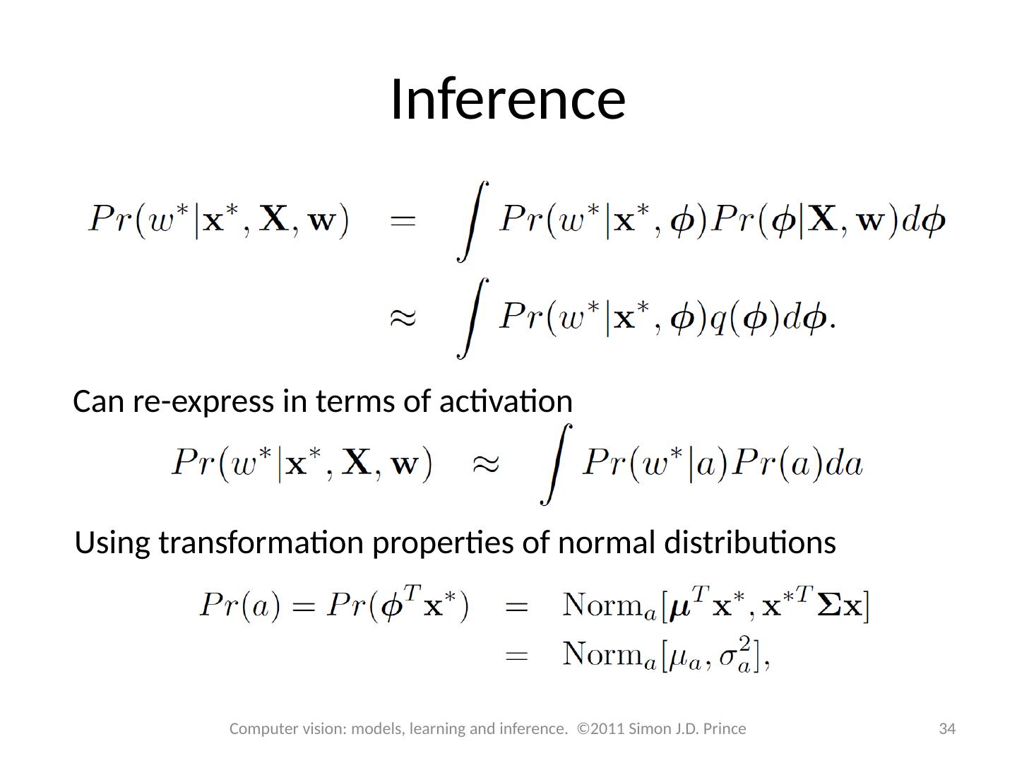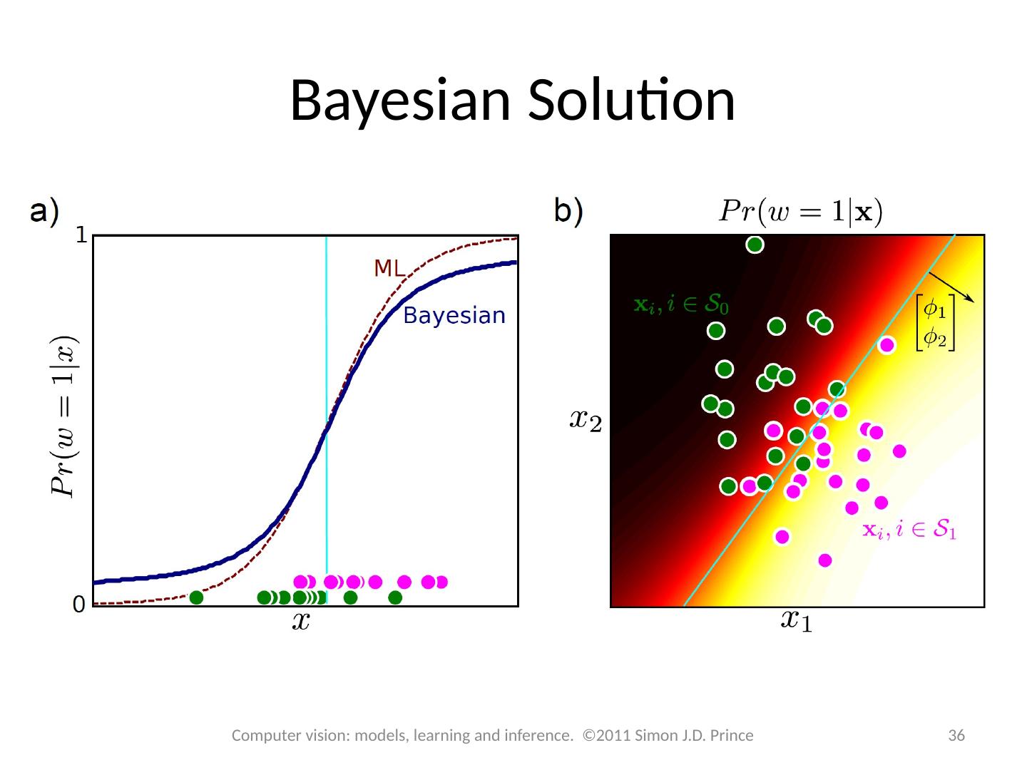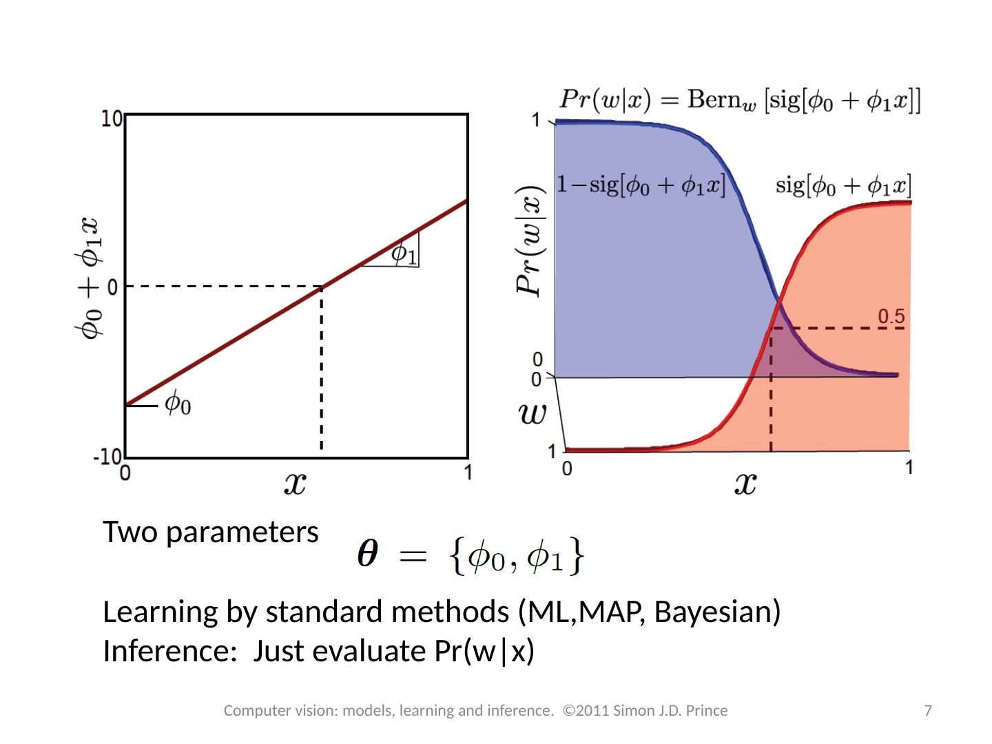 7 .Two parameters Learning by standard methods (ML,MAP, Bayesian) Inference: Just evaluate Pr( w|x ) 7 Computer vision: models, learning and inference. ©2011 Simon J.D. Prince