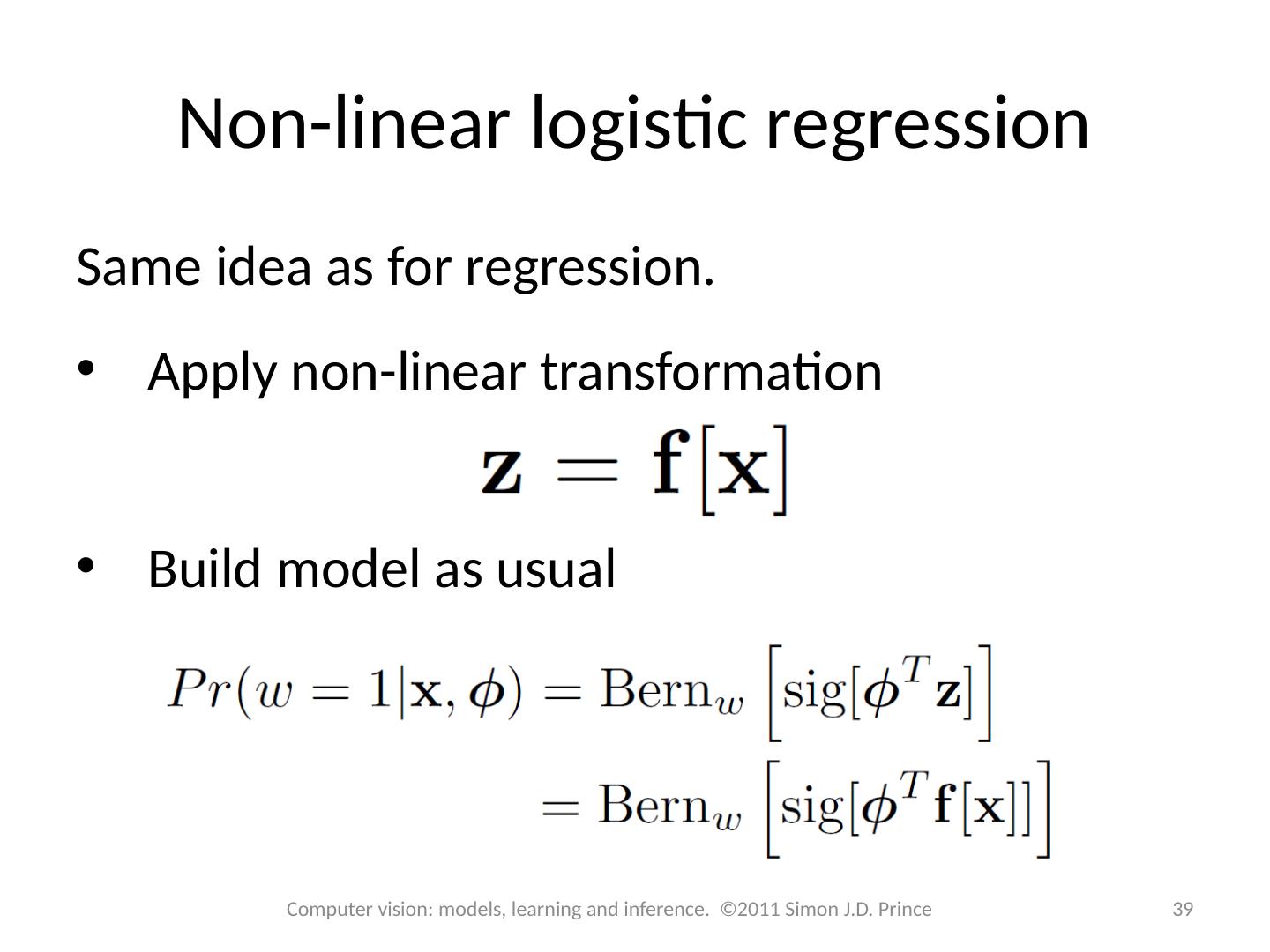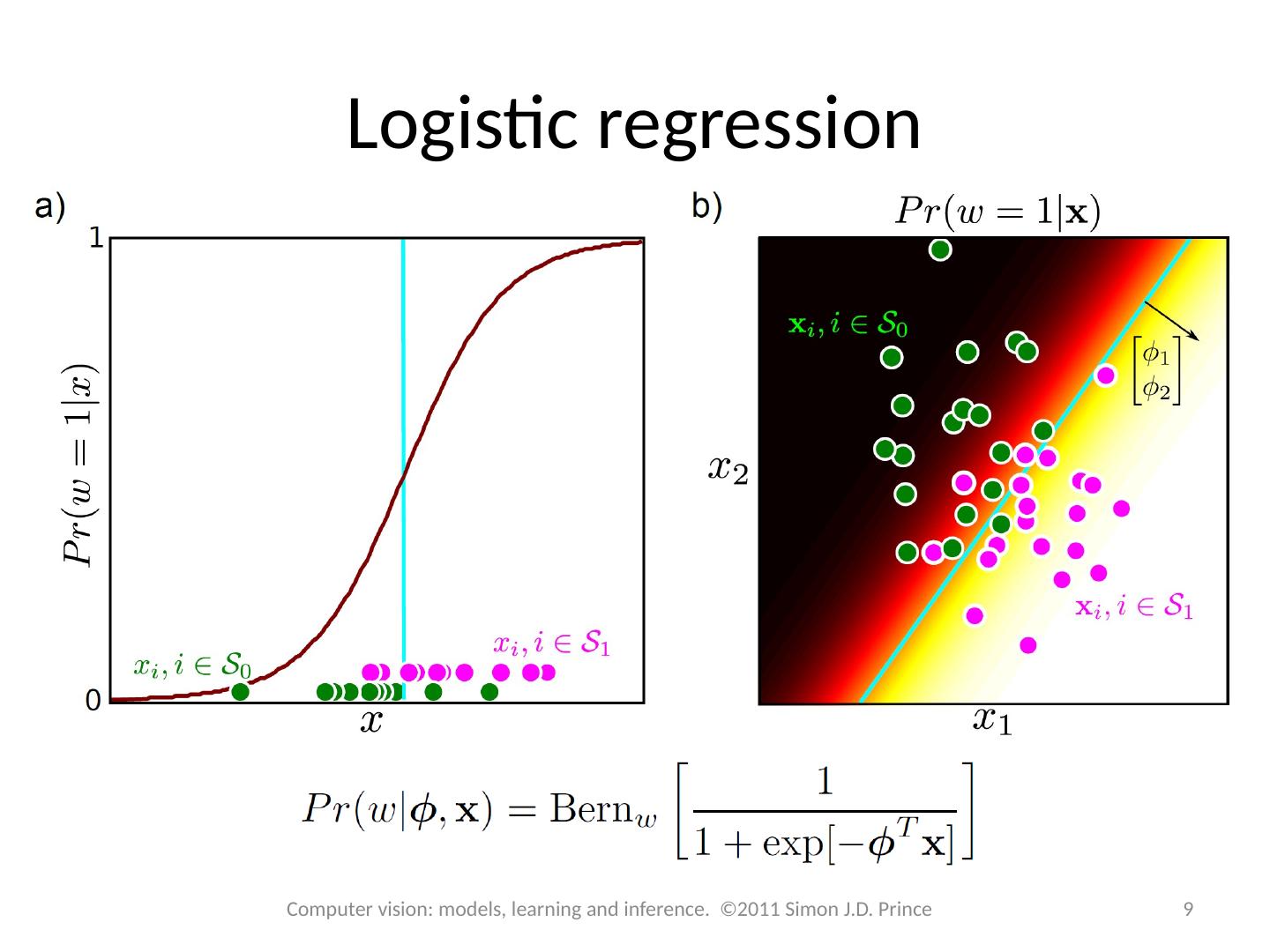 9 .Logistic regression 9 Computer vision: models, learning and inference. ©2011 Simon J.D. Prince