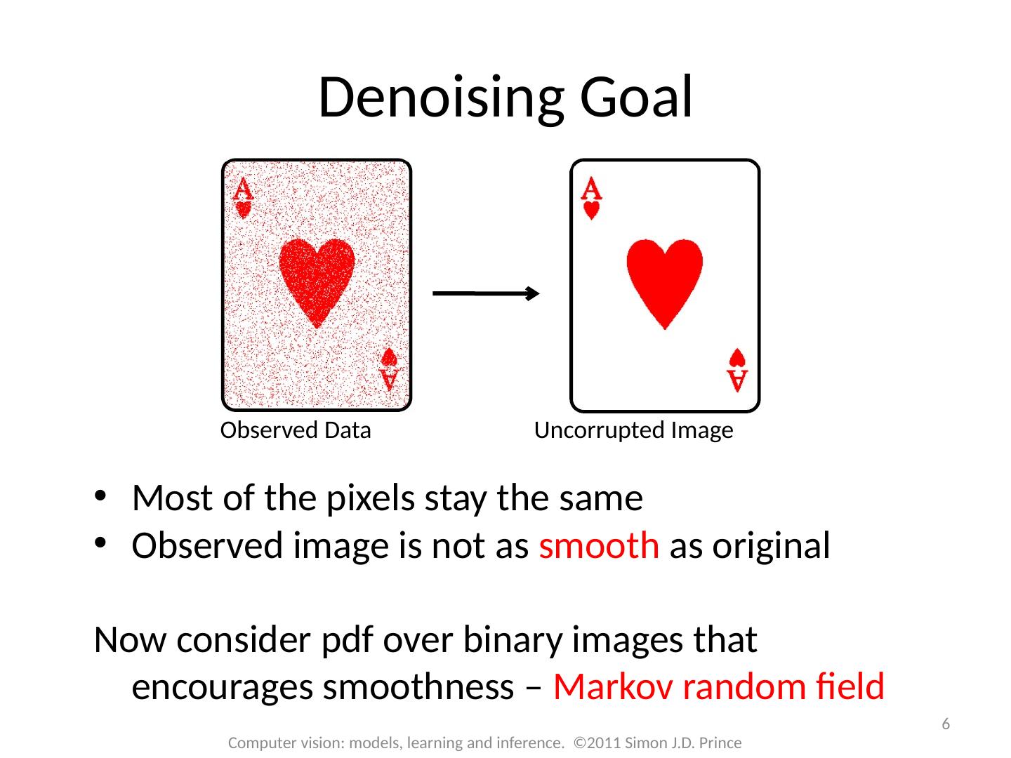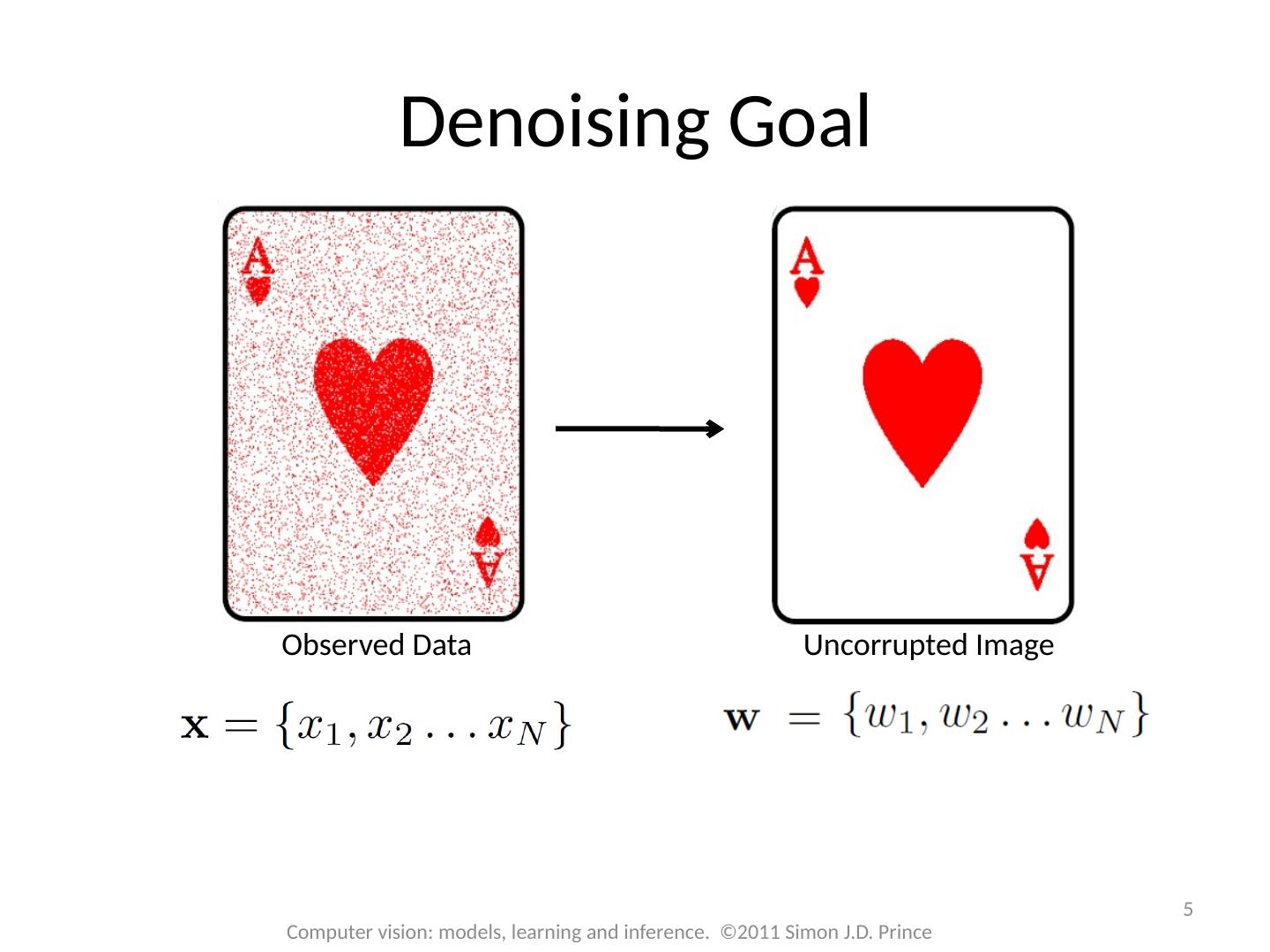 5 .5 Computer vision: models, learning and inference. ©2011 Simon J.D. Prince Denoising Goal Observed Data Uncorrupted Image