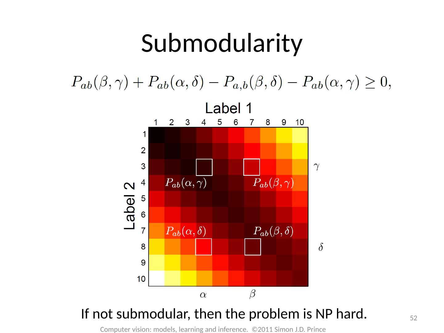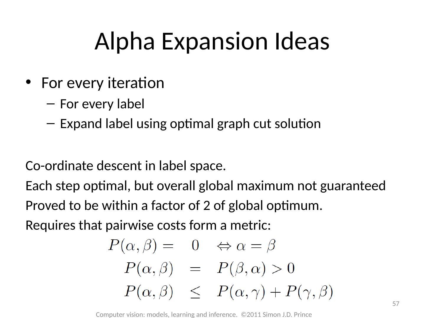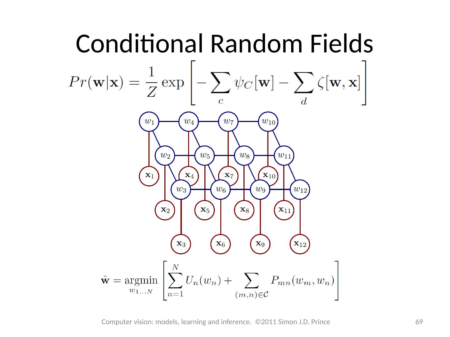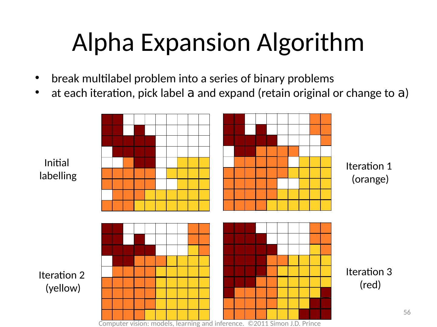 16 .MAP Inference 16 Computer vision: models, learning and inference. ©2011 Simon J.D. Prince Unary terms ( compatability of data with label y) Pairwise terms ( compatability of neighboring labels)