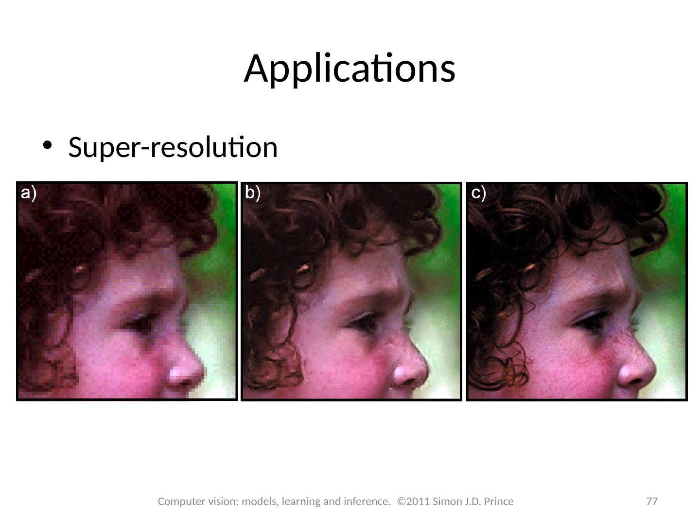 13 .13 Computer vision: models, learning and inference. ©2011 Simon J.D. Prince Denoising Goal Observed Data Uncorrupted Image