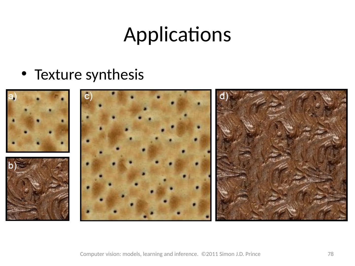 4 .4 Computer vision: models, learning and inference. ©2011 Simon J.D. Prince Multi-label Denoising Before After Image represented as discrete variables representing intensity. Some proportion of pixels randomly changed according to a uniform distribution.