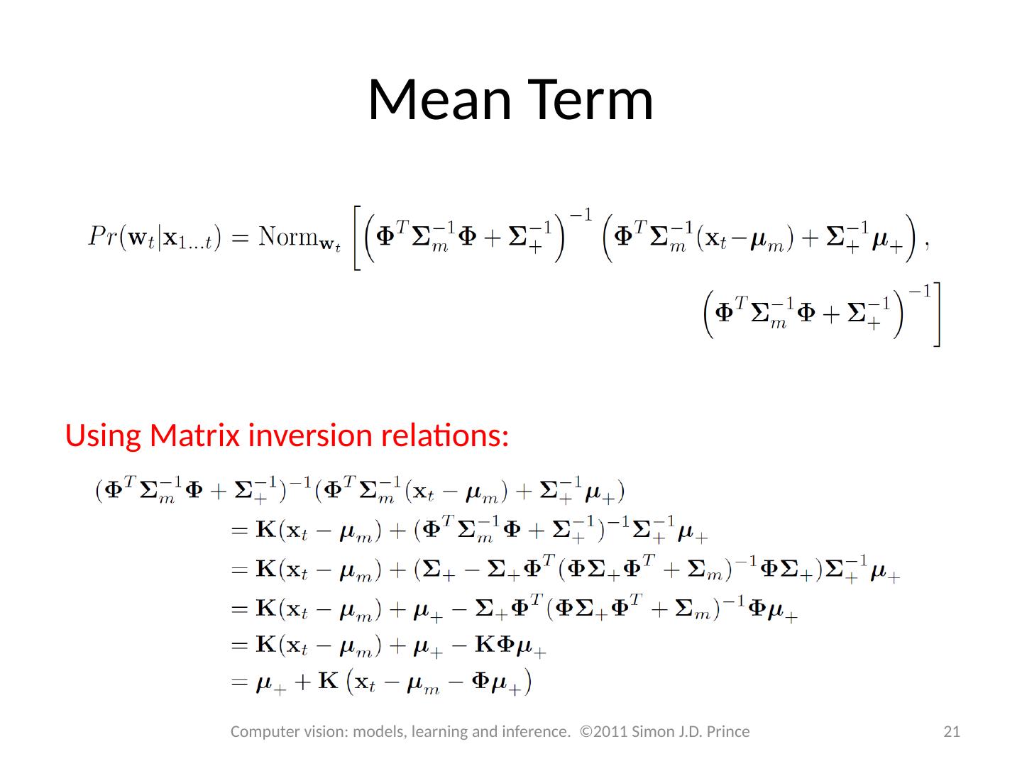21 .Mean Term Using Matrix inversion relations: 21 Computer vision: models, learning and inference. ©2011 Simon J.D. Prince