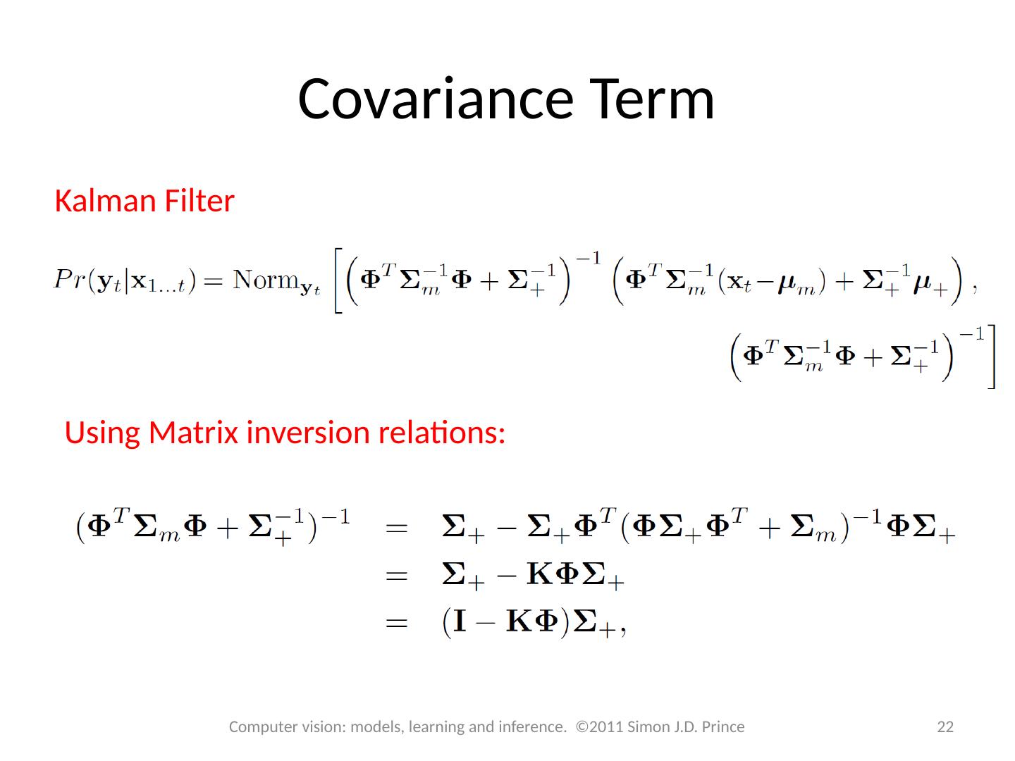 22 .Covariance Term Kalman Filter Using Matrix inversion relations: 22 Computer vision: models, learning and inference. ©2011 Simon J.D. Prince