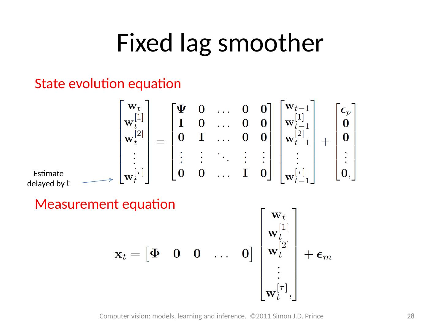 29 .Fixed-lag Kalman Smoothing 29 Computer vision: models, learning and inference. ©2011 Simon J.D. Prince