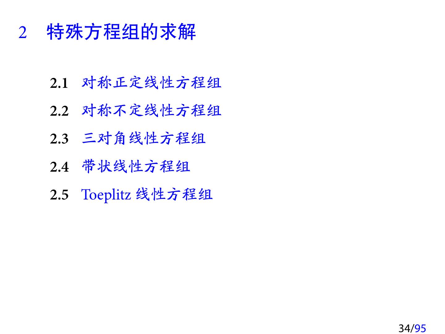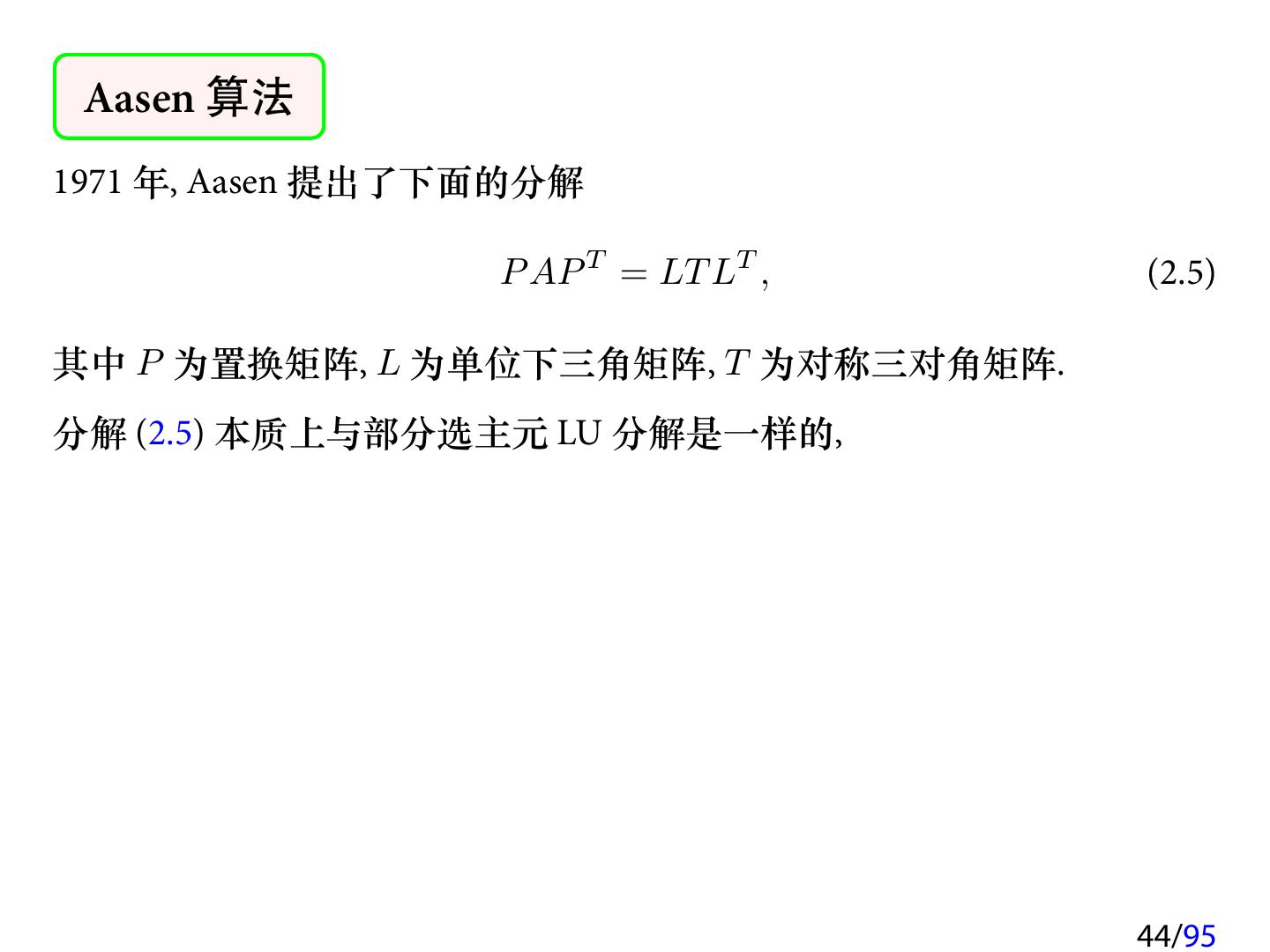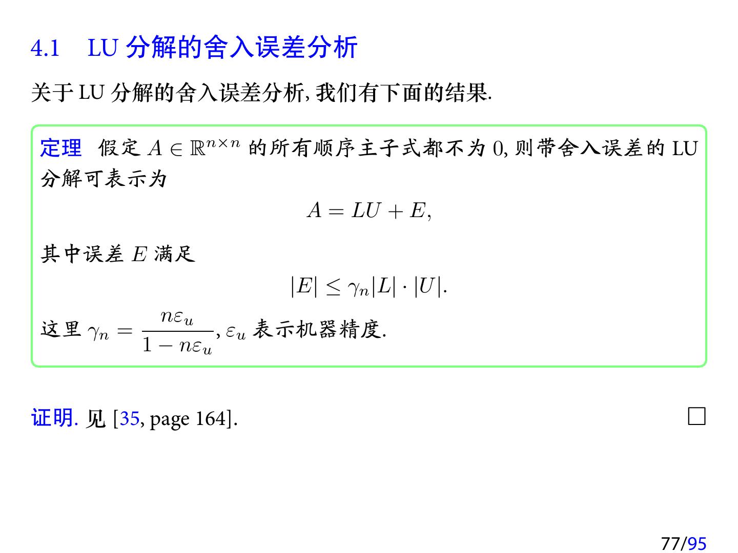 3 .1 Gauss 消去法和 LU 分解 1.1 LU 分解 1.2 LU 分解的实现 1.3 IKJ 型 LU 分解 1.4 待定系数法计算 LU 分解 1.5 三角方程求解 1.6 选主元 LU 分解 1.7 矩阵求逆 3/95