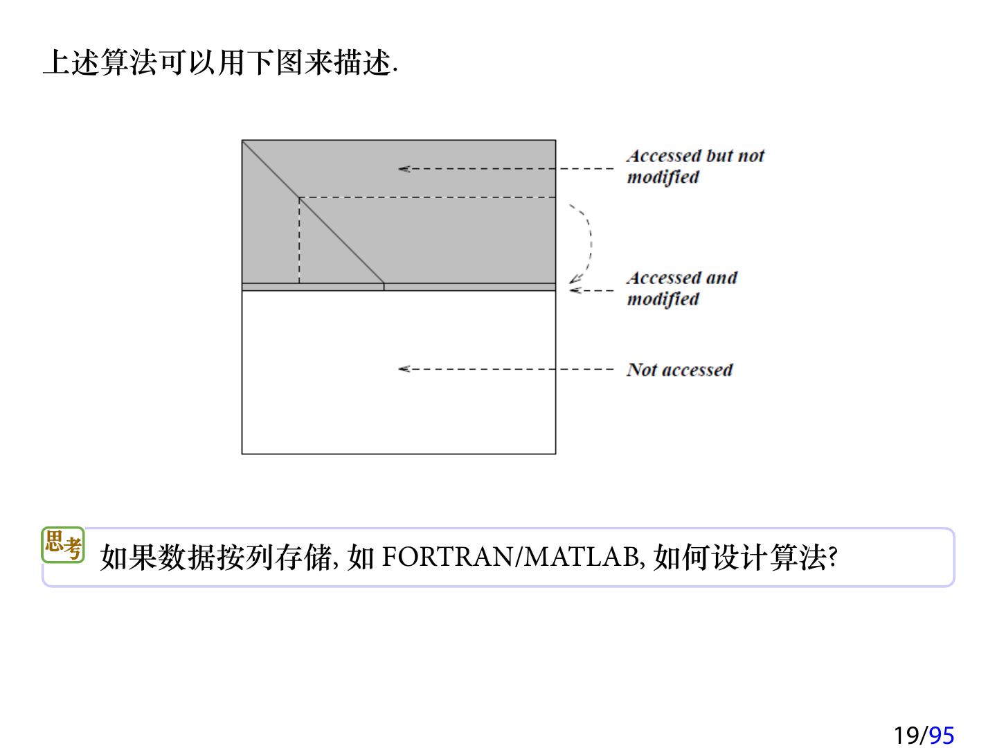 19 .上述算法可以用下图来描述. 如果数据按列存储, 如 FORTRAN/MATLAB, 如何设计算法? 19/95