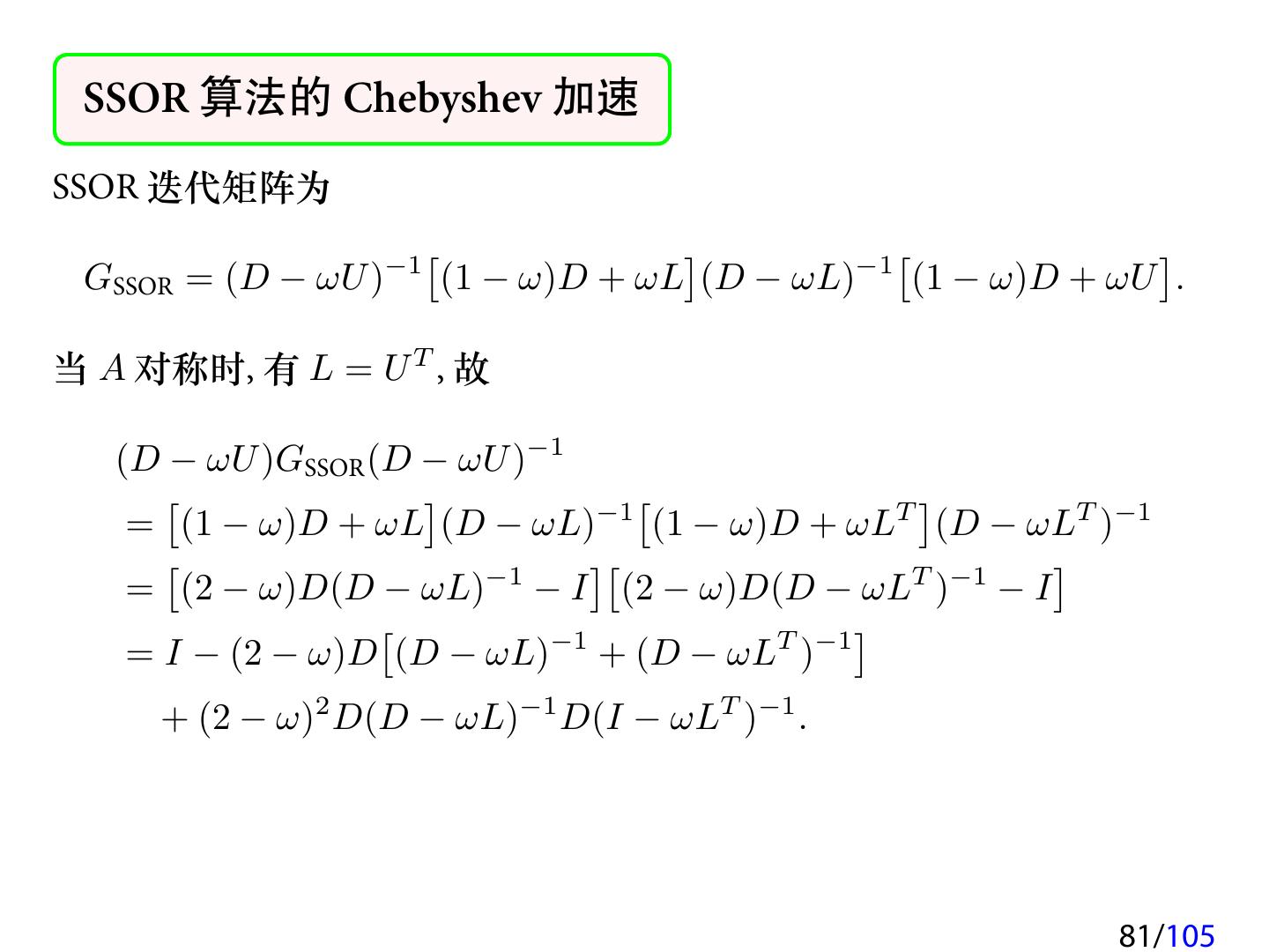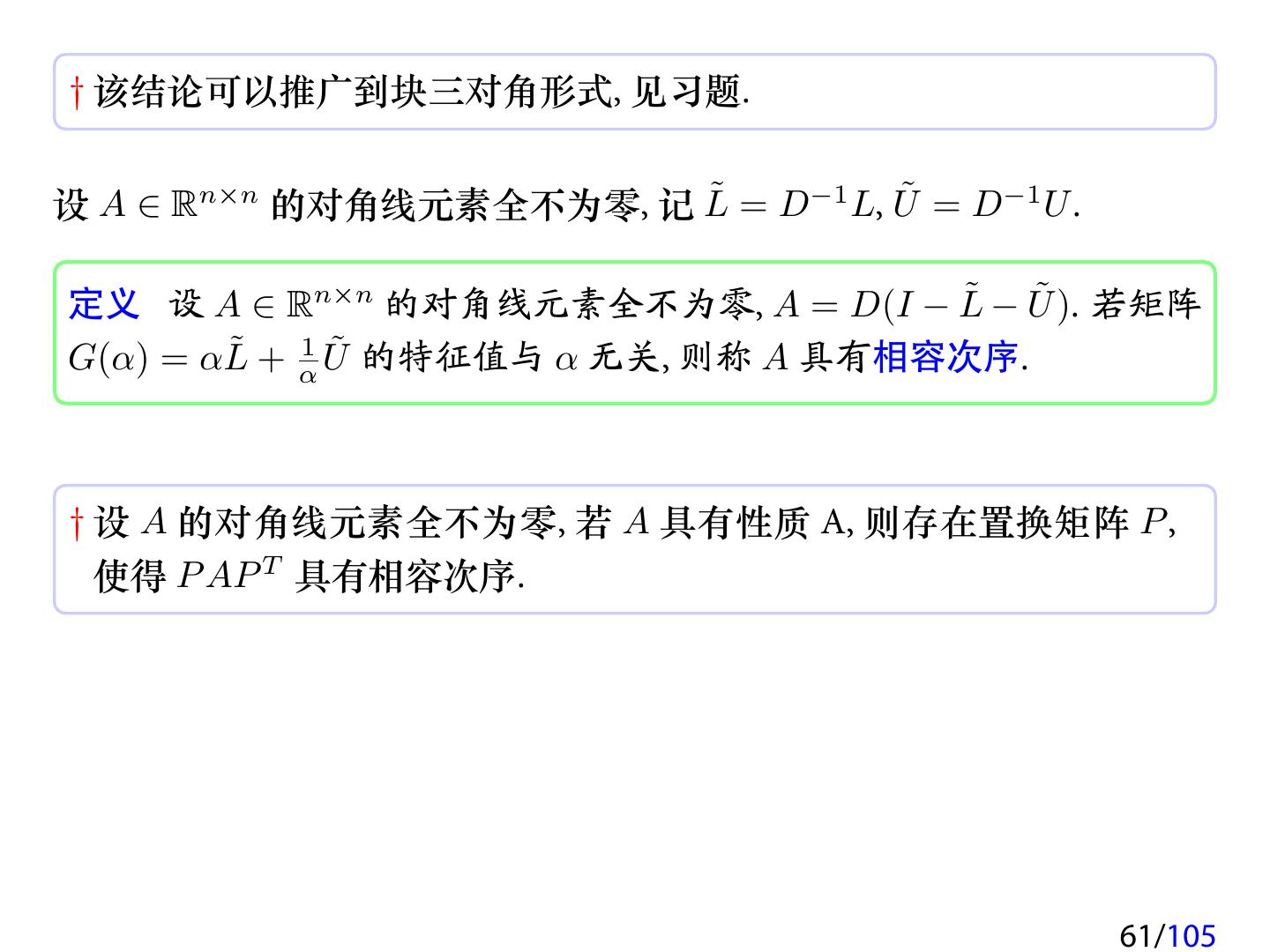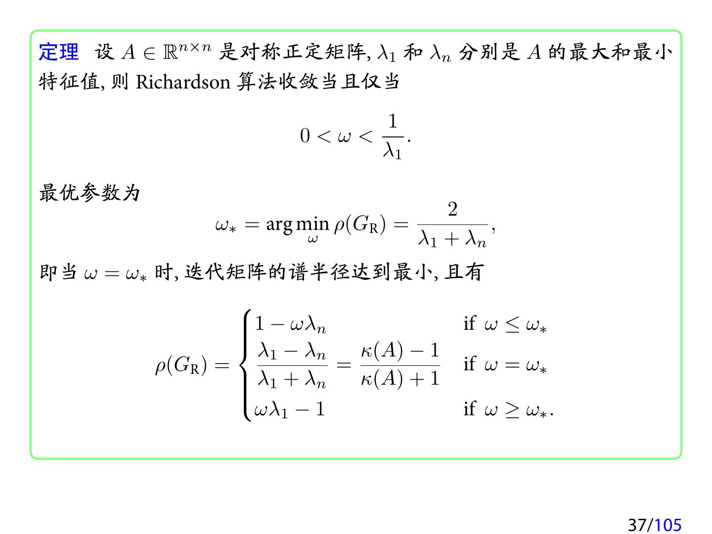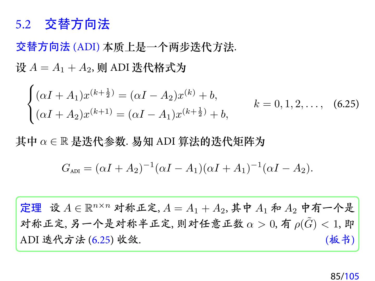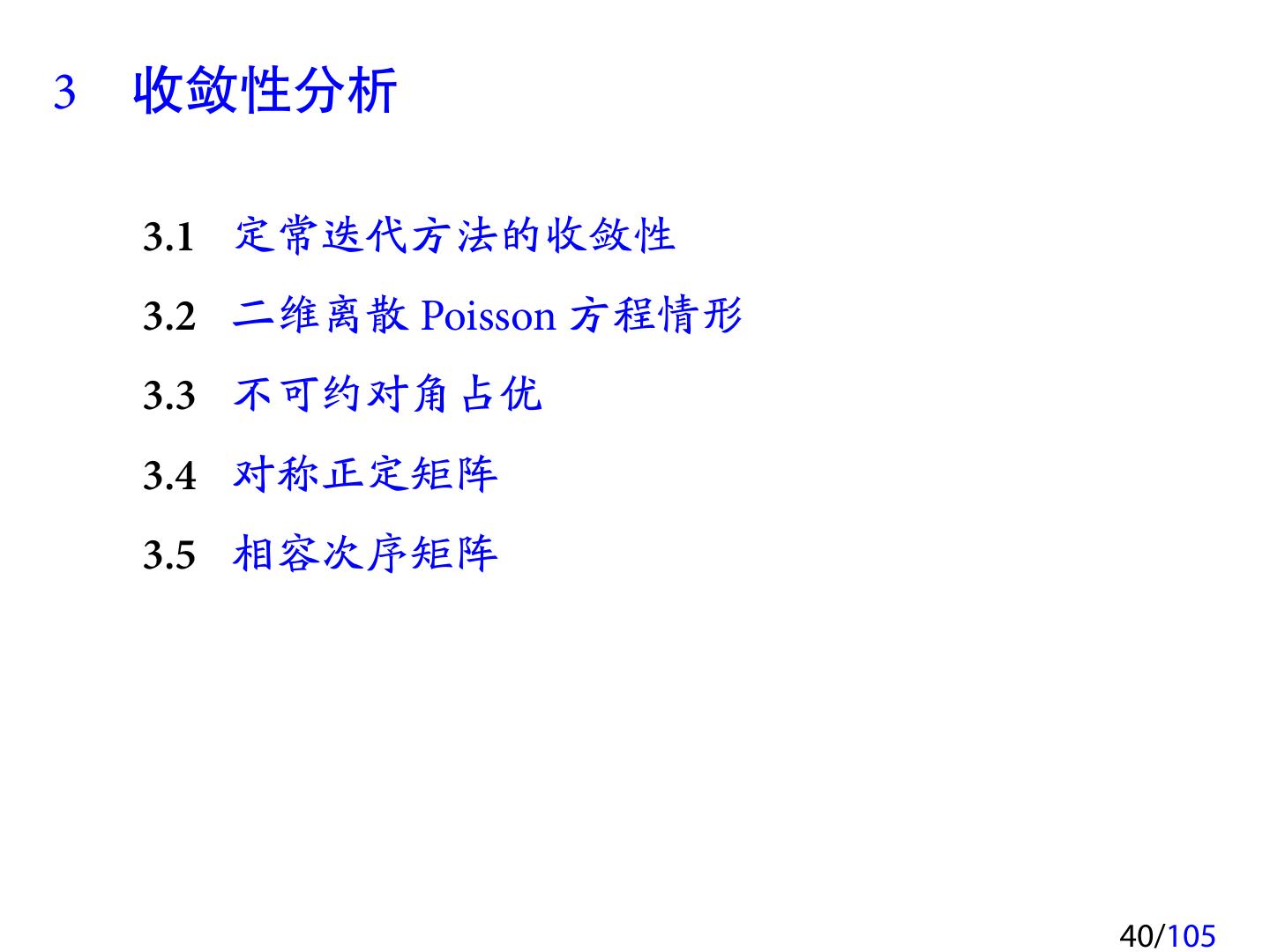 16 .2 定常迭代方法 2.1 矩阵分裂迭代方法 2.2 Jacobi 迭代 2.3 Gauss-Seidel 迭代 2.4 SOR 迭代 2.5 SSOR 迭代方法 2.6 AOR 迭代 2.7 Richardson 算法 2.8 分块迭代方法 16/105