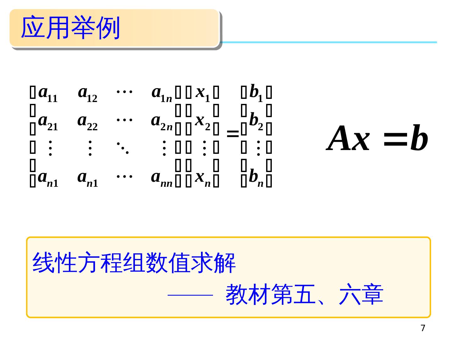 7 .应用举例 7 线性方程组 数值 求解 —— 教材第五、 六 章