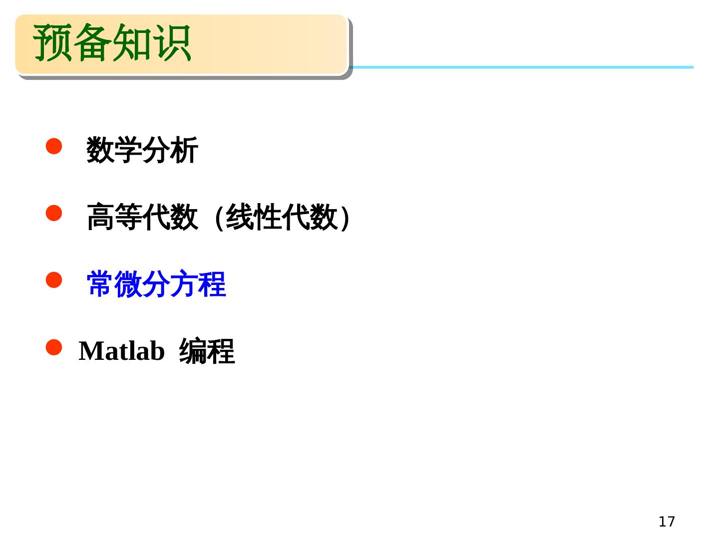 17 .预备知识 17 数学分析 高等 代数(线性代数) 常微分方程 Matlab 编程